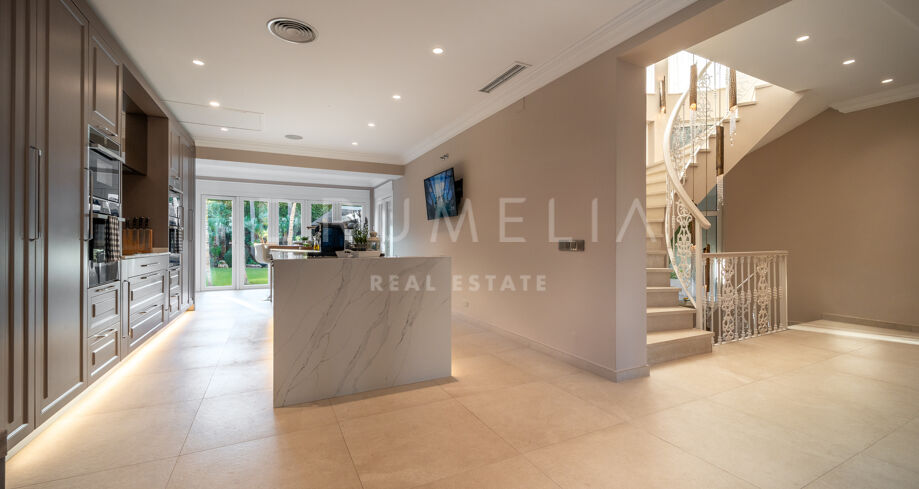Située dans le prestigieux quartier d’Aloha, cette villa allie parfaitement le charme romantique de l’architecture provençale française à l’élégance contemporaine. Dès le premier instant, la propriété dégage sophistication grâce à son hall d’entrée majestueux, son escalier central et son souci du détail. Au rez-de-chaussée, on trouve une cuisine moderne ouverte, un salon lumineux avec cheminée et accès direct au jardin, ainsi qu’une chambre d’invité avec salle de bain attenante.