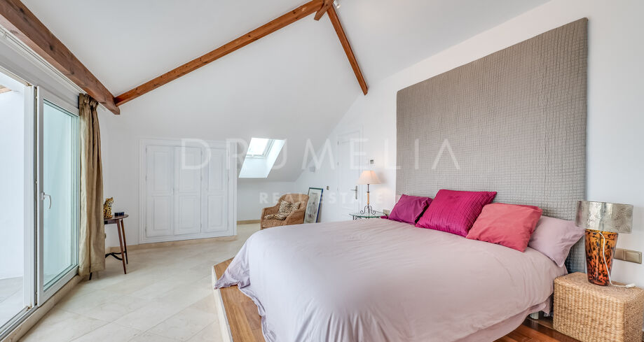 Située dans le prestigieux quartier de Río Real, à Marbella Est, cette luxueuse villa orientée sud allie élégance et confort. Avec un terrain de 903 m² et une vue panoramique sur la mer, elle offre un cadre de vie exclusif et raffiné. La propriété dispose de quatre chambres spacieuses et de quatre salles de bains, dont trois en suite, idéales pour ceux qui recherchent intimité et confort.