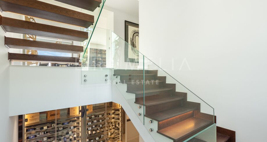Entourée de pinèdes et de propriétés de luxe de la prestigieuse Sierra Blanca, la maison moderne de 1.200 m², avec terrasse de 309 m² et orientation sud, se trouve sur un grand terrain de 2.592 m². Intégrée dans un environnement magnifique de la partie supérieure du Golden Mile, elle bénéficie d’un design ultra-moderne, de matériaux haut de gamme et de caractéristiques luxueuses. La maison spectaculaire, située sur la pente de la légendaire montagne La Concha de Marbella, fait face à la mer. Le jardin avant et la piscine donnent la sensation de s’étendre à l’infini jusqu’à l’horizon, en profitant de la pente du terrain vers la côte. Le cadre de la villa est magnifique et l’espace extérieur de la propriété a fait l’objet d’un soin particulier. Vous sortez dans le jardin paysager et vous tombez sur un porche conçu pour offrir soleil et ombre. C’est un endroit parfait pour une ville qui compte plus de 320 jours d’ensoleillement par an. La propriété a été pensée en fonction de trois éléments principaux : la lumière, l’espace et un mobilier au design raffiné. Elle est spécialement construite pour profiter de l’extérieur, même de l’intérieur, entourée de grandes fenêtres dans toute la structure, conçues pour être des tableaux vivants du paysage.