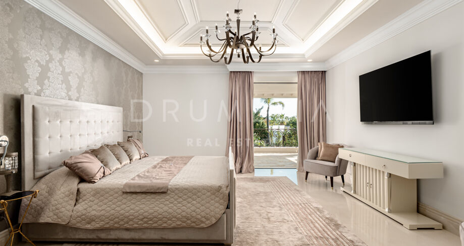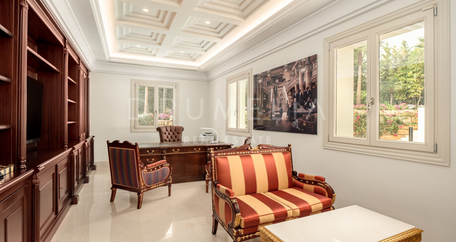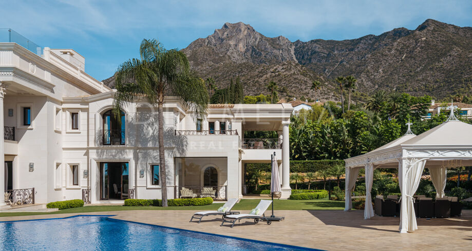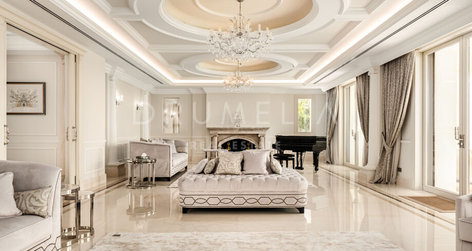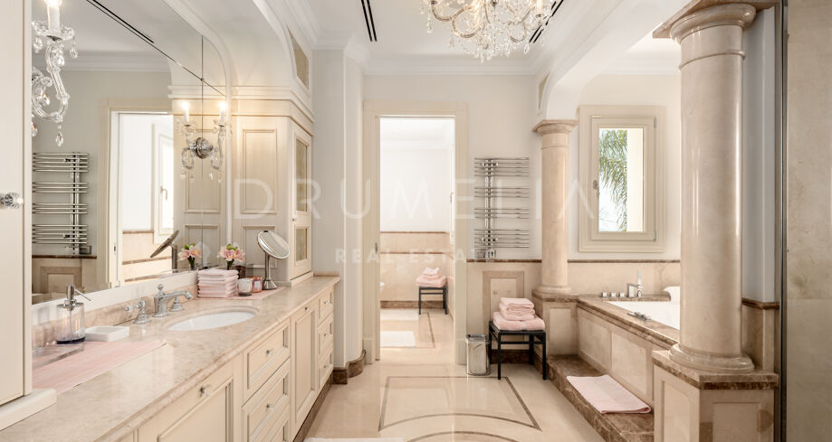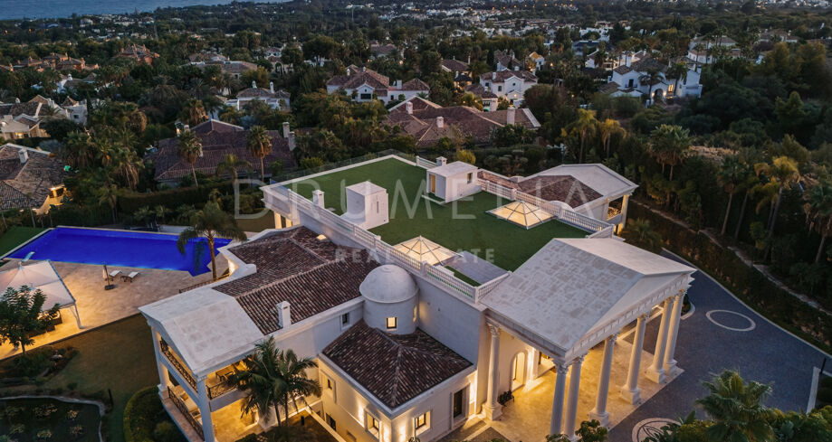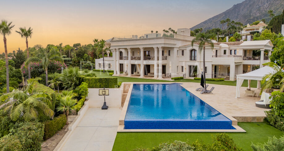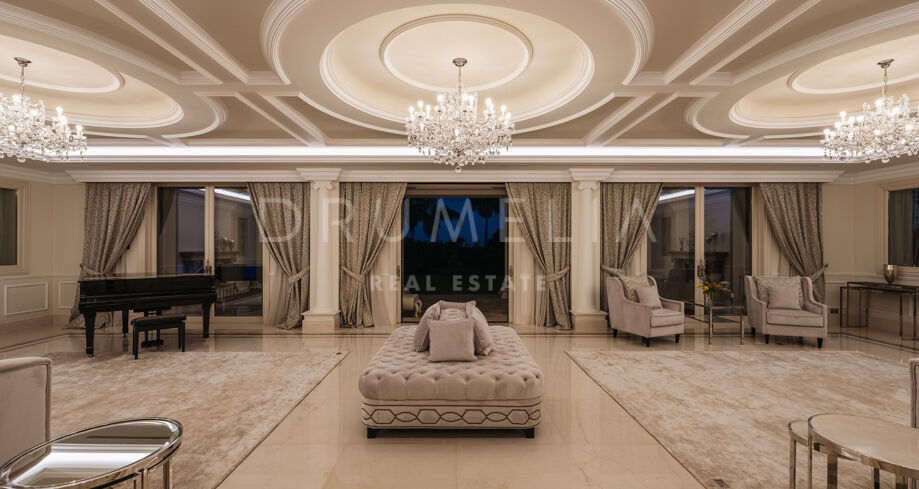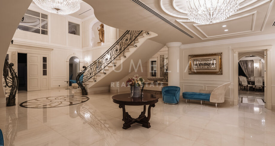 Un domaine palatial exceptionnel actuellement sur le marché et une opportunité d’investissement inégalée située dans la prestigieuse Sierra Blanca, au sein du célèbre Golden Mile de Marbella. Conçue par le célèbre architecte espagnol Jesús del Valle Cardenete, cette propriété a remporté le prix Premios Maceal 2017 de la meilleure villa internationale. Cette luxueuse demeure incarne le style classique et l’élégance intemporelle, située dans l’un des quartiers les plus convoités de Marbella, la partie supérieure du célèbre Golden Mile, avec une orientation sud qui offre une vue imprenable sur la mer Méditerranée et l’emblématique montagne de La Concha.