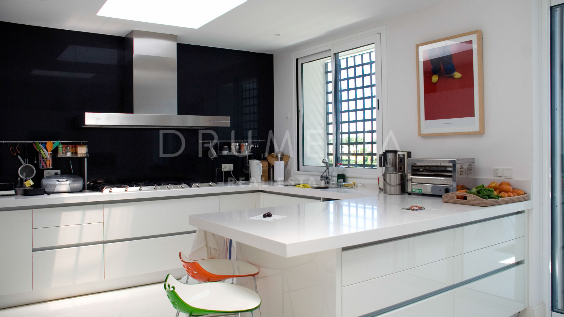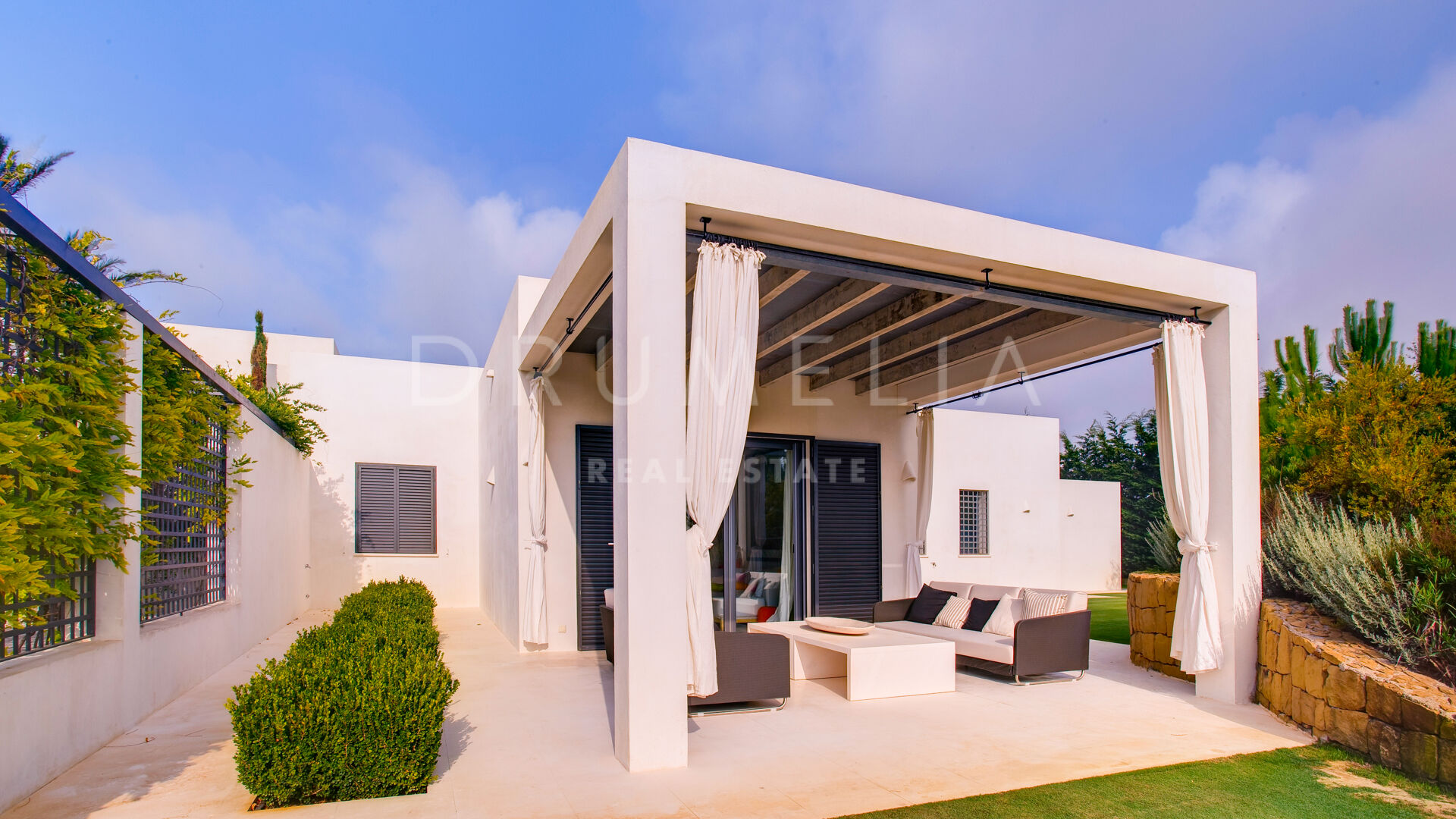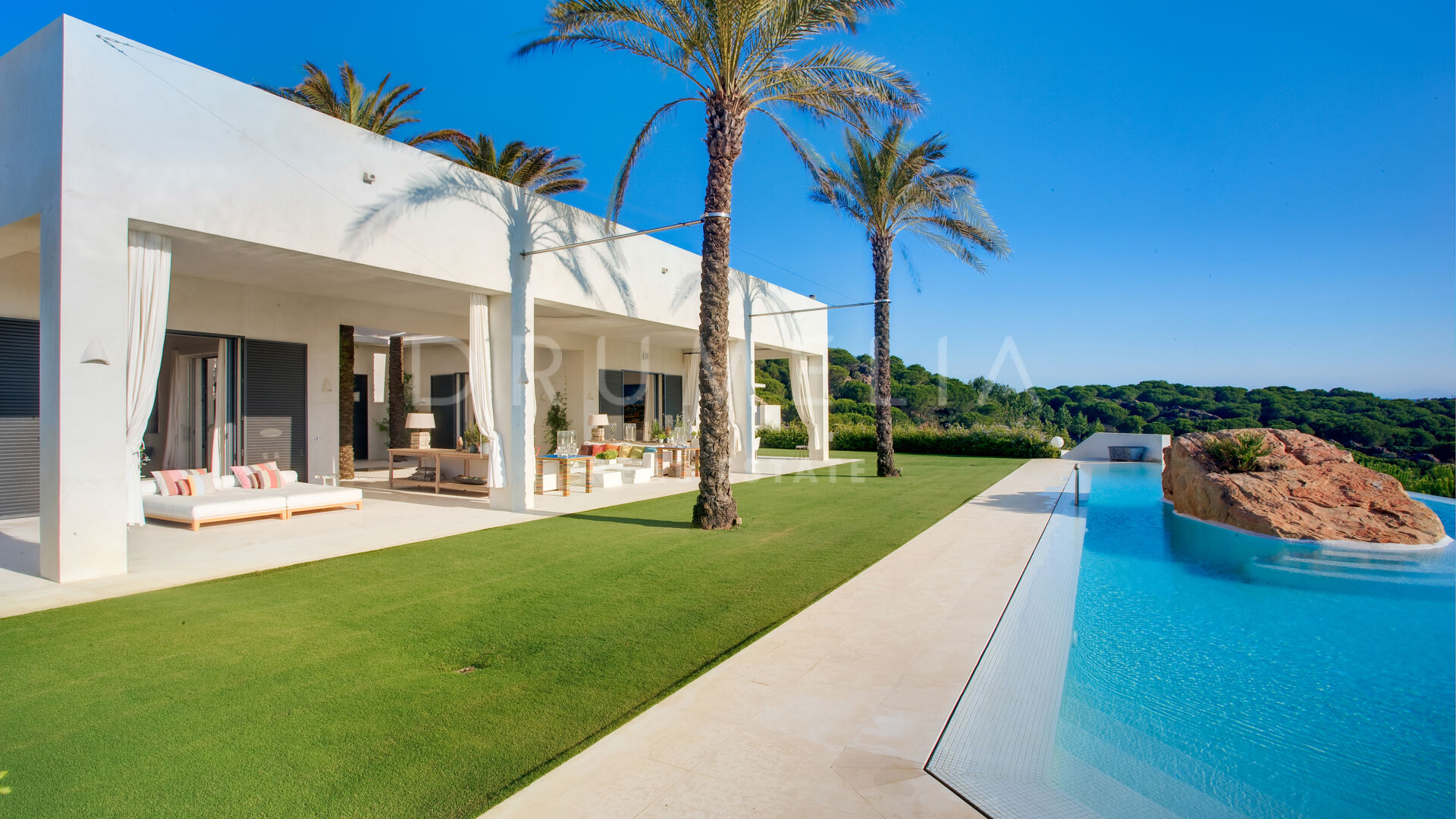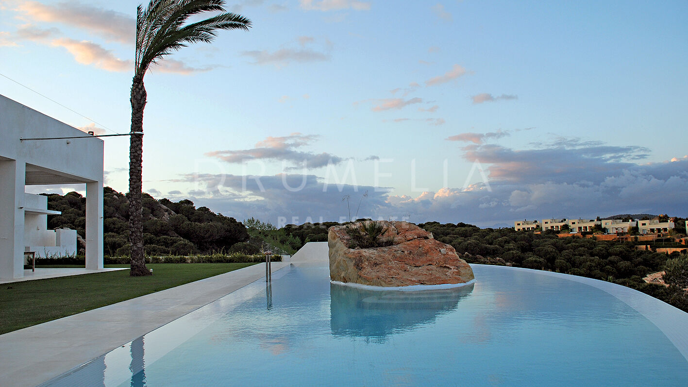 Cette superbe maison de luxe moderne de 8 chambres à vendre/louer est située dans la super prestigieuse communauté de golf de La Reserva de Sotogrande, dans l’une des régions les plus désirables et haut de gamme d’Europe, Sotogrande (Alto). La flore caractéristique de la réserve naturelle qui borde le terrain de 8 800 m² est un élément unificateur entre la résidence de 962 m² elle-même, avec ses espaces de vie, un porche, un patio central et des terrasses de 150 m², et le magnifique environnement qui l’entoure. L’entrée de la résidence se fait par un chemin entourant la parcelle, où le bois méditerranéen existant est conservé. Le style architectural est basé sur l’équilibre et la symétrie, le résultat étant une résidence ouverte sur chaque côté avec la sensation de vivre sur le pont d’un grand yacht. Dans la quête d’intégration à l’environnement, les éléments naturels cohabitent avec les zones bâties. La maison s’articule autour de la philosophie Feng-Shui qui consiste à vivre en harmonie avec son entourage et l’environnement. Le sentiment de confort que la symétrie des éléments procure à la résidence et la combinaison des couleurs invitent à profiter du moment présent et à être en paix.