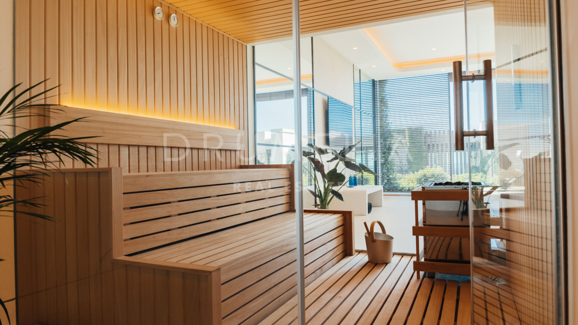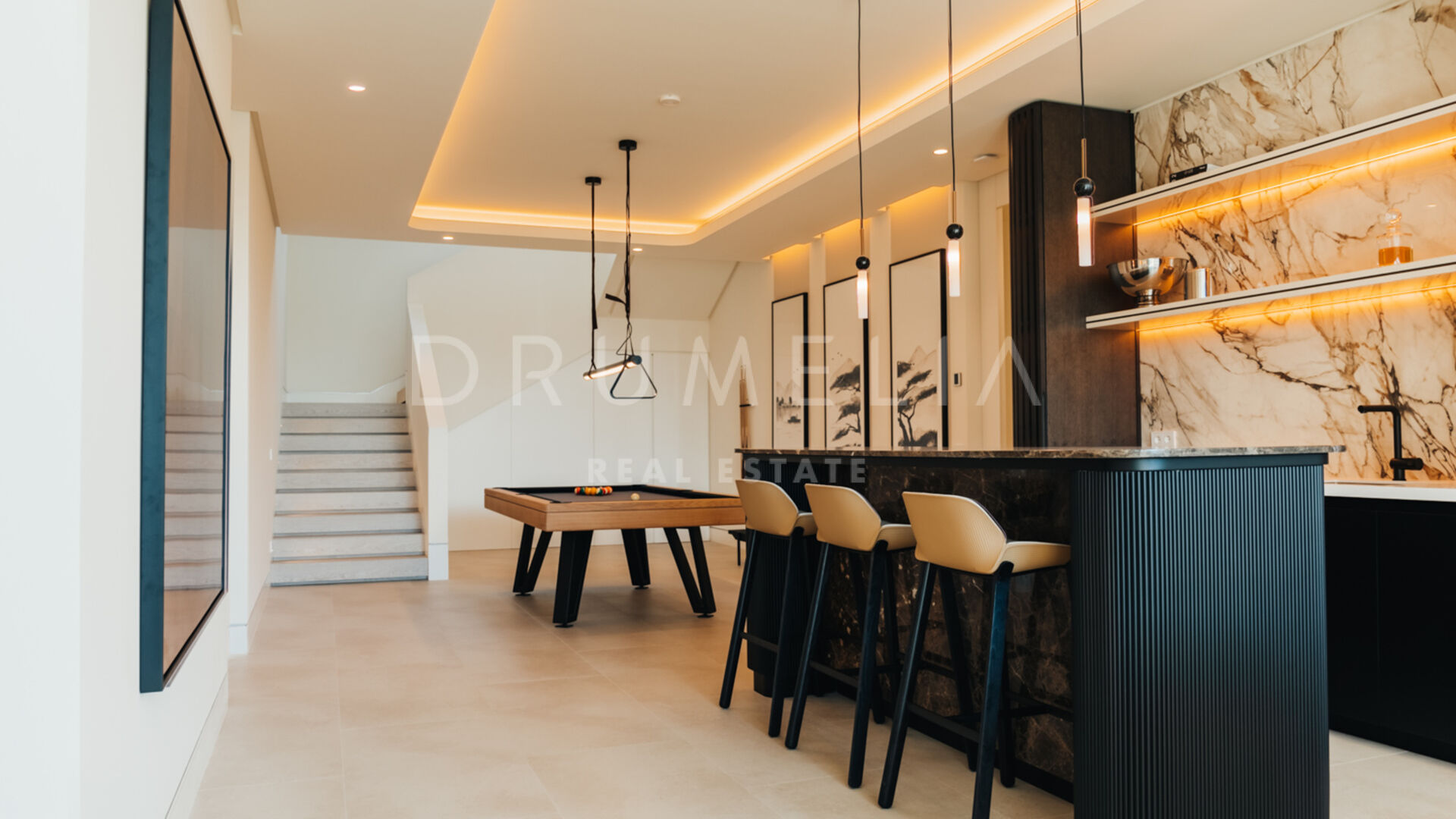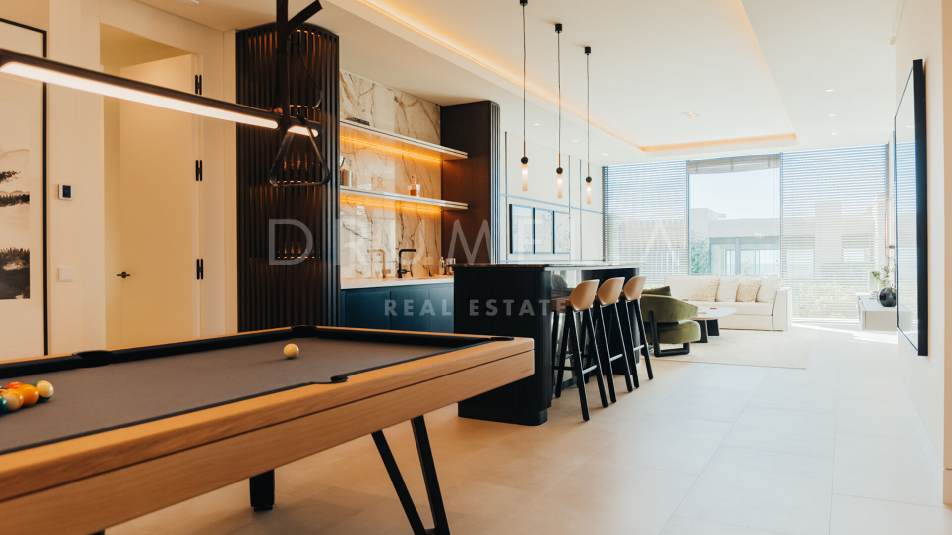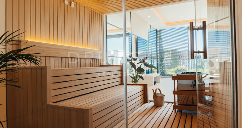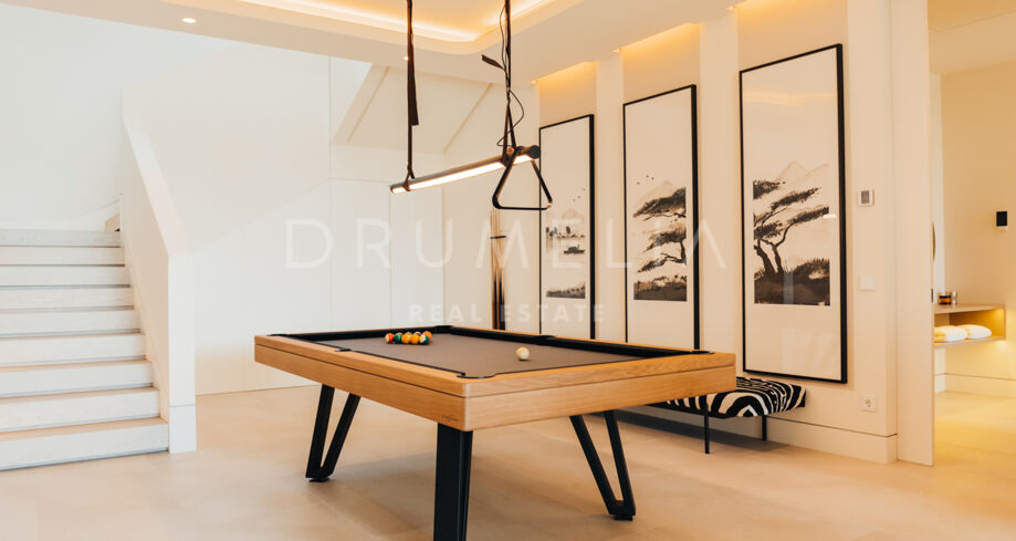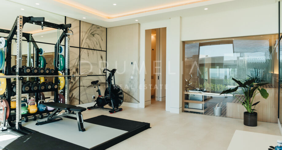 Une cuisine extérieure et des espaces repas viennent enrichir l’expérience, en faisant l’endroit idéal pour recevoir et profiter du climat méditerranéen avec style. Offrez-vous détente et divertissement avec un sauna privé, une salle de sport entièrement équipée et un espace de loisirs conçu pour un plaisir ultime. Cet espace de divertissement comprend une table de billard, un élégant bar et un salon TV confortable, créant le cadre parfait pour se détendre et socialiser sans quitter le confort de la maison.