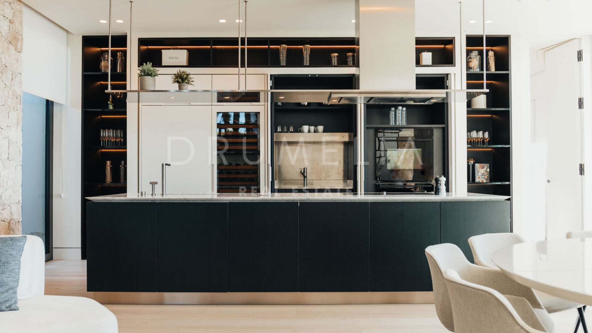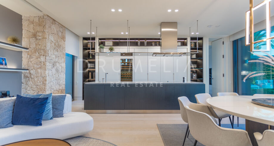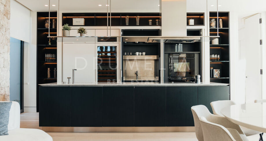 L’un des traits les plus captivants de cette villa exceptionnelle est son panorama spectaculaire, offrant des vues imprenables depuis la mer Méditerranée jusqu’à la pittoresque côte africaine. Dès que vous franchissez le seuil, vous êtes accueilli par des vues incroyables qui s’étendent à perte de vue. Son design contemporain intègre de vastes espaces ouverts, fusionnant harmonieusement l’intérieur signé Pedro Peña avec l’extérieur conçu par Tobal Arquitectos.