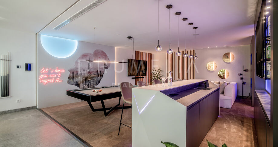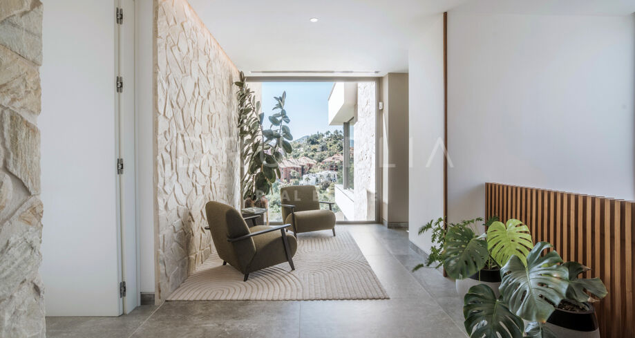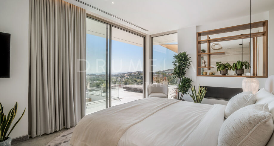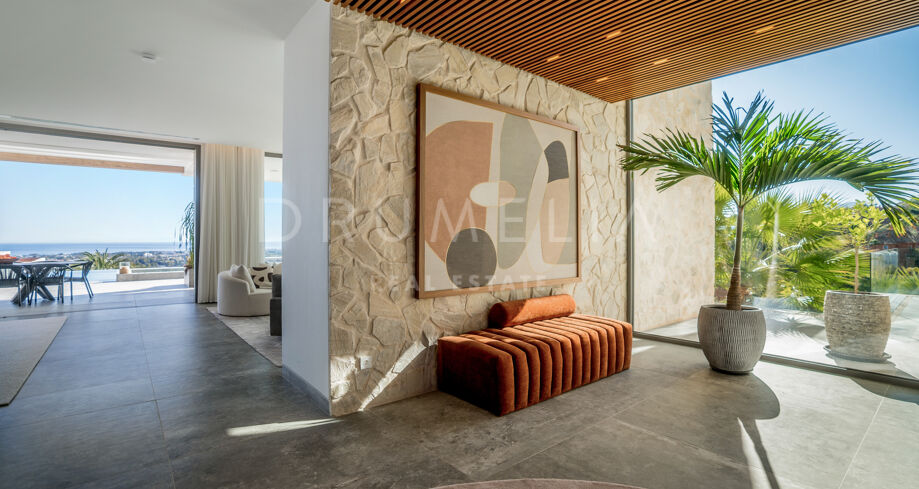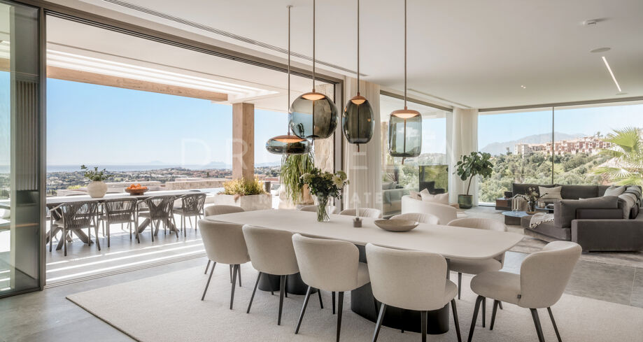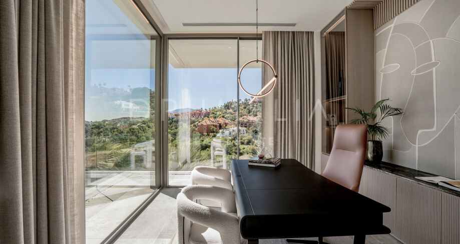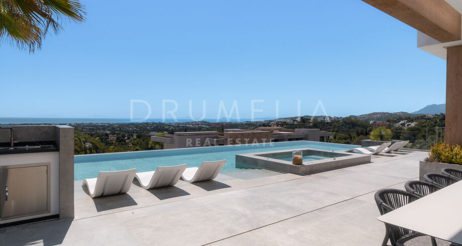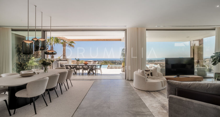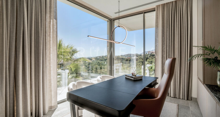 Perchée au sommet de La Quinta, dans la prestigieuse communauté fermée d’El Herrojo Alto, cette villa contemporaine offre une intimité totale, un luxe raffiné et des vues panoramiques allant de la mer Méditerranée jusqu’aux côtes africaines. Son architecture moderne s’intègre parfaitement à l’environnement naturel, tandis que les espaces ouverts et les baies vitrées inondent l’intérieur de lumière naturelle et d’air frais. Conçue pour une vie intérieure-extérieure fluide, chaque pièce profite d’un panorama exceptionnel.