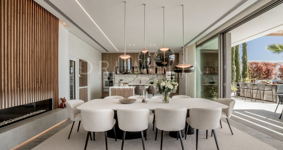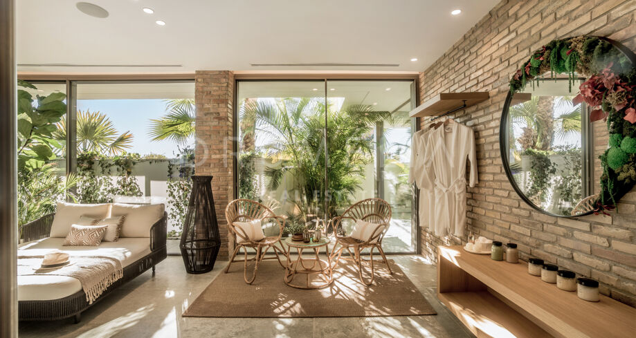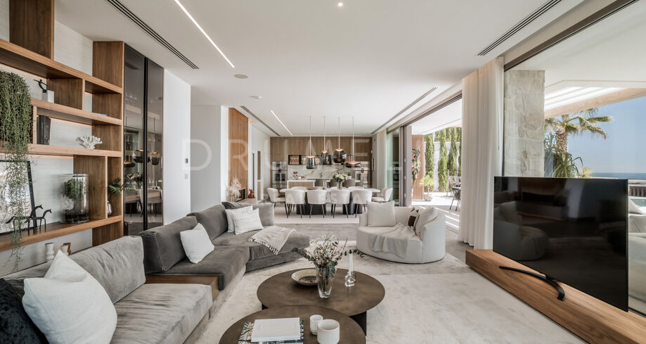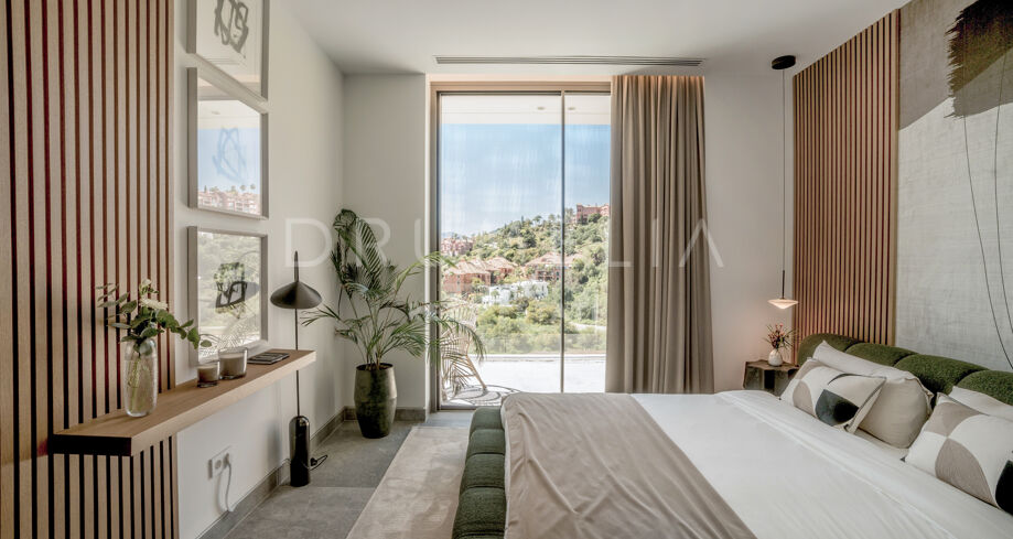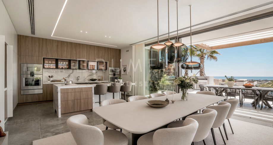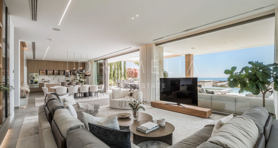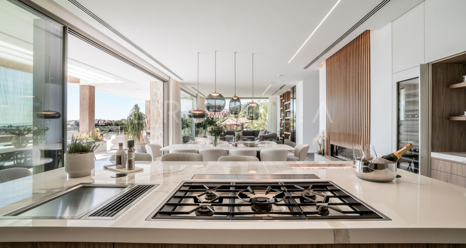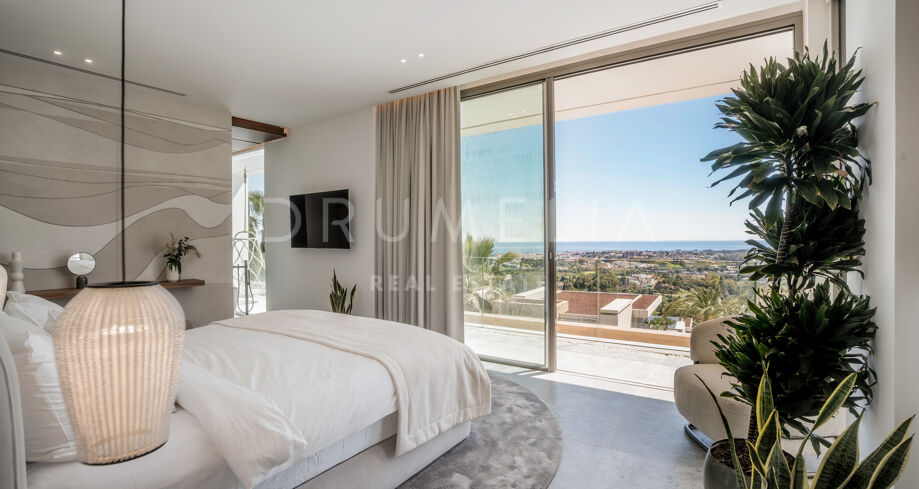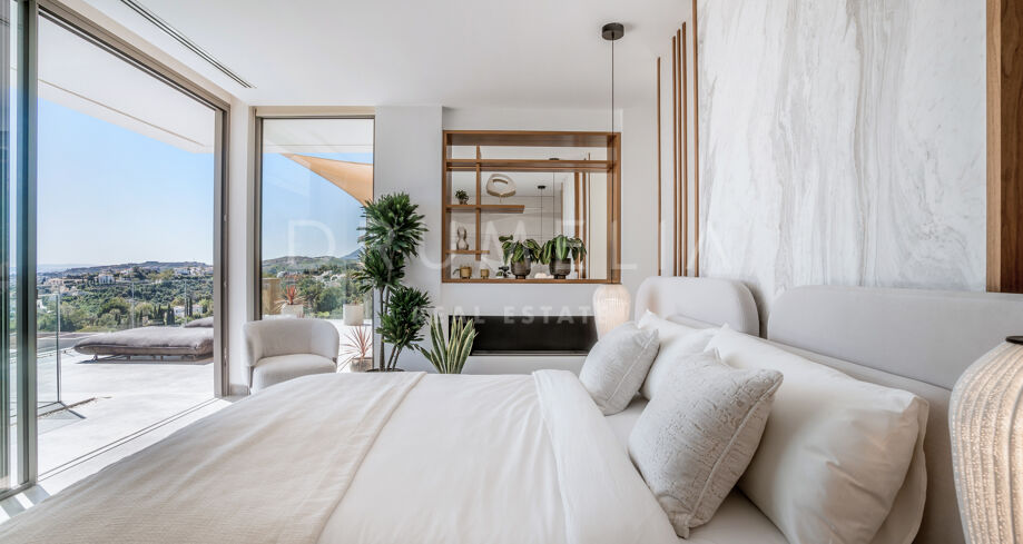 Perchée au sommet de La Quinta, dans la prestigieuse communauté fermée d’El Herrojo Alto, cette villa contemporaine offre une intimité totale, un luxe raffiné et des vues panoramiques allant de la mer Méditerranée jusqu’aux côtes africaines. Son architecture moderne s’intègre parfaitement à l’environnement naturel, tandis que les espaces ouverts et les baies vitrées inondent l’intérieur de lumière naturelle et d’air frais. Conçue pour une vie intérieure-extérieure fluide, chaque pièce profite d’un panorama exceptionnel.