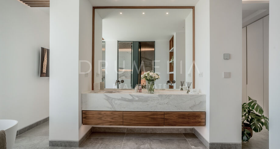 La suite parentale est spectaculaire, avec une vue imprenable sur la mer, un dressing sur mesure et une salle de bain attenante inspirée d’un spa. Chaque détail a été soigneusement pensé pour créer une expérience résidentielle exceptionnelle, entre luxe, sérénité et élégance.