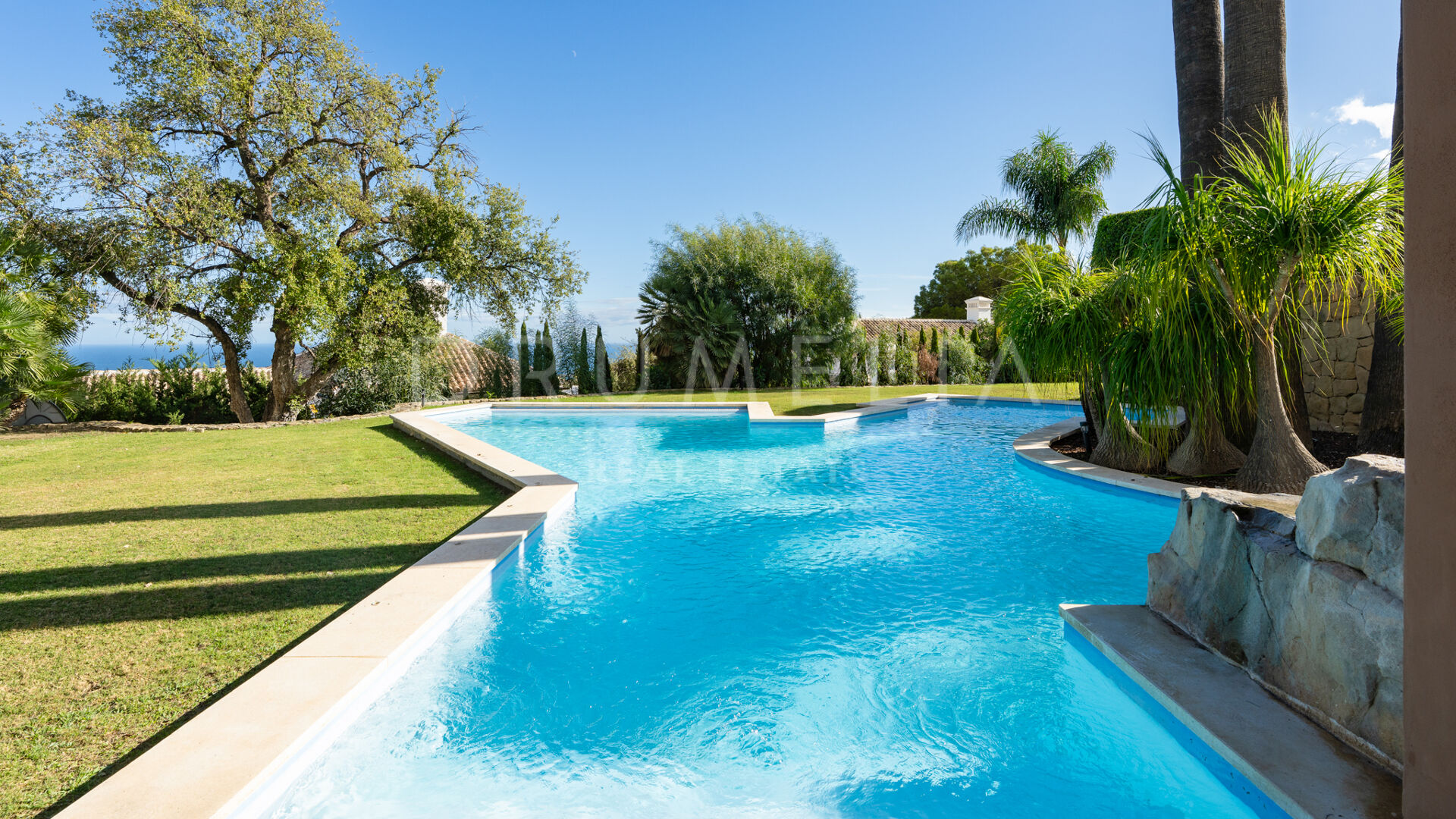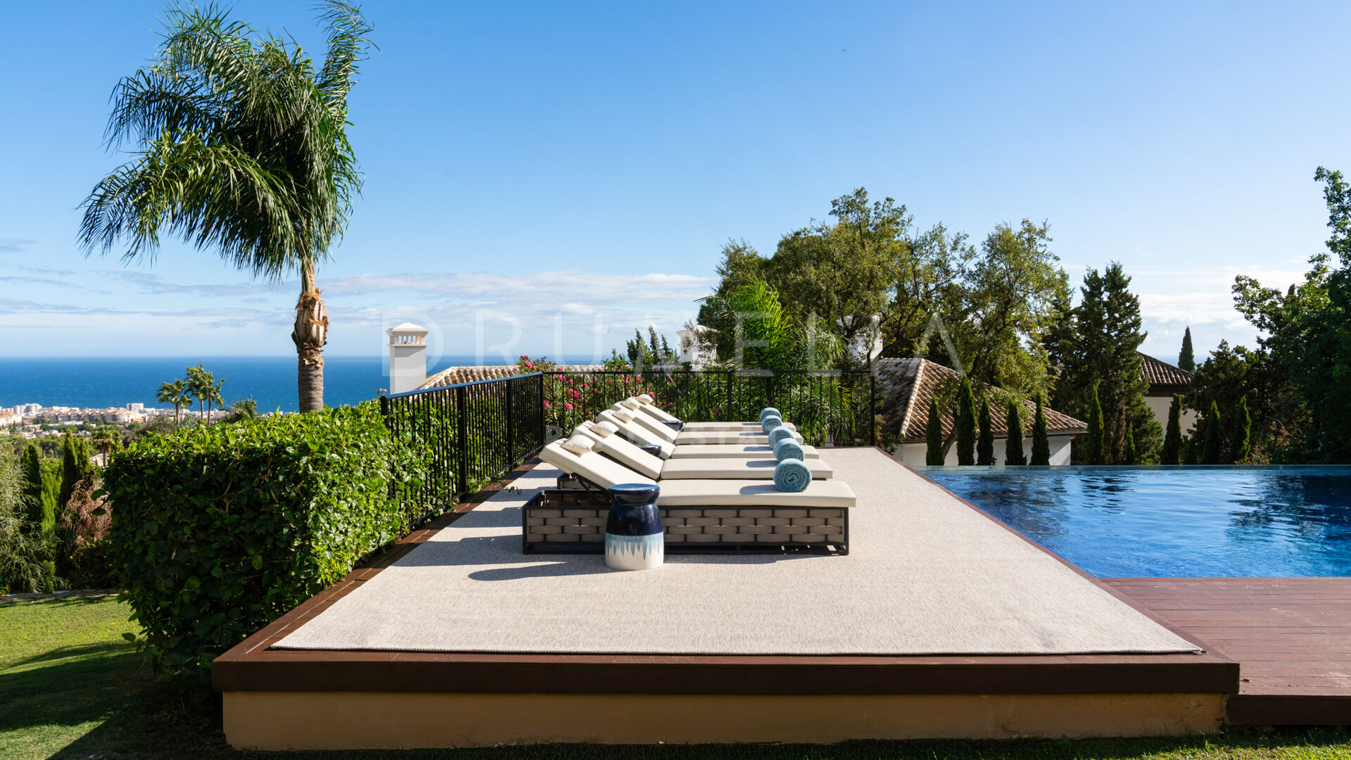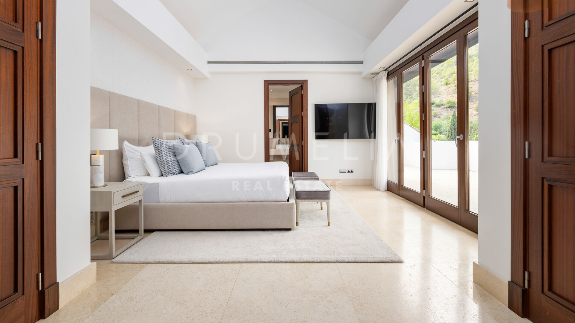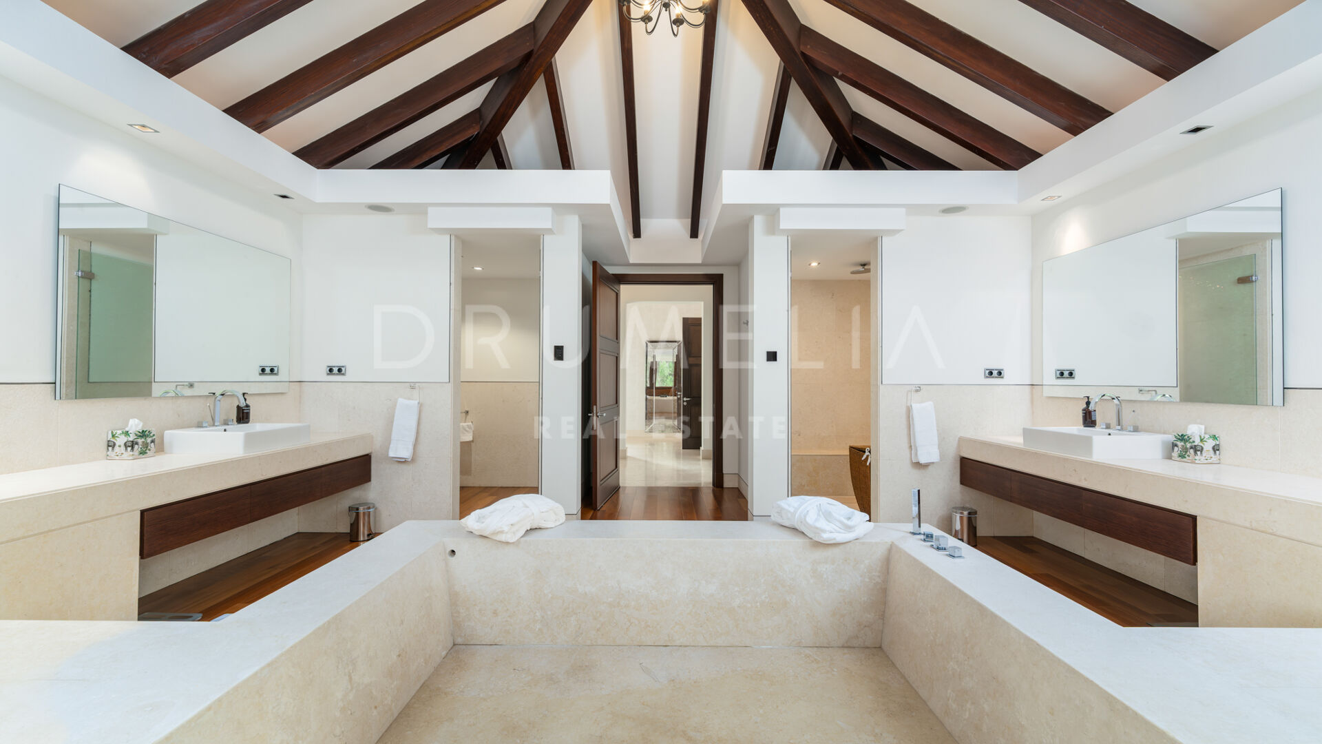This Mediterranean-style villa sits in Cascada de Camoján, Golden Mile, Marbella, one of the area’s most private and prestigious gated communities. Elevated in the foothills of La Concha, the property enjoys sweeping sea views and quick access to Marbella’s amenities, beaches, and the Golden Mile (approx. 5–10 minutes by car).