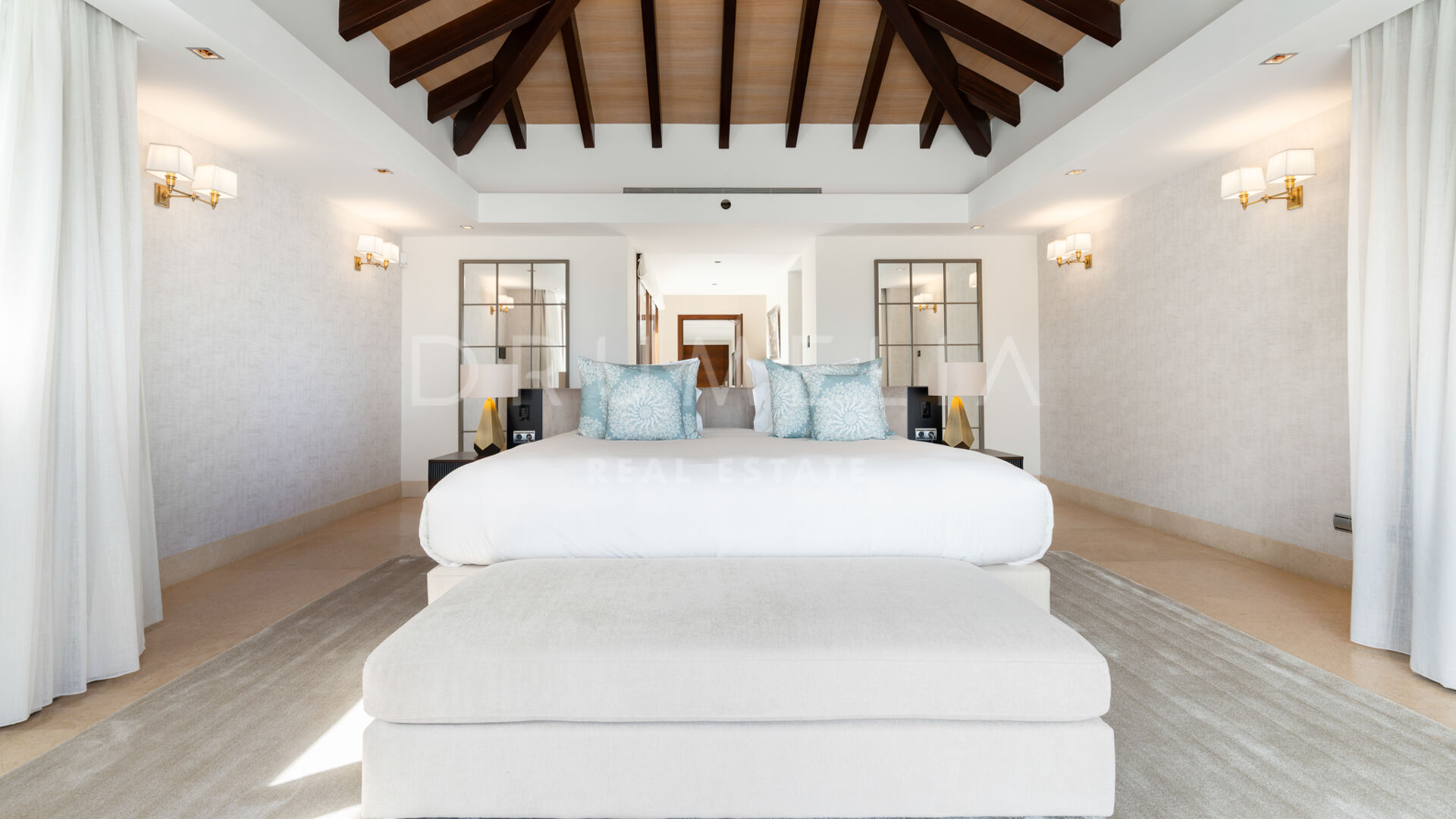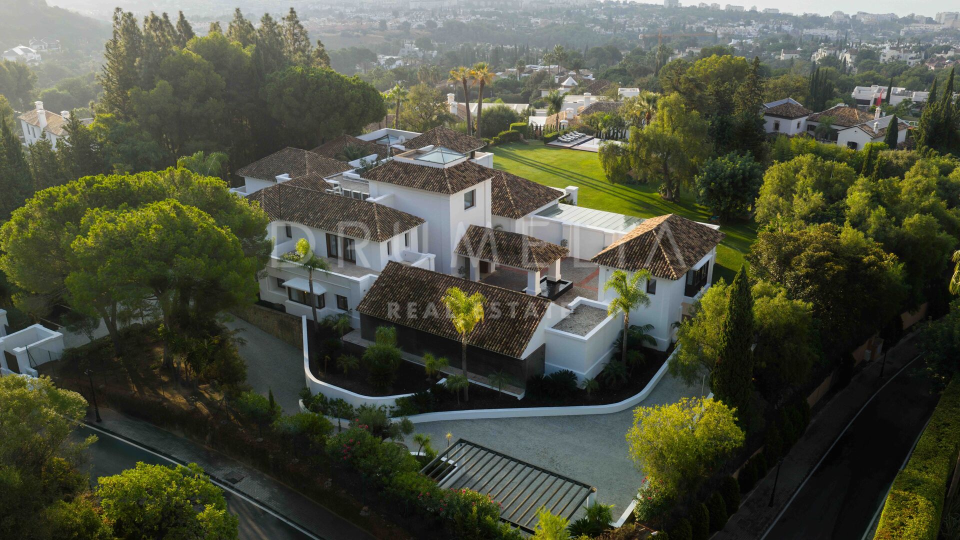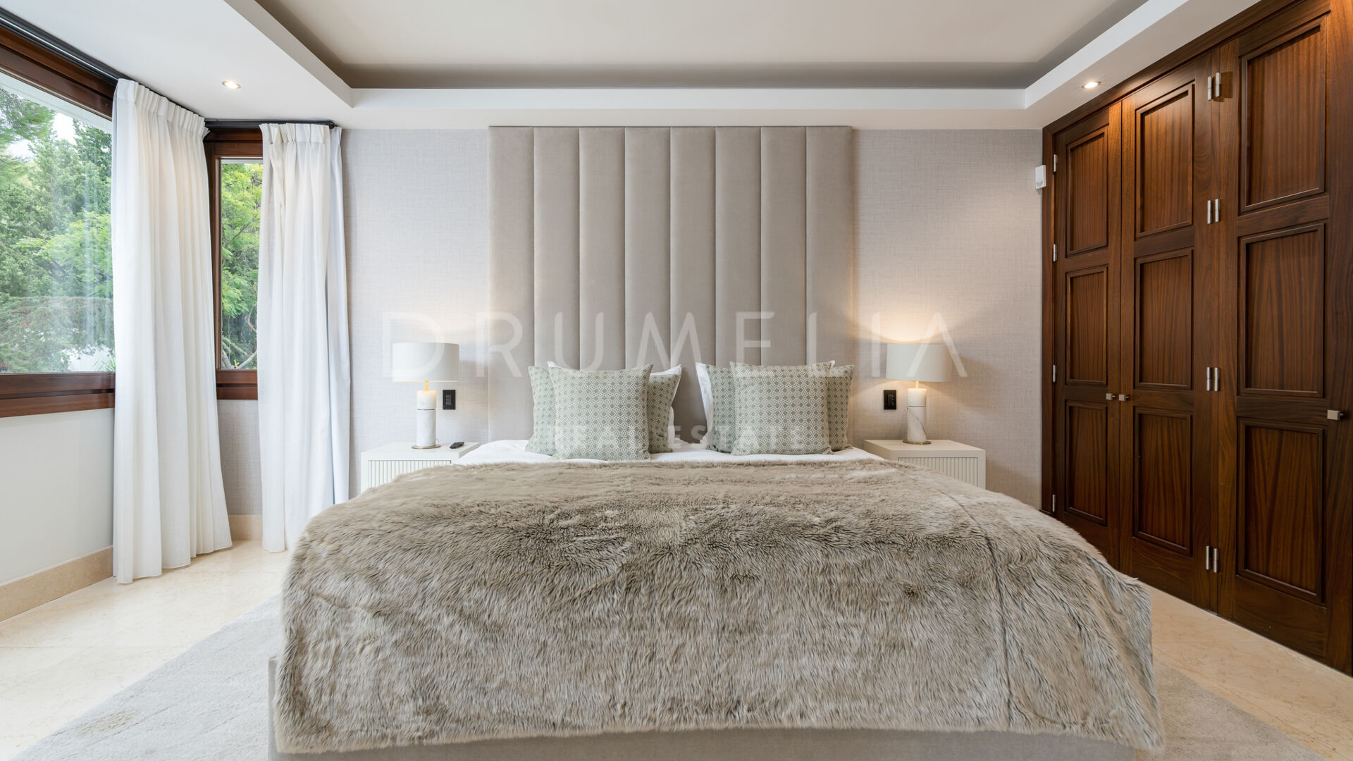 This Mediterranean-style villa sits in Cascada de Camoján, Golden Mile, Marbella, one of the area’s most private and prestigious gated communities. Elevated in the foothills of La Concha, the property enjoys sweeping sea views and quick access to Marbella’s amenities, beaches, and the Golden Mile (approx. 5–10 minutes by car).