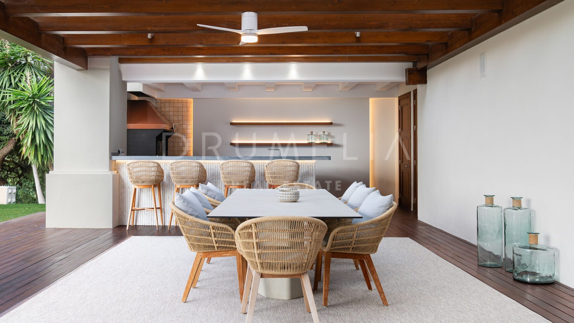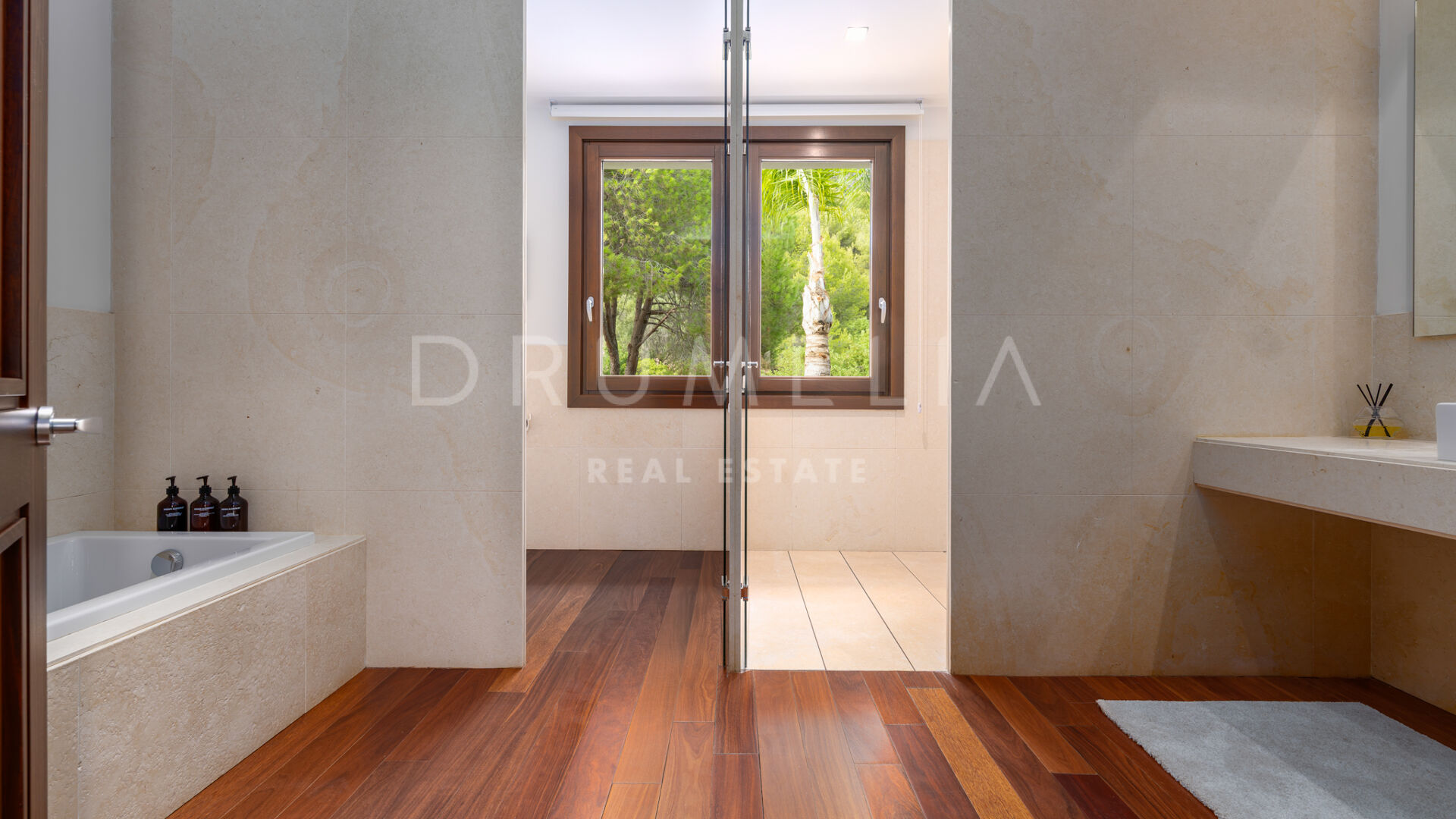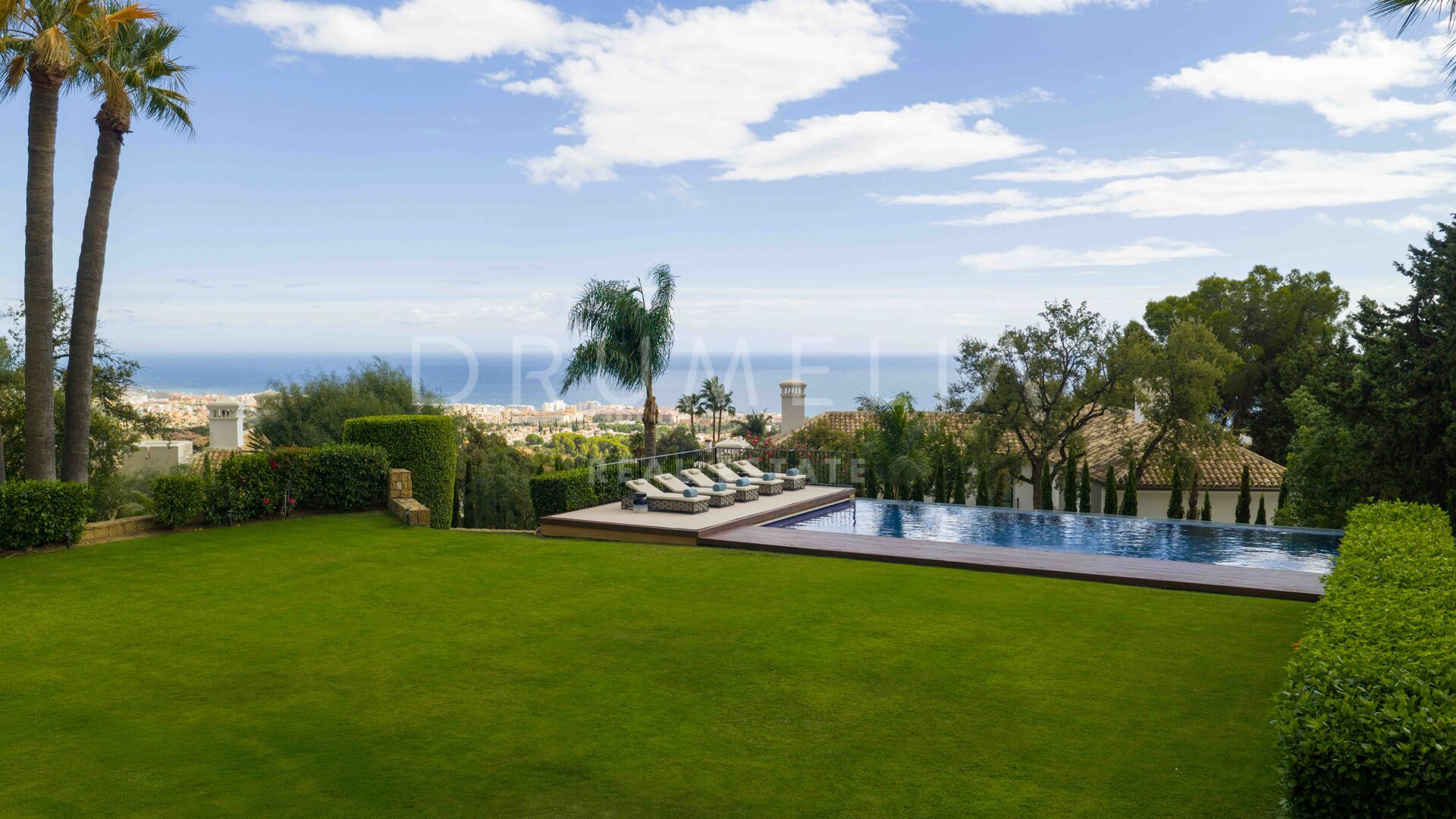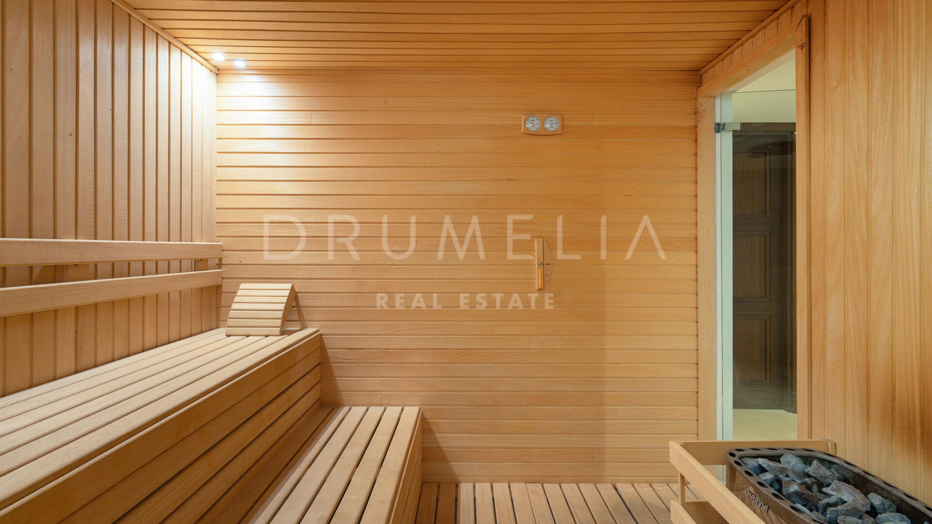 This Mediterranean-style villa sits in Cascada de Camoján, Golden Mile, Marbella, one of the area’s most private and prestigious gated communities. Elevated in the foothills of La Concha, the property enjoys sweeping sea views and quick access to Marbella’s amenities, beaches, and the Golden Mile (approx. 5–10 minutes by car).