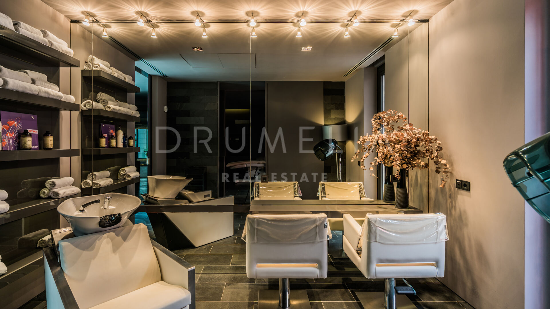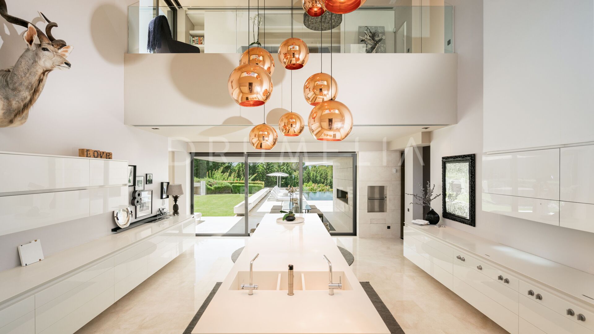 The property includes a complete spa with sauna, steam bath, cold plunge, gym and beauty salon, along with an elegant glass wine cellar, grand piano, and an integrated Meridian sound system. A Poggenpohl-designed kitchen acts as the centre of culinary life, combining clarity and precision with top-tier finishes.