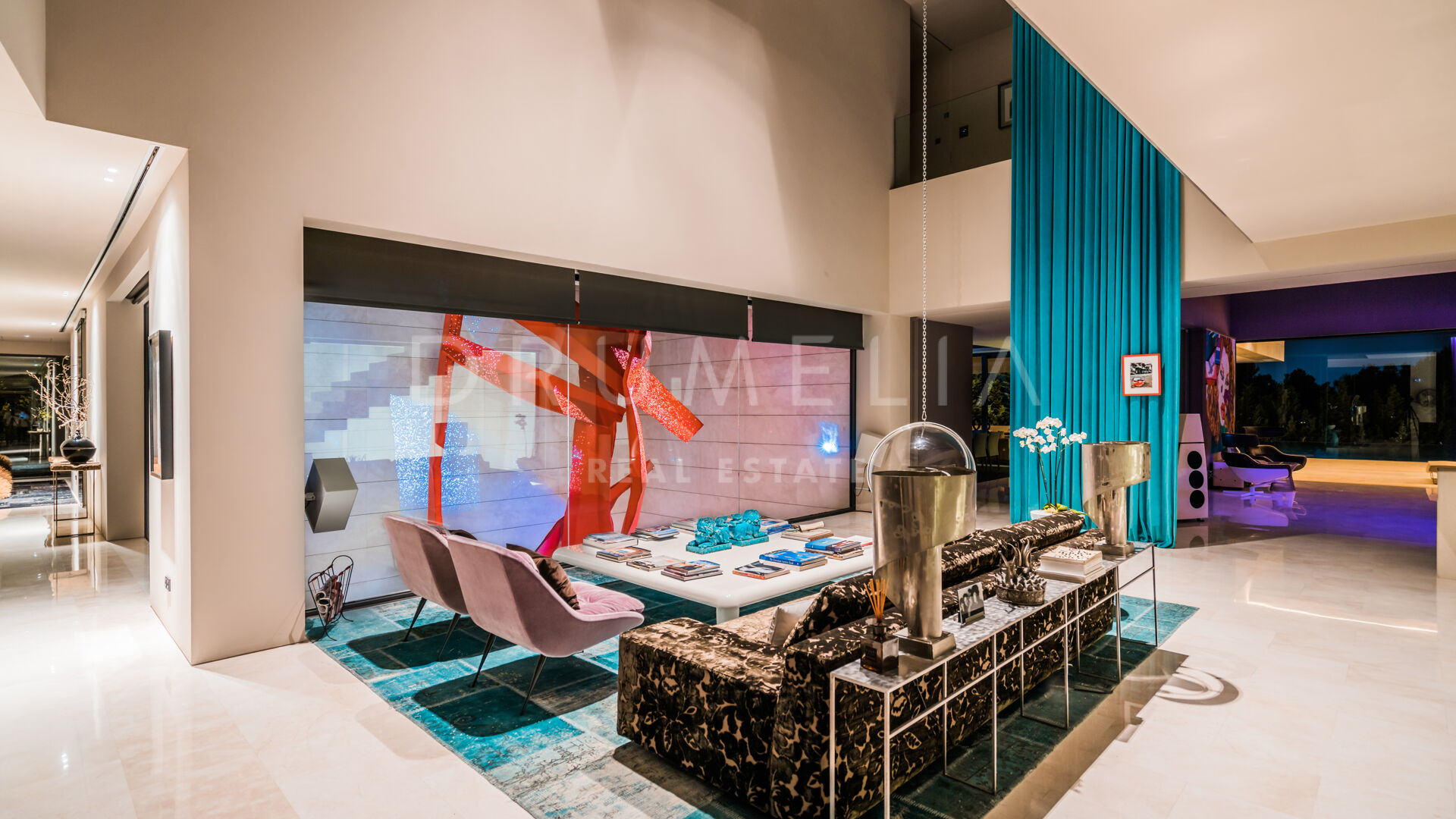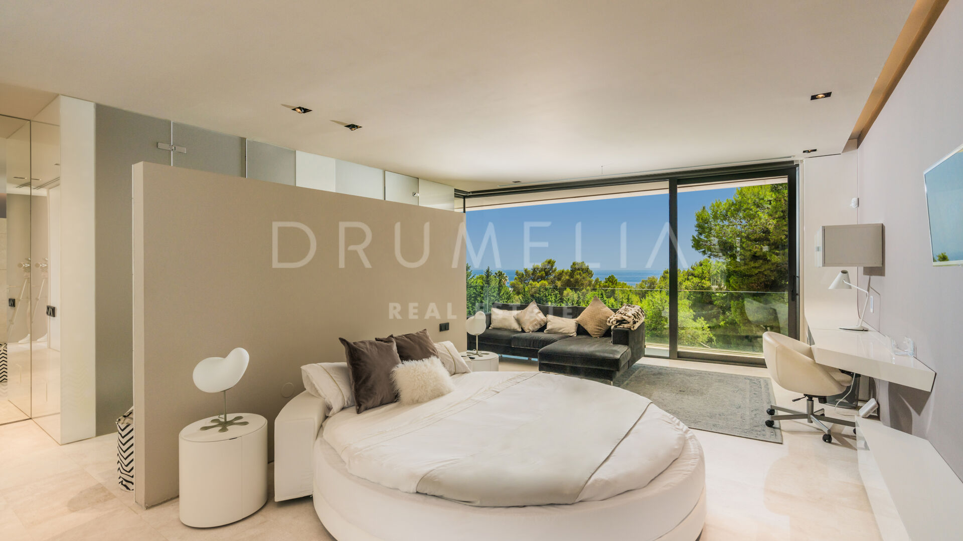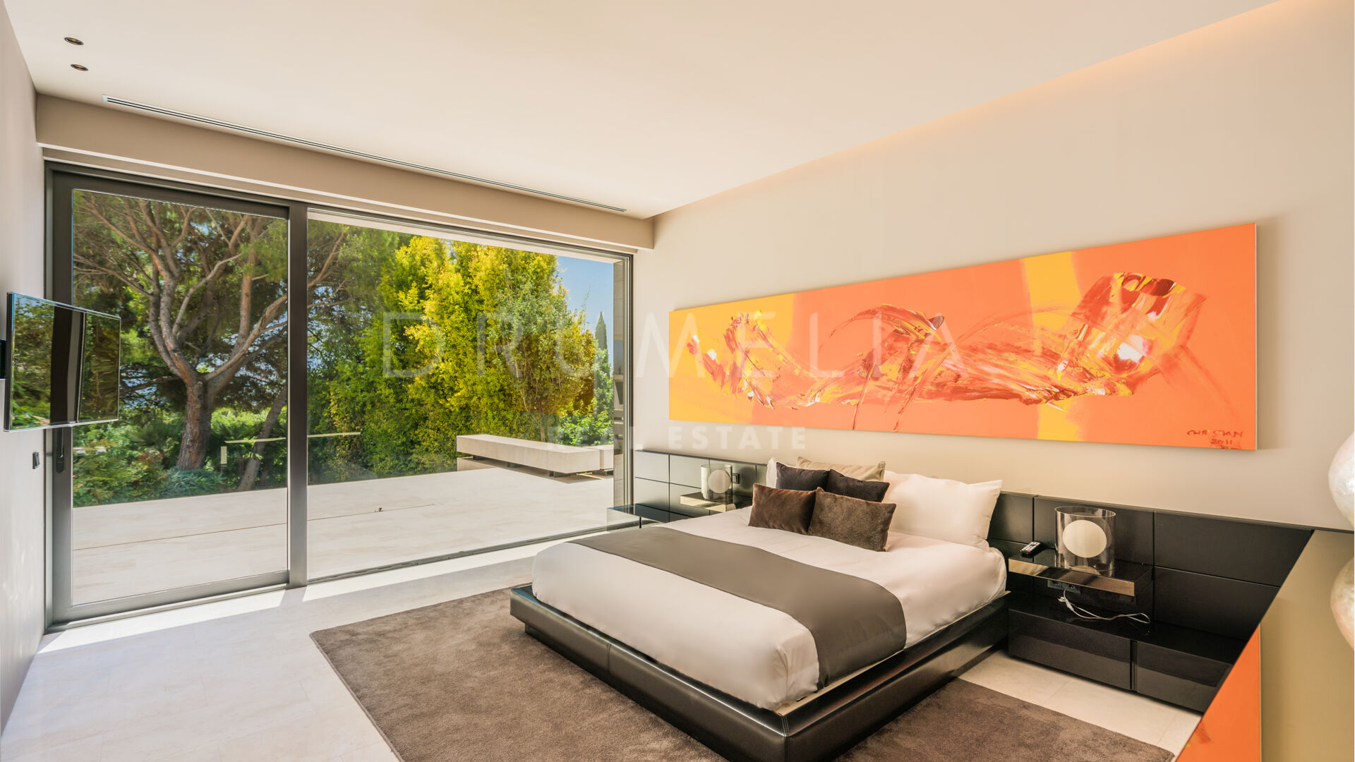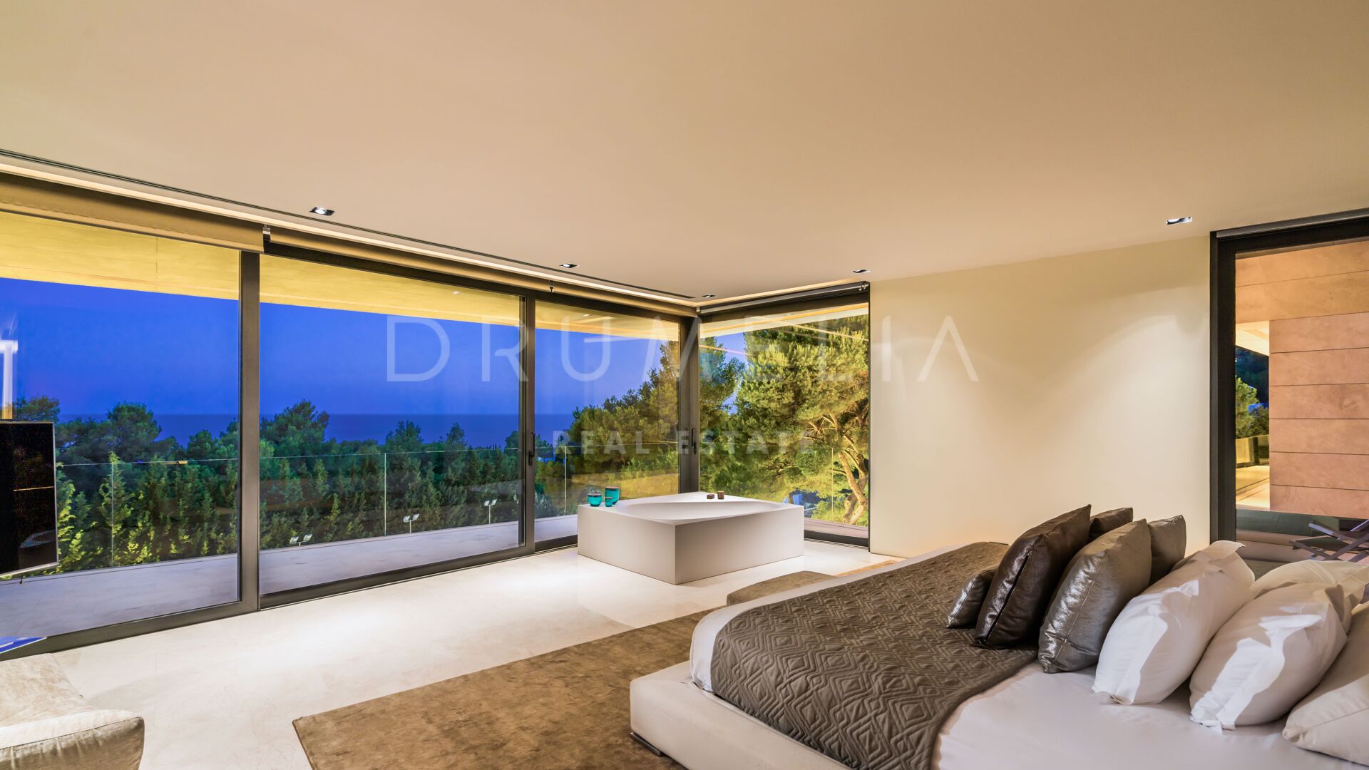 Set in the lush foothills of Cascada de Camoján, Golden Mile, Marbella, this contemporary Mediterranean villa offers an extraordinary blend of design, nature, and tranquillity. Surrounded by greenery and positioned to capture sweeping vistas across the Mediterranean toward two continents, the property delivers a rare sense of stillness and seclusion.