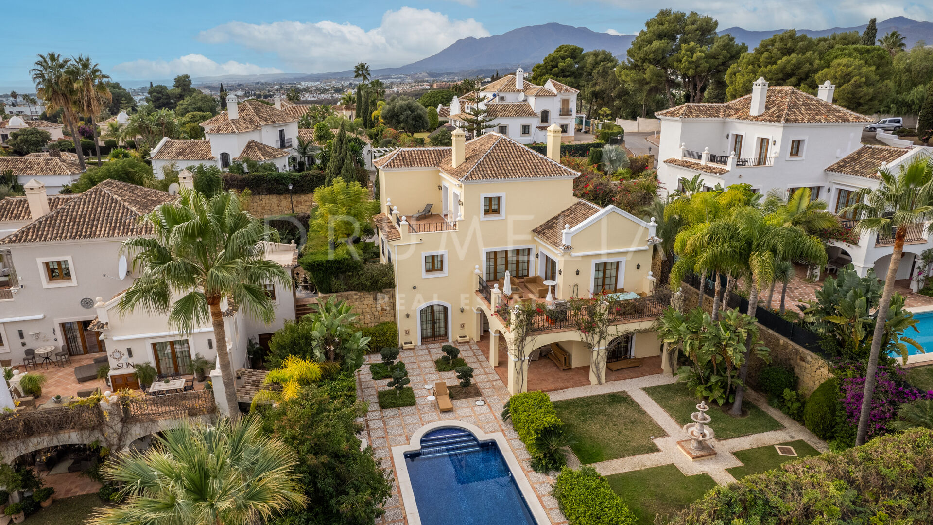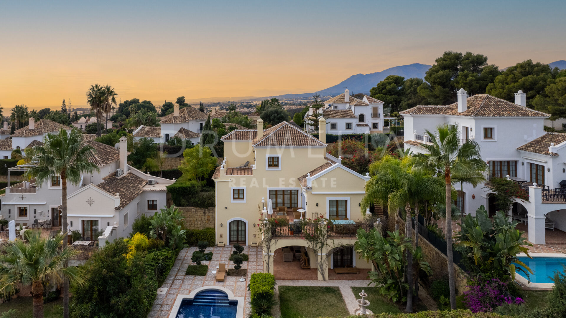 For sale is this home where every morning greets you with majestic sea views and evenings are spent on sunlit terraces, overlooking a pristine and tranquil garden. This is what awaits in this grand, south-facing villa located in the elite enclave of El Paraiso Medio.