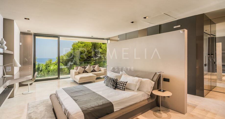 Med 3 152 m² inkluderer villaen åtte soverom, hvorav seks er suiter, og to gjesterom som deler et elegant bad. Lyse oppholdsrom flyter sømløst ut mot velutformede uteområder der minimalistisk arkitektur og naturlige materialer skaper en harmonisk atmosfære.