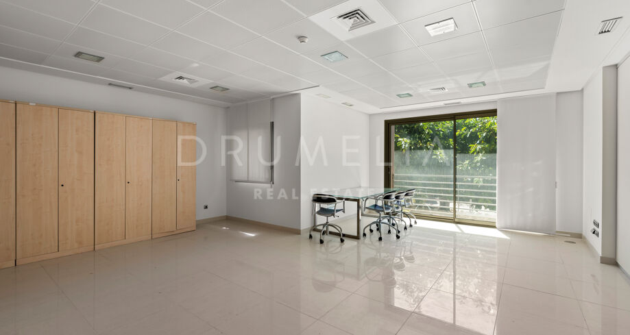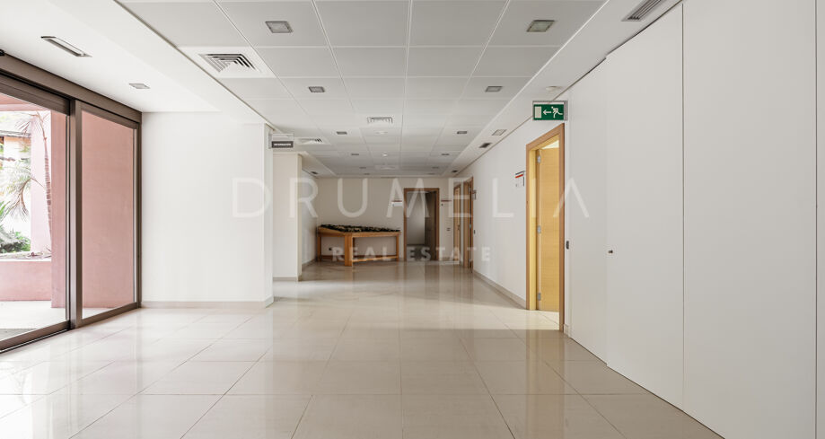Denne unike bygningen er et vitnesbyrd om arkitektonisk finesse og gjennomtenkt design, som kombinerer tidløs andalusisk sjarm med funksjonell innredning, og tilbyr et luksuriøst miljø for ulike virksomheter.