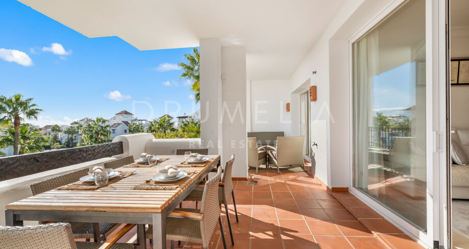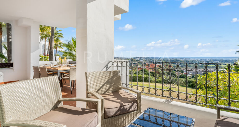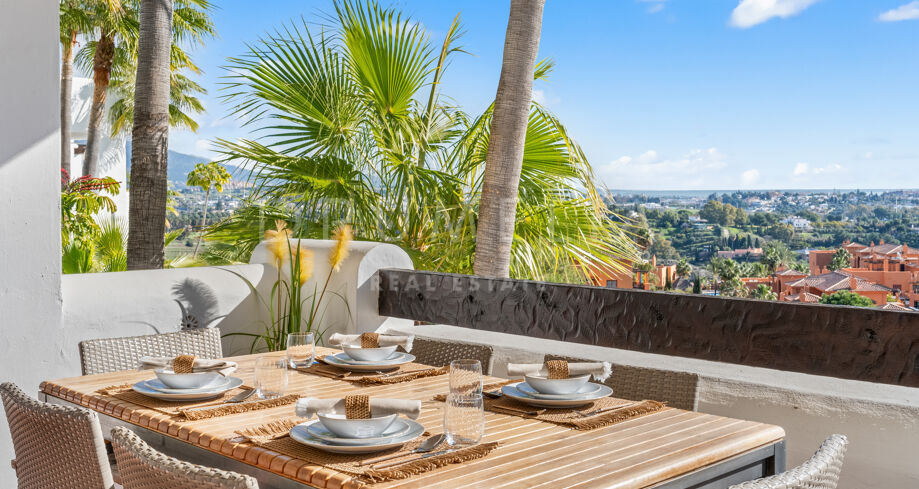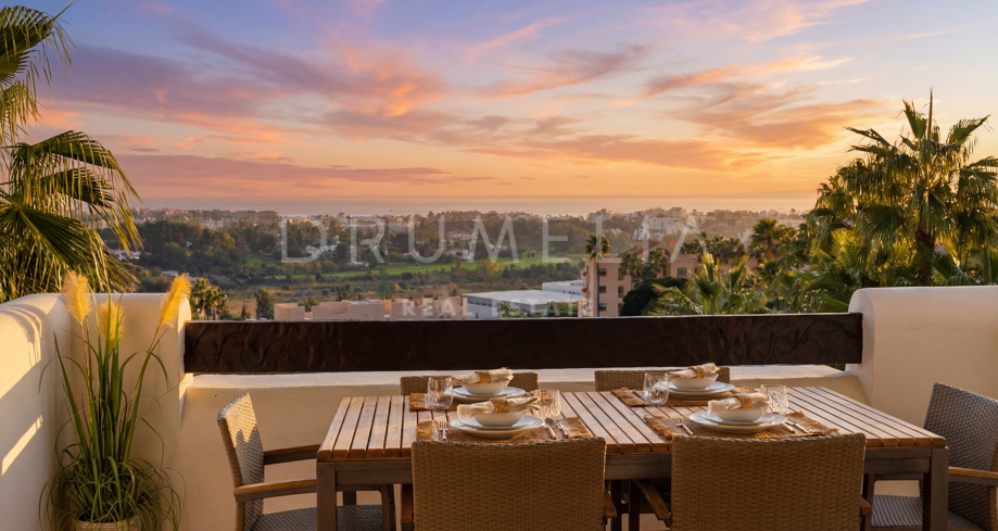 Eksklusiv leilighet beliggende i det prestisjefylte Lomas del Marqués-området i Benahavís, kjent for sitt naturlige miljø, ro og nærhet til kysten, og med et eksklusivt boligpreg.