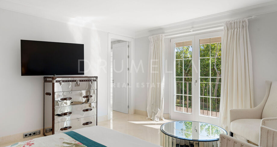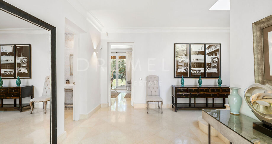 Denne villaen, beliggende i det eksklusive området Nagüeles på Marbellas Golden Mile, kombinerer tidløs sjarm med moderne komfort. På en tomt på 1 200 m² tilbyr eiendommen 475 m² elegant boareal omgitt av frodig vegetasjon og rolige uteområder.