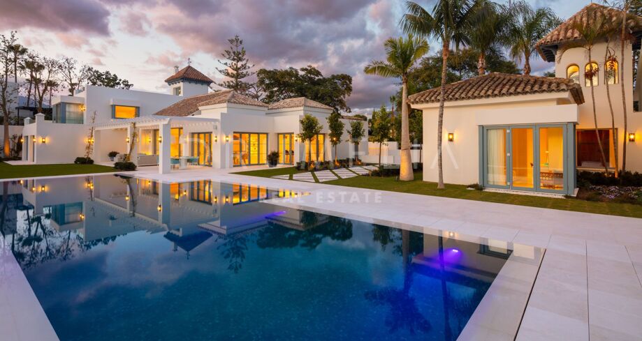 Førstelinje golfvilla i Nueva Andalucía med gjestehus
