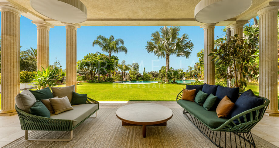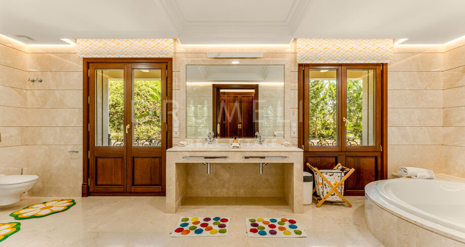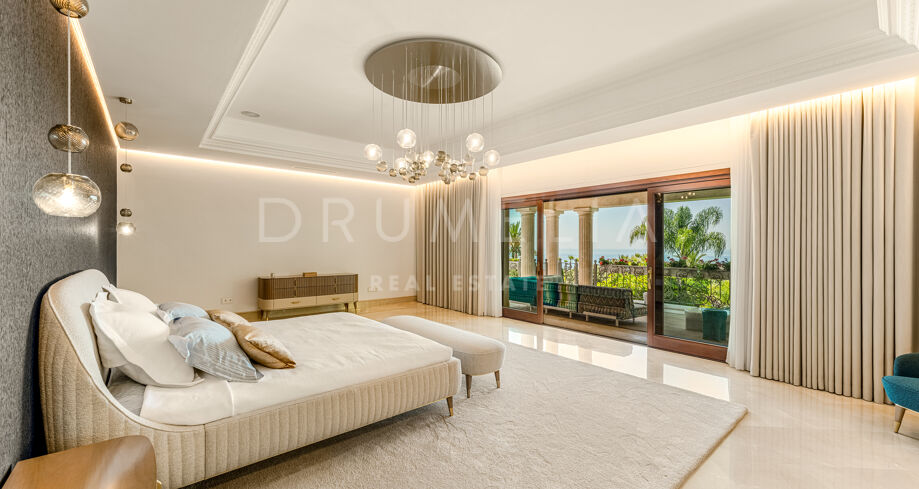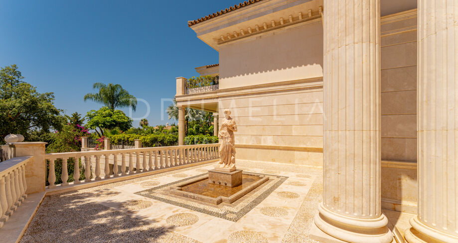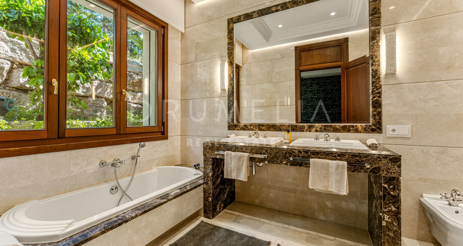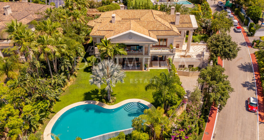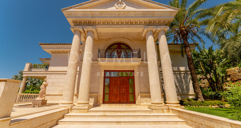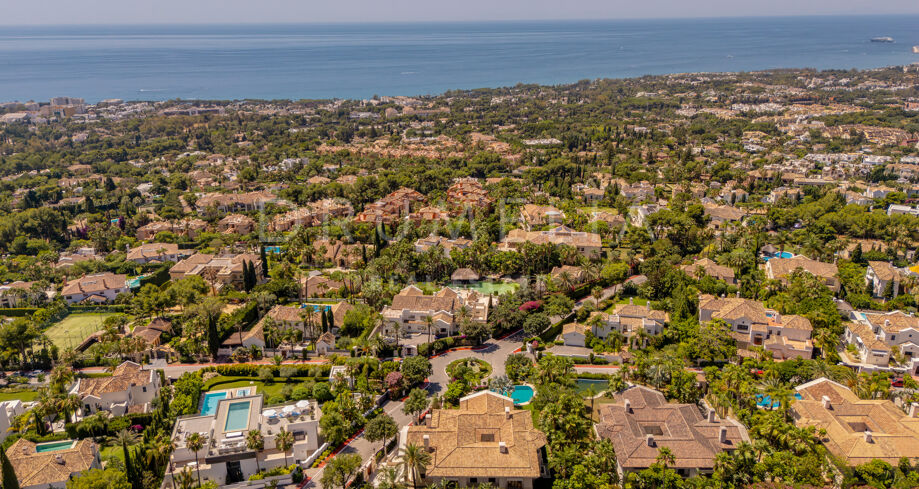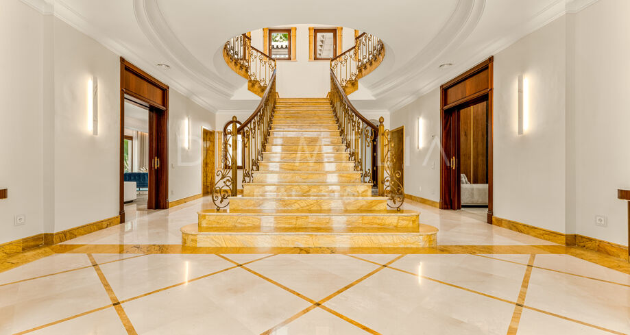 Denne imponerende villaen, som ligger i det prestisjetunge området Sierra Blanca, kombinerer storslått arkitektur, privatliv og frodig natur på en helt spesiell måte. Bak den klassiske fasaden skjuler det seg en eiendom med enestående romfølelse, elegante innvendige løsninger og store hageanlegg. Når du kommer inn, åpner hjemmet seg med lyse og romslige oppholdsrom og utsikt mot grøntområder og havet.