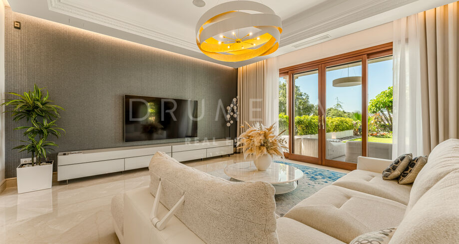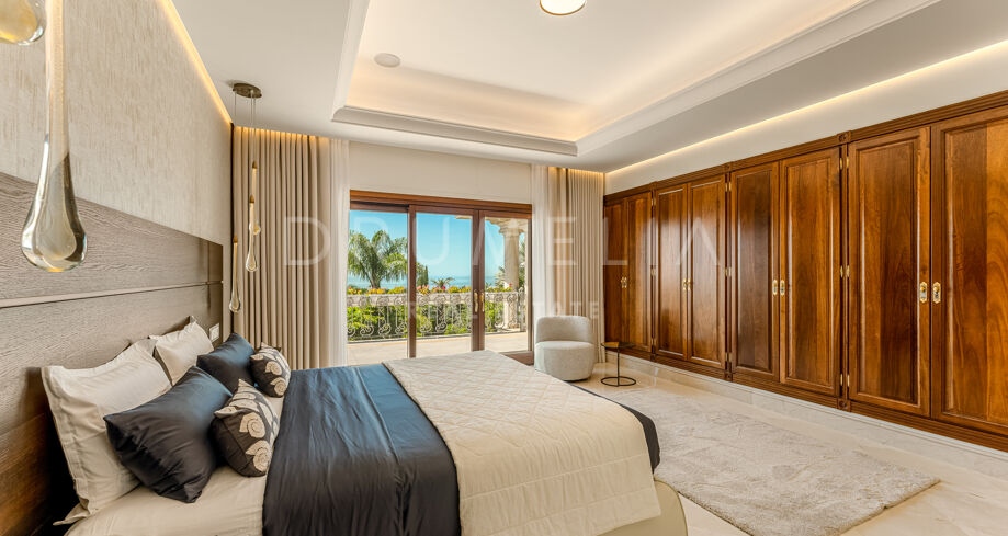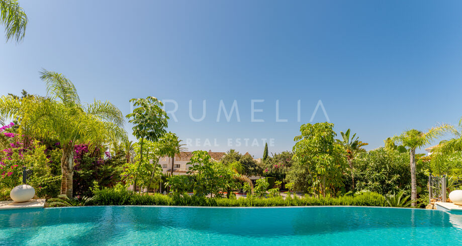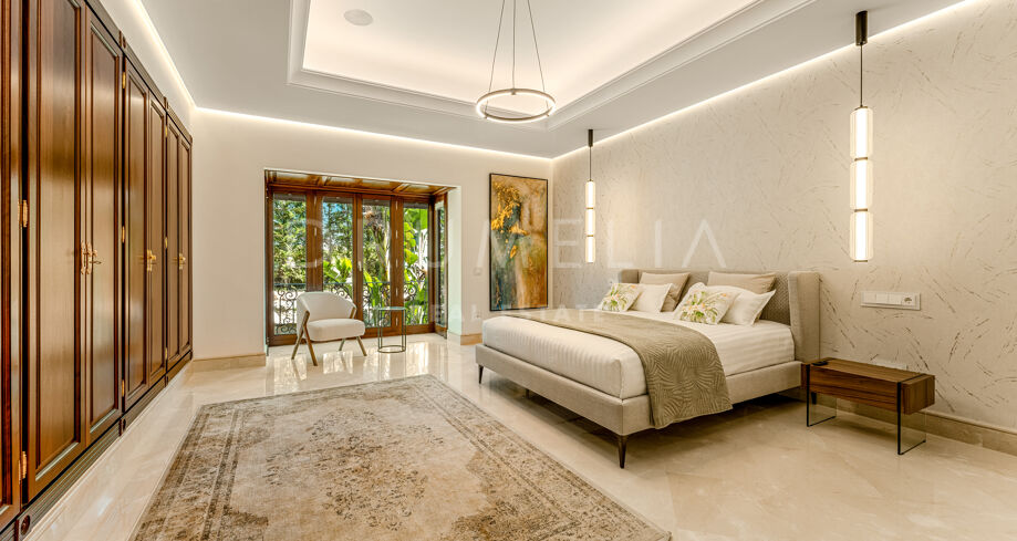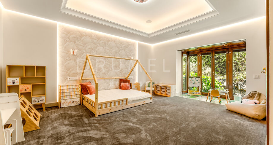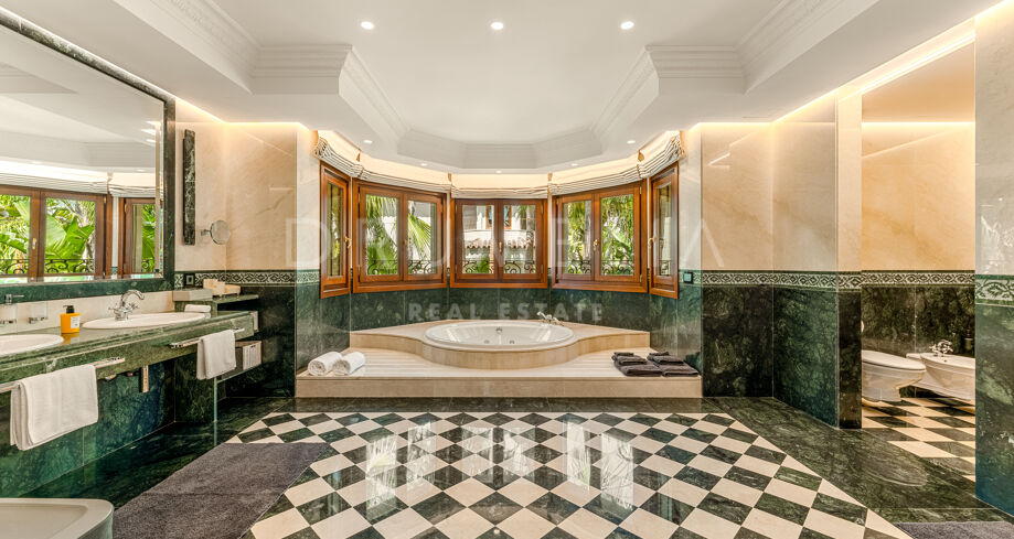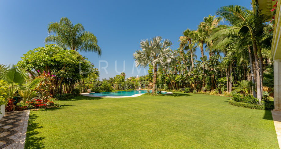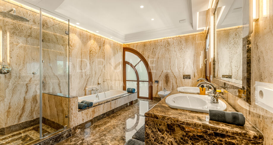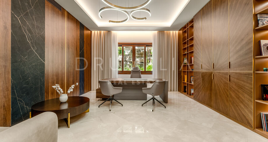 Denne imponerende villaen, som ligger i det prestisjetunge området Sierra Blanca, kombinerer storslått arkitektur, privatliv og frodig natur på en helt spesiell måte. Bak den klassiske fasaden skjuler det seg en eiendom med enestående romfølelse, elegante innvendige løsninger og store hageanlegg. Når du kommer inn, åpner hjemmet seg med lyse og romslige oppholdsrom og utsikt mot grøntområder og havet.