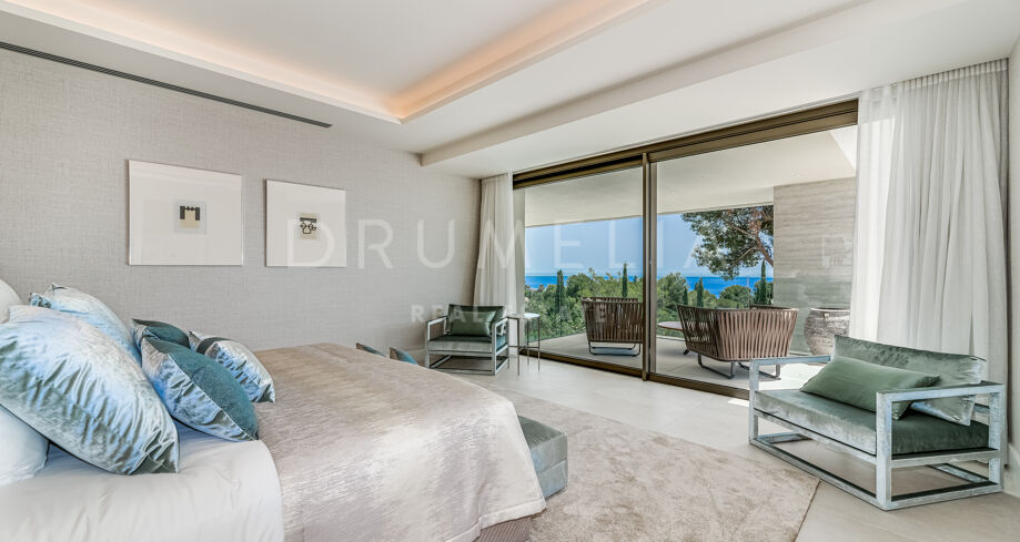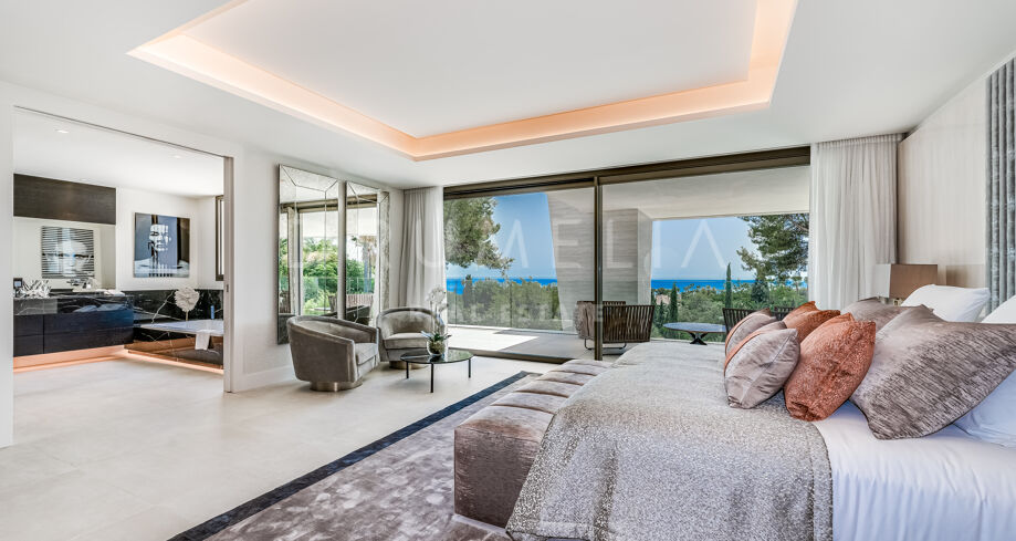 Og vi må ikke glemme havutsikten, som glitrer både inne og ute i denne fantastiske boligen. Villaen har plass til opptil 12 personer, med 6 soverom og 7 bad.