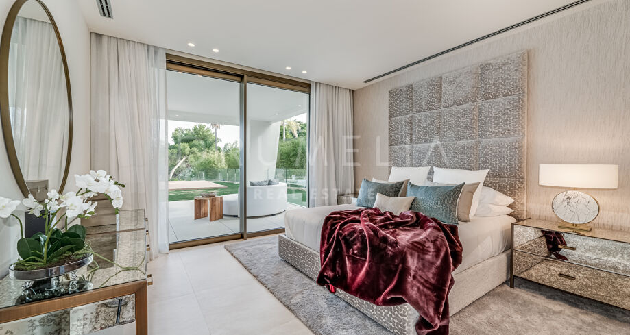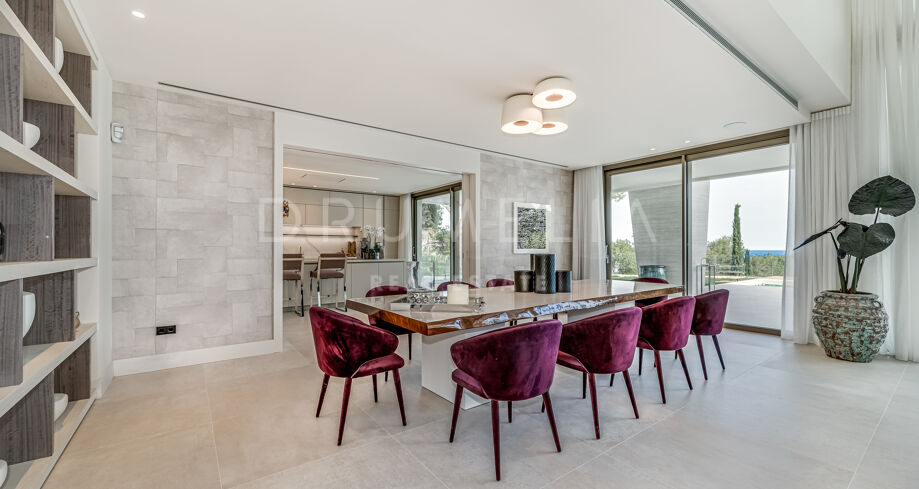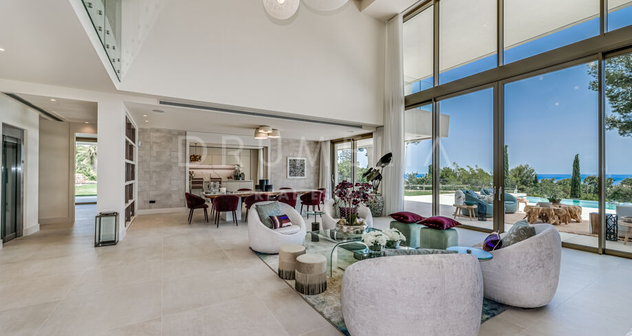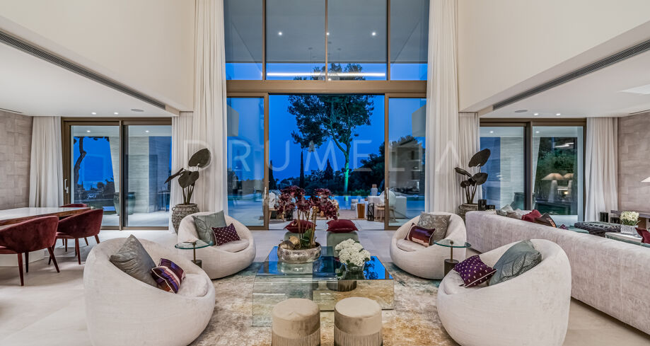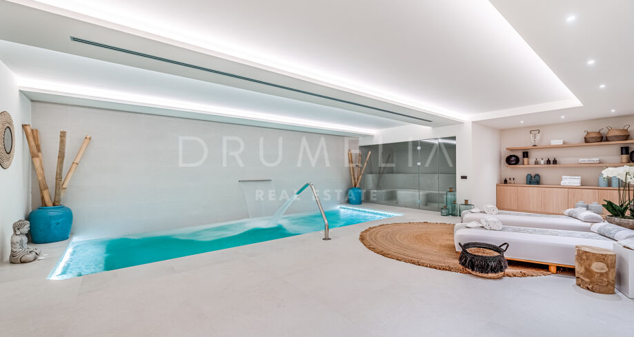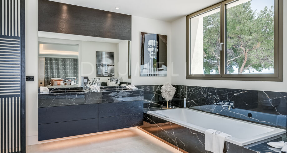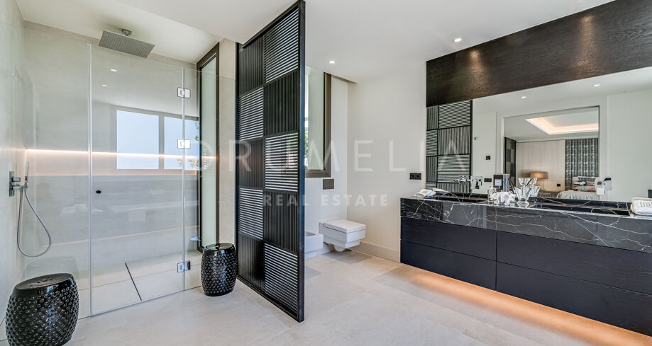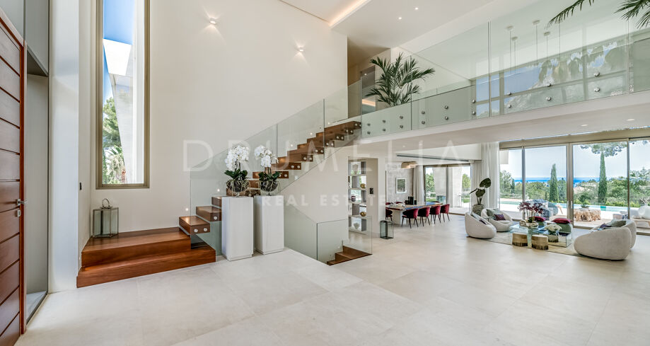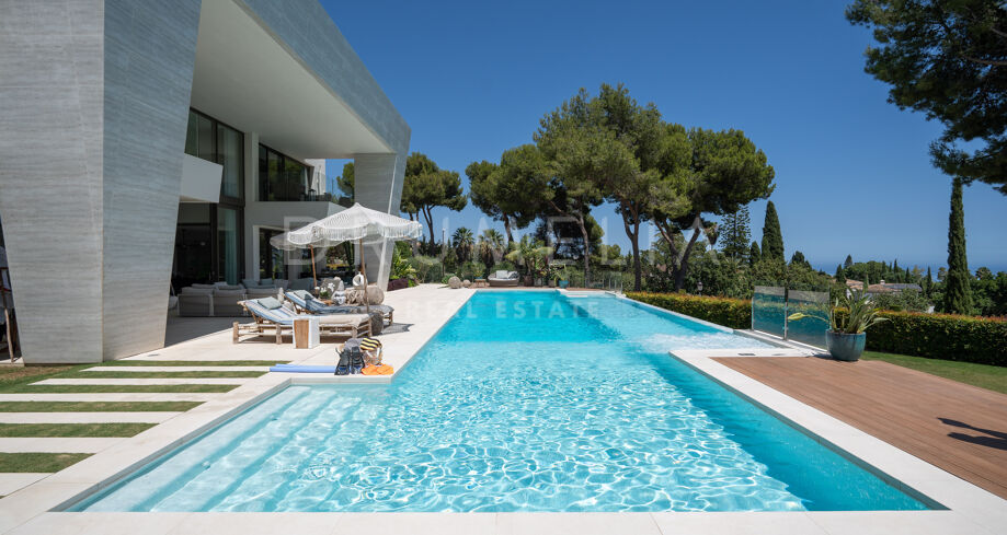 Velkommen til denne moderne villaen i Sierra Blanca, Marbella. Fra øyeblikket du ankommer, vil du bli imponert. Med en åpen planløsning inne og ute, imponerende moderne arkitektur og et dramatisk basseng skiller denne villaen seg ut med sin egen unike stil. En blanding av minimalistisk og moderne uttrykk, satt mot den perfekte bakgrunnen – det vakre La Concha-fjellet.