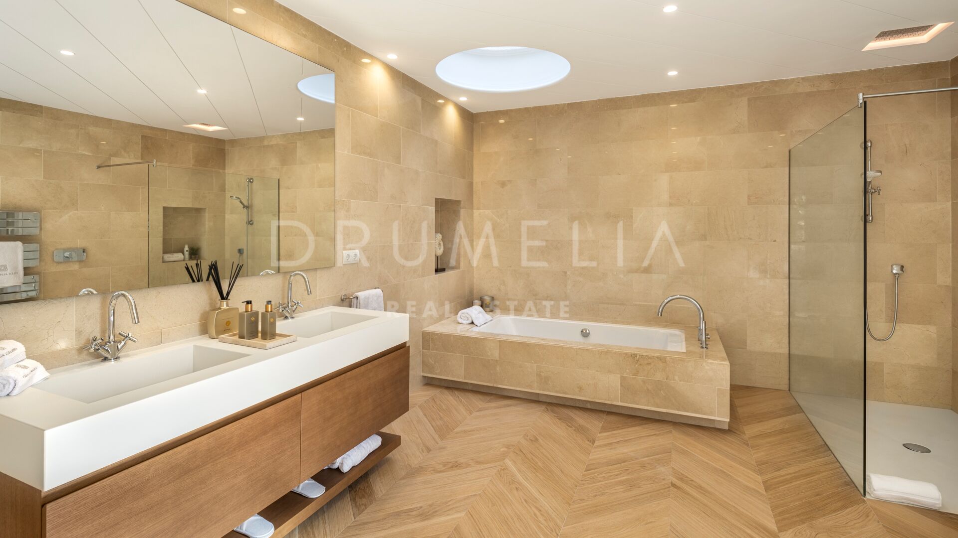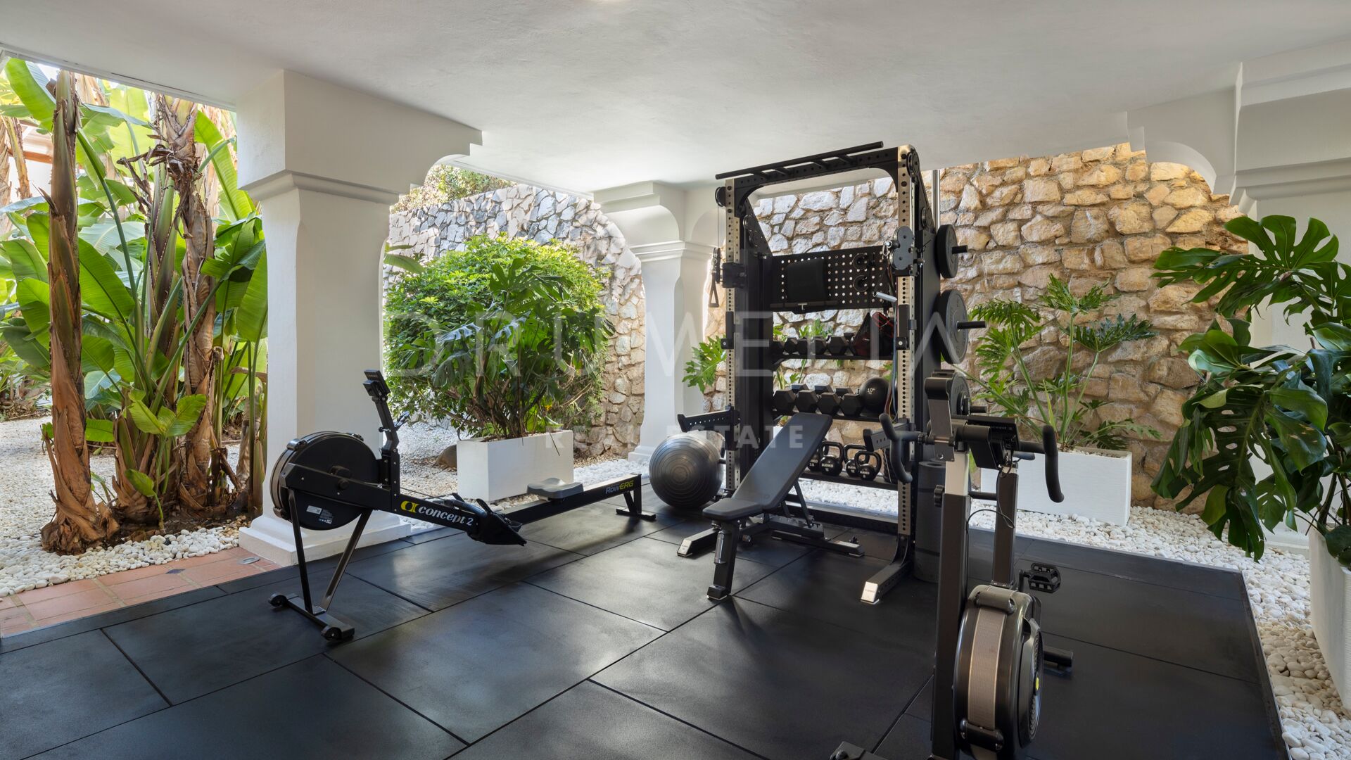 De buitenruimtes van het pand zijn ontworpen voor ontspanning en entertainment, met voorzieningen als een barbecueplaats, een fitnessruimte in de buitenlucht en een zorgvuldig aangelegde tuin. Het pand wordt omringd door een onberispelijke tuin en biedt een ideale omgeving om buiten te eten en te zwemmen. De locatie in Nueva Andalucia is perfect voor wie op zoek is naar een luxueuze levensstijl, met de nabijheid van voorzieningen, golfbanen, Puerto Banus en Marbella Golden Mile.