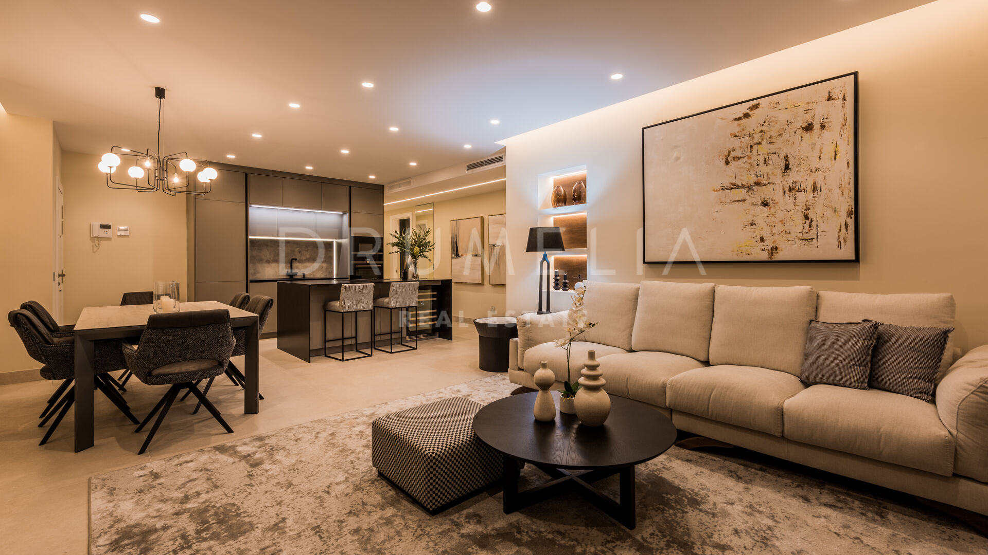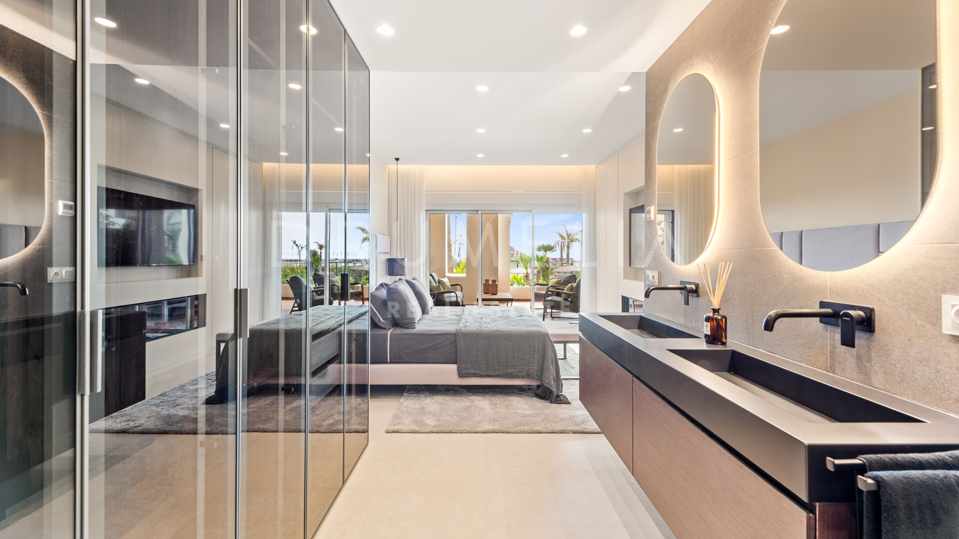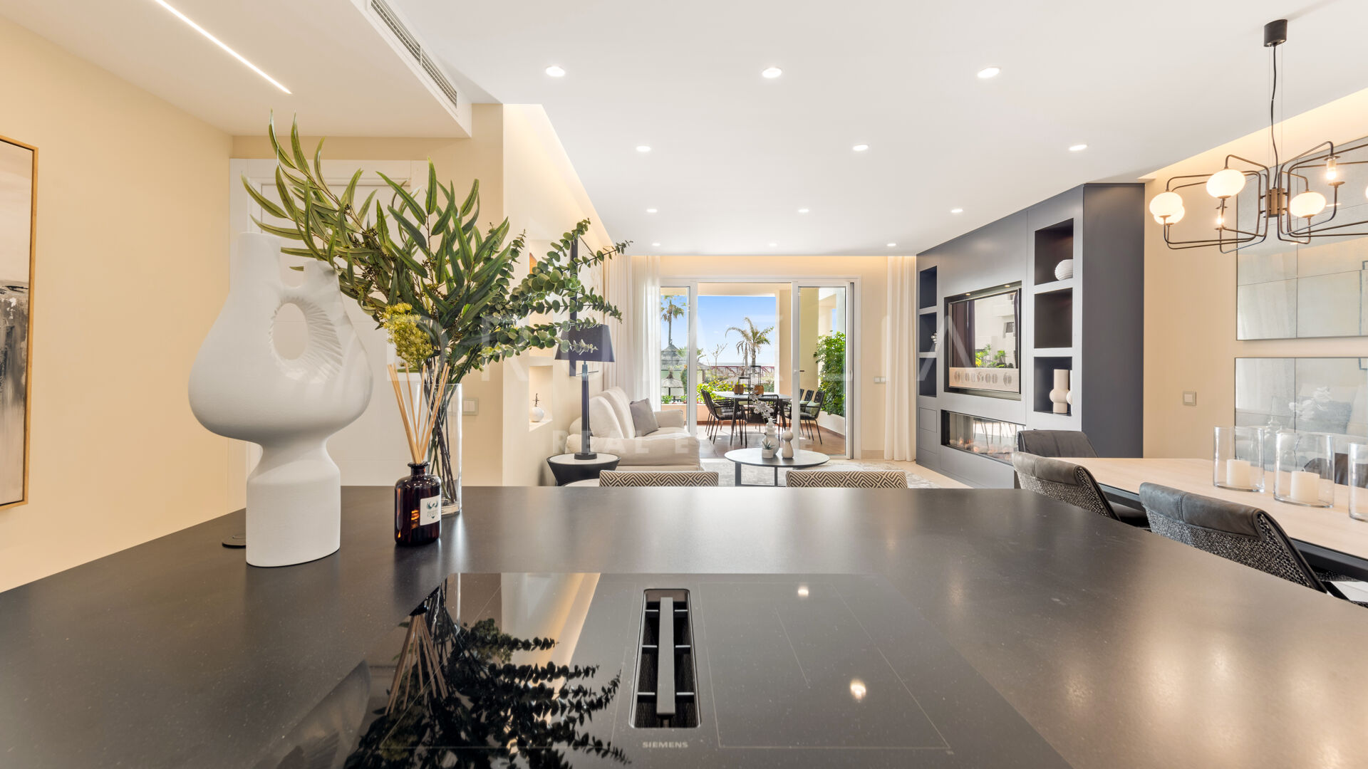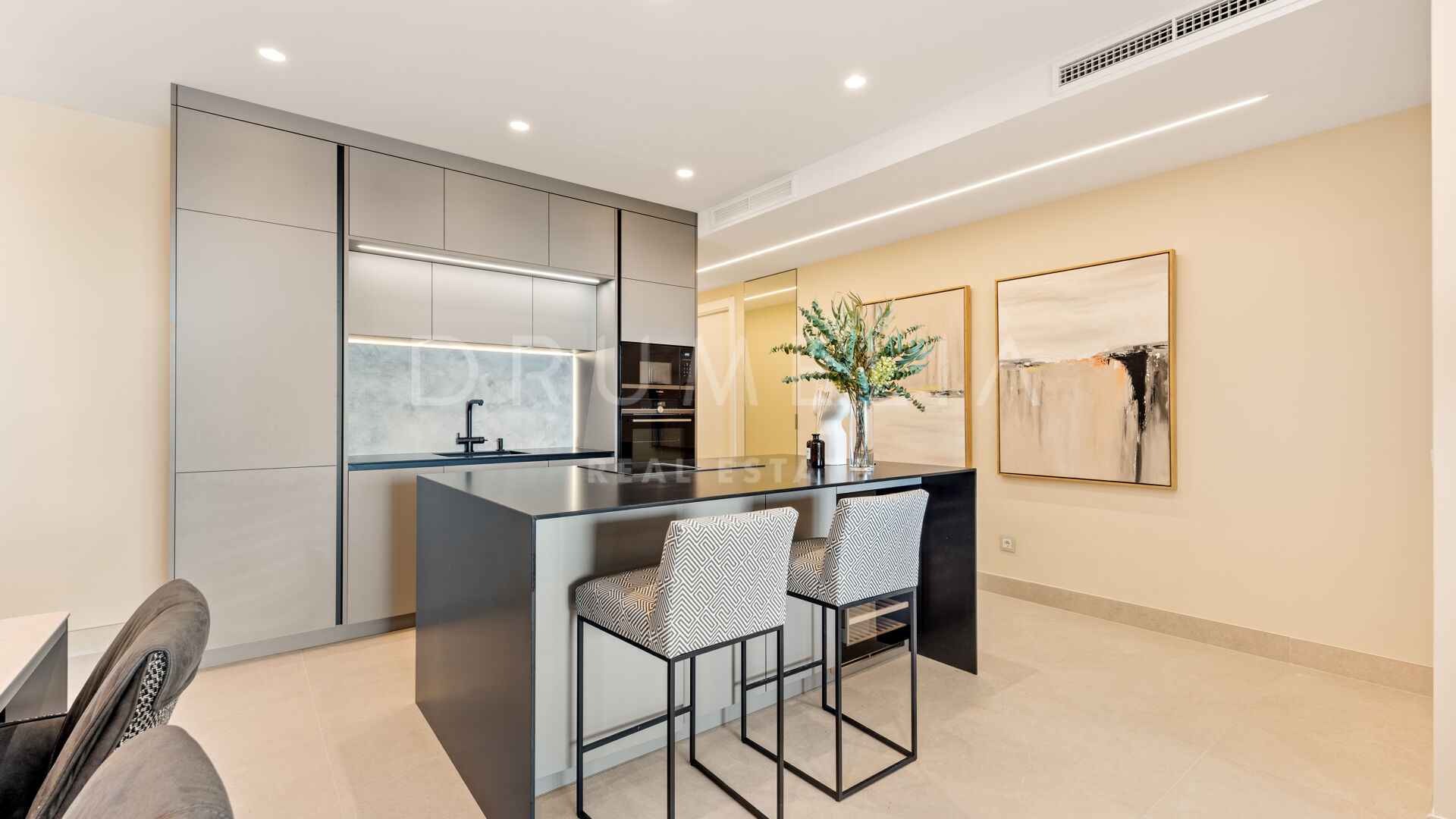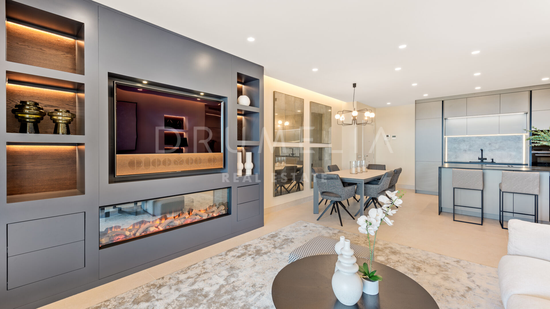 Het fantastische appartement is te koop in uitstekende staat en beloont de eigenaren met zijn comfort, functionaliteit en elegantie. Het beschikt over vele op maat gemaakte details en is volledig uitgerust met de beste technologie, zoals een B&O geluidssysteem, een Miele wasmachine, energiezuinige LED-verlichting, een geïntegreerde infinity open haard en de nieuwste Neff keukenapparatuur. Het profiteert ook van een luxe vrijstaand bad, inbouwkasten, elektrische rolluiken, glazen deuren, glazen wanden en veel spiegels. Het hedendaagse ontwerp van deze woning combineert natuurlijke elementen en neutrale edele kleuren, en beschikt over eenvoudige maar elegante stukken en high-end meubels die zorgvuldig zijn geselecteerd door een professionele binnenhuisarchitect. Elke ruimte van dit appartement ziet er modern en voortreffelijk uit.