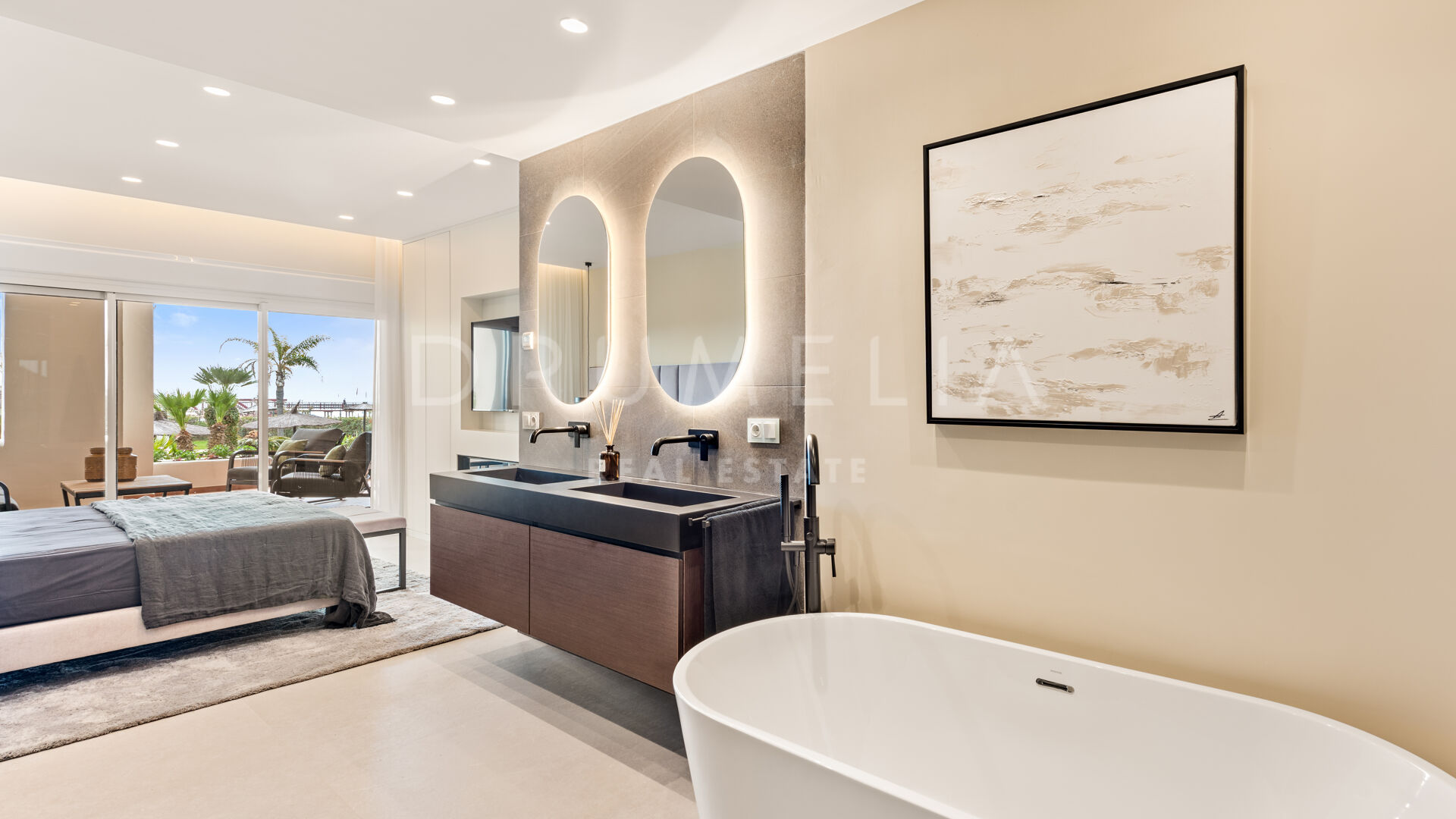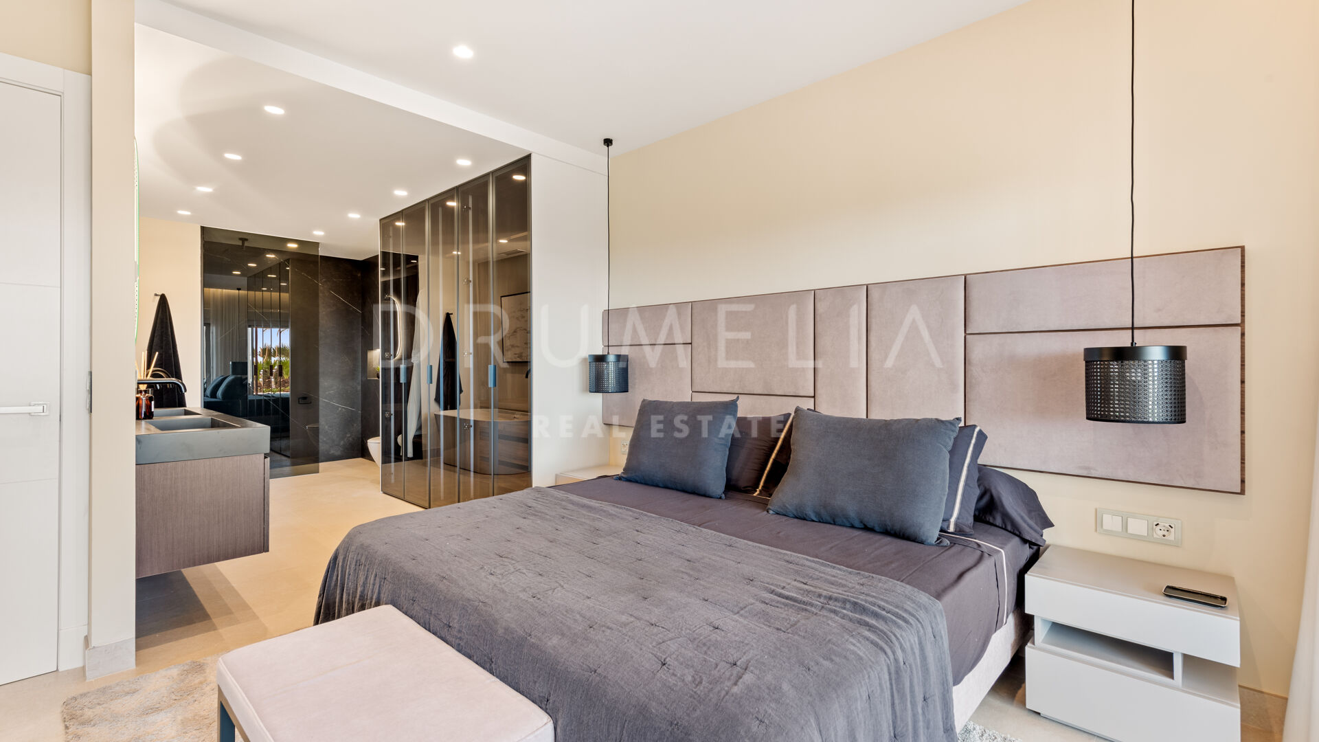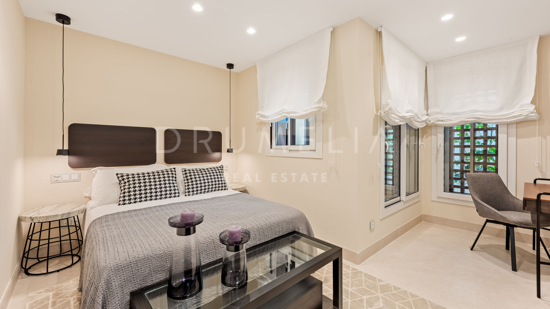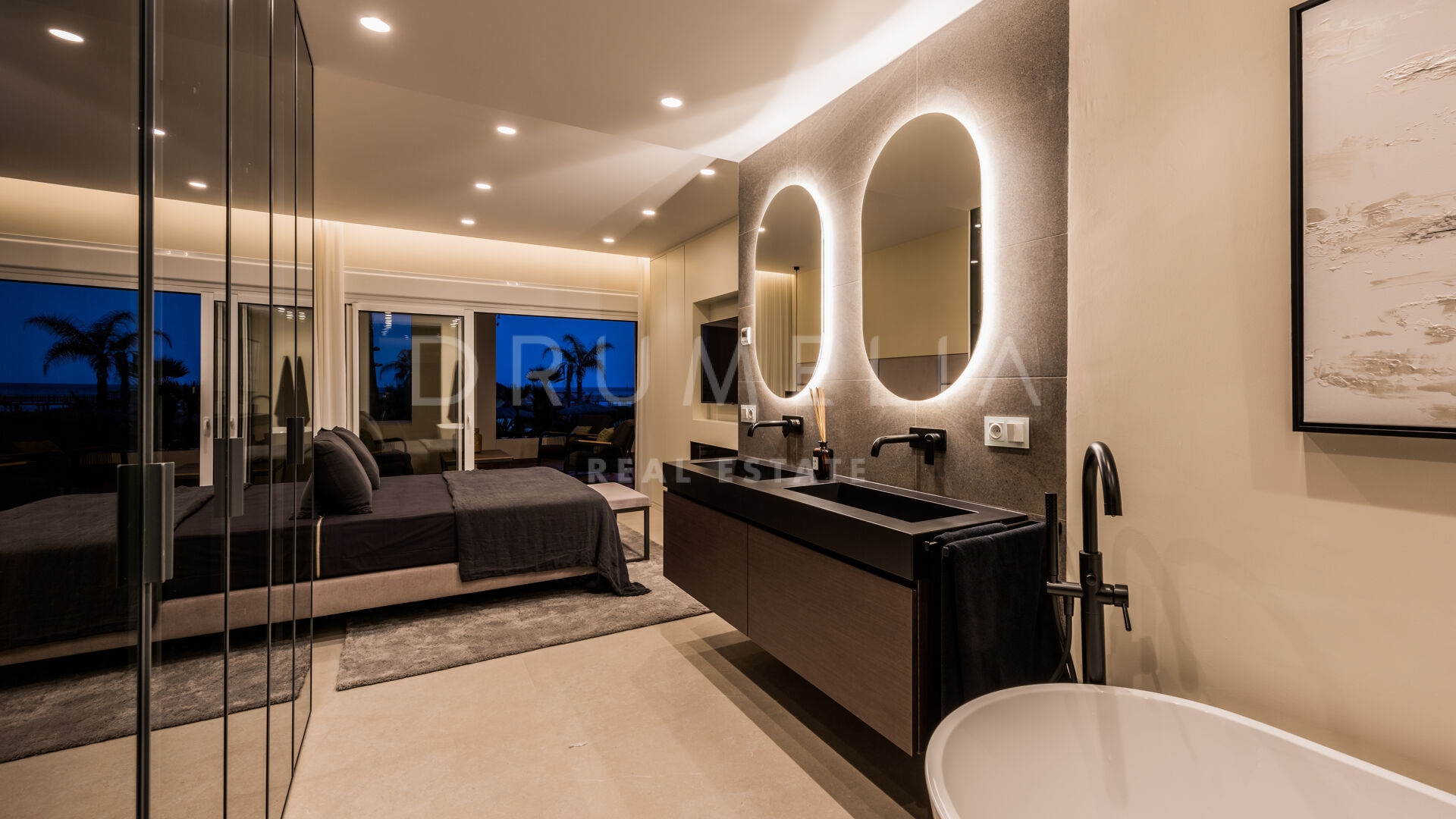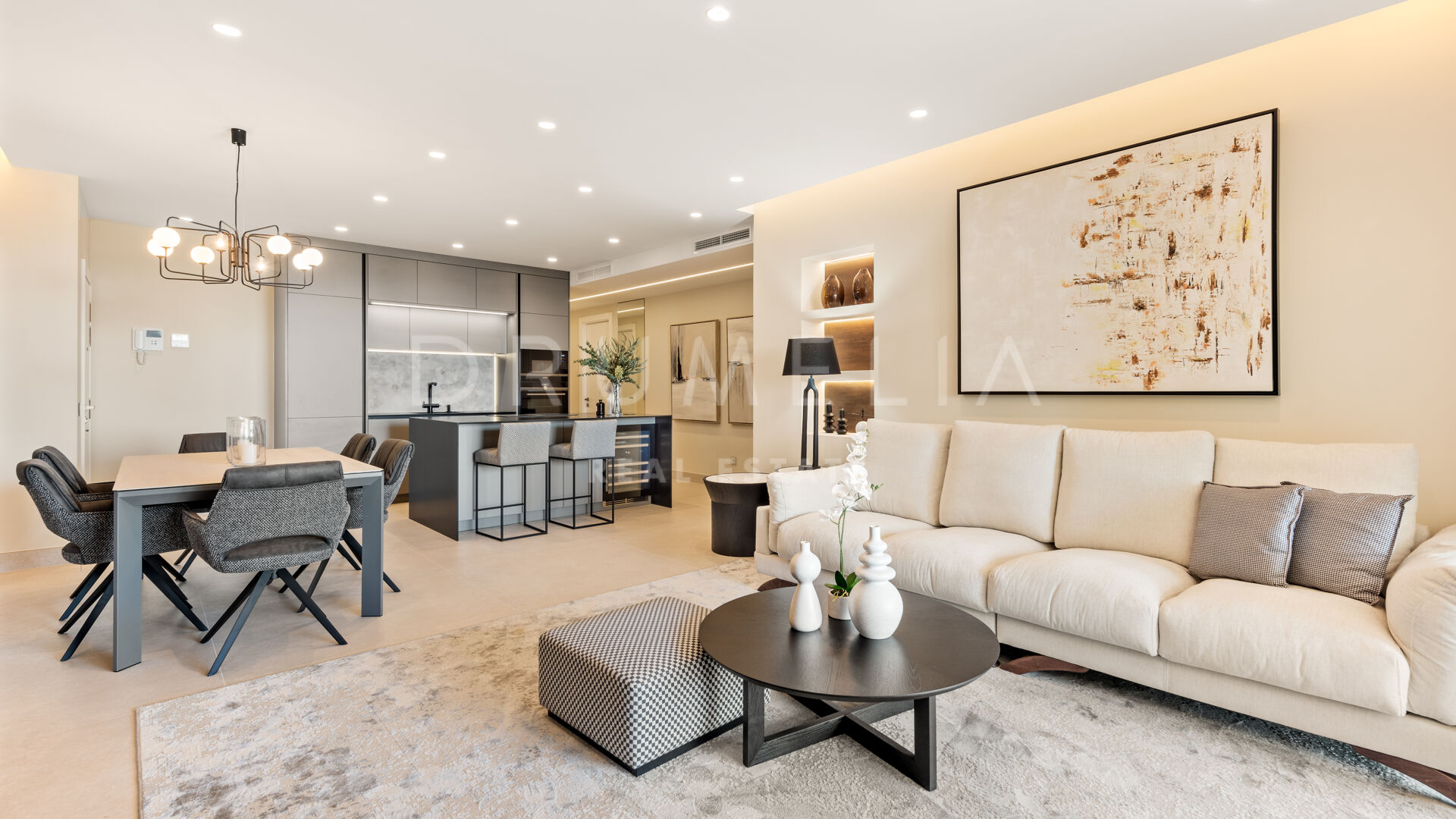 Het fantastische appartement is te koop in uitstekende staat en beloont de eigenaren met zijn comfort, functionaliteit en elegantie. Het beschikt over vele op maat gemaakte details en is volledig uitgerust met de beste technologie, zoals een B&O geluidssysteem, een Miele wasmachine, energiezuinige LED-verlichting, een geïntegreerde infinity open haard en de nieuwste Neff keukenapparatuur. Het profiteert ook van een luxe vrijstaand bad, inbouwkasten, elektrische rolluiken, glazen deuren, glazen wanden en veel spiegels. Het hedendaagse ontwerp van deze woning combineert natuurlijke elementen en neutrale edele kleuren, en beschikt over eenvoudige maar elegante stukken en high-end meubels die zorgvuldig zijn geselecteerd door een professionele binnenhuisarchitect. Elke ruimte van dit appartement ziet er modern en voortreffelijk uit.