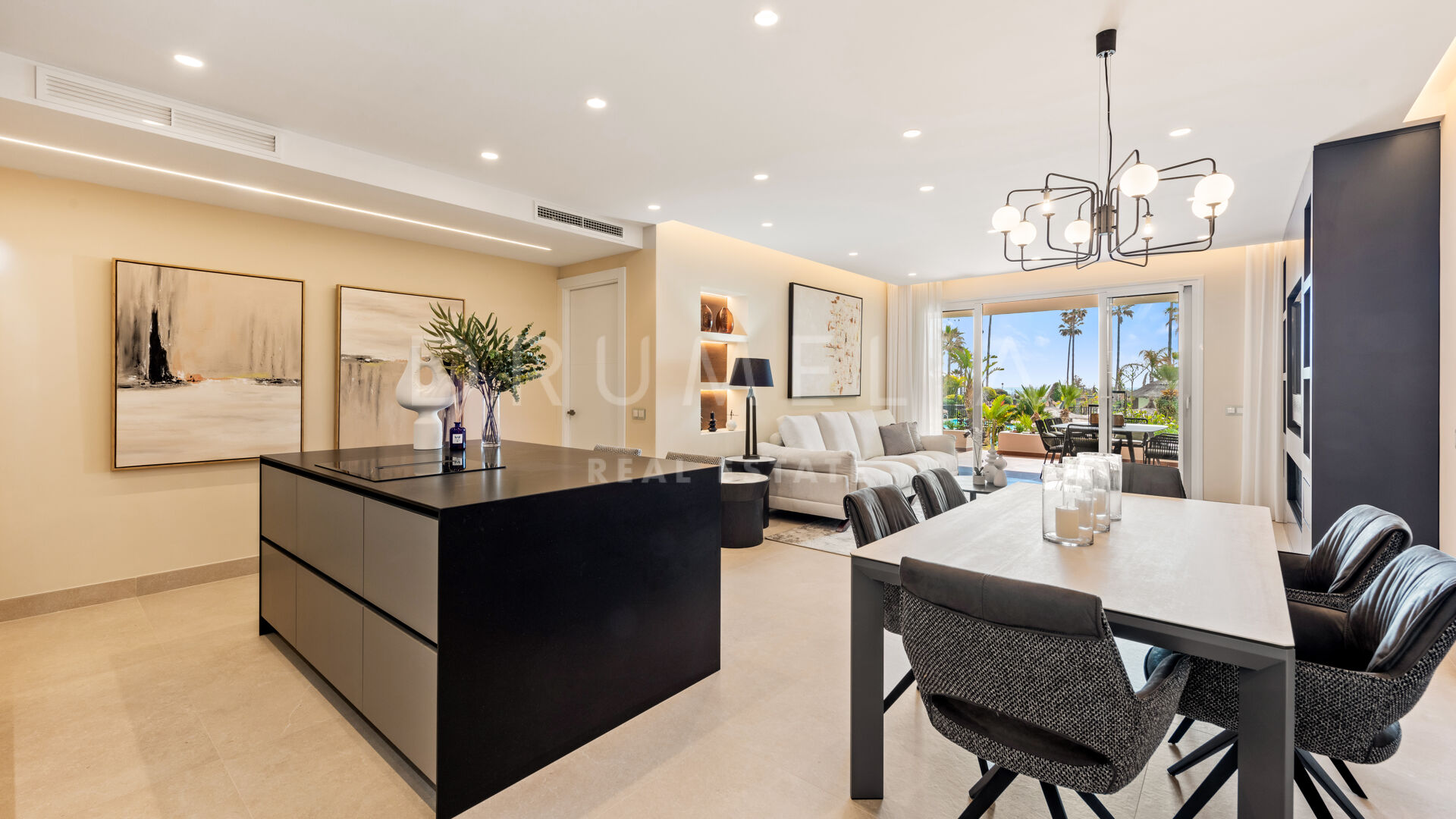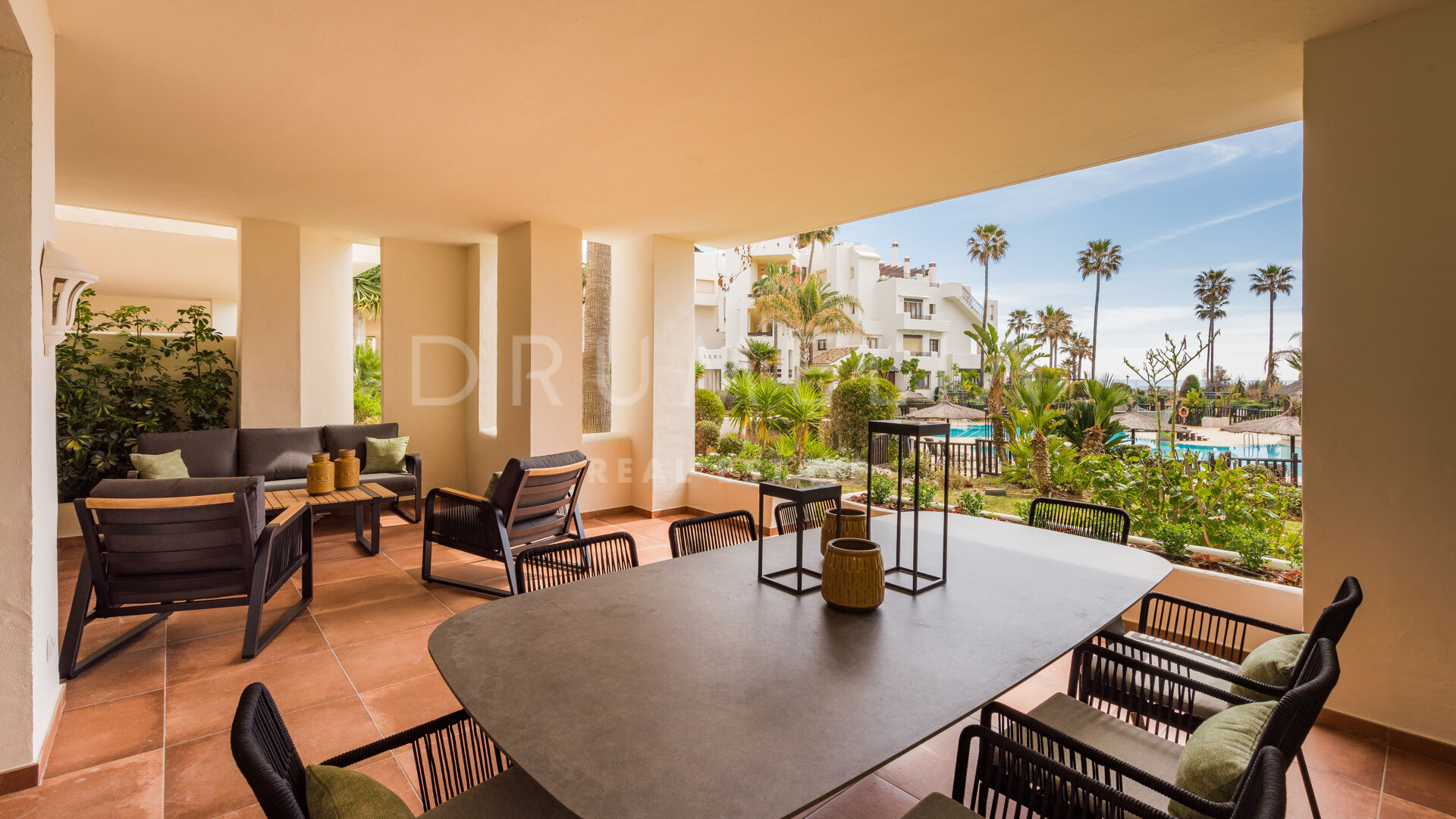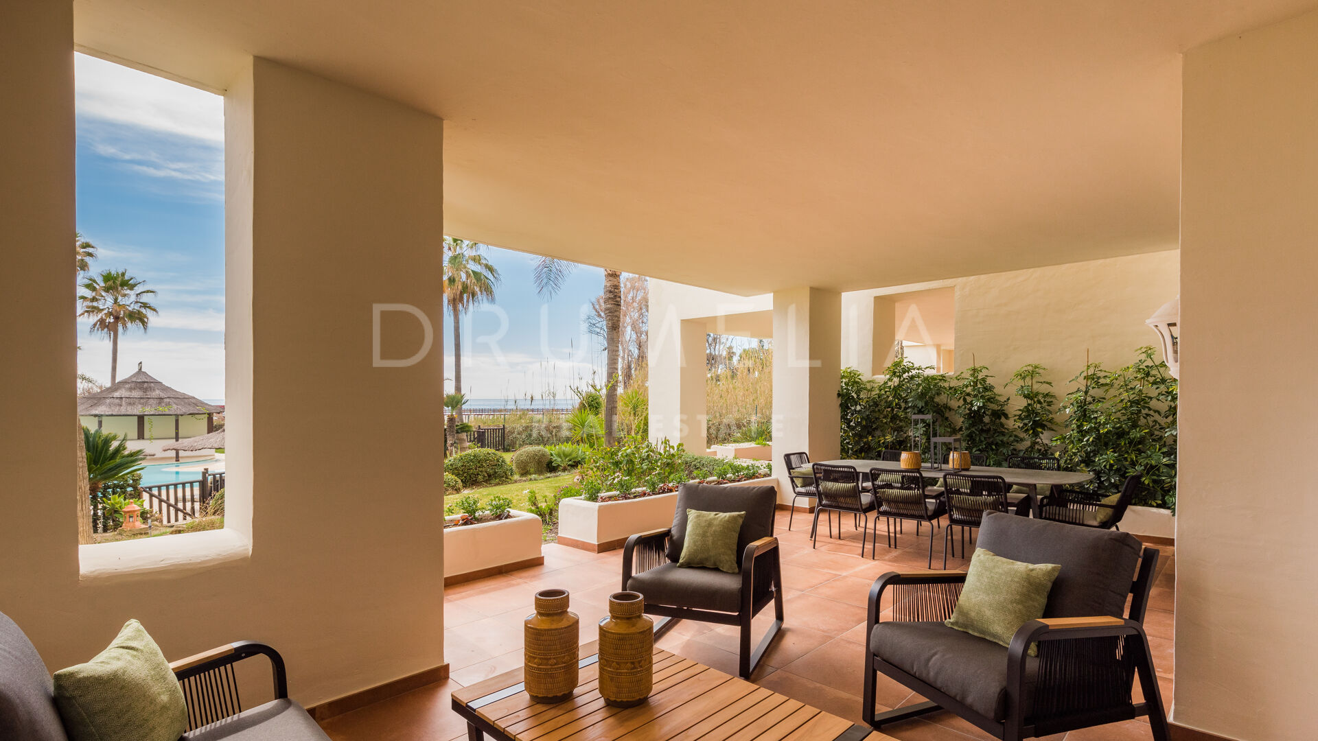 Onlangs volledig gerenoveerd en prachtig gepresenteerd, biedt de zuid/oost woning van 122 m² een open ruime en elegante woonruimte die een salon, een eethoek en een volledig ingerichte strakke keuken combineert; 3 serene slaapkamers; 2 moderne badkamers met vloerverwarming en 1 gastentoilet. Het prachtige terras van 41 m² met een lounge en al fresco eethoek is ideaal om het prachtige uitzicht op de tropische tuinen en de zee te bewonderen, en te genieten van de wereldberoemde mediterrane levensstijl. 1 ondergrondse parkeerplaats en een extra berging in de kelder zijn bij de prijs inbegrepen.