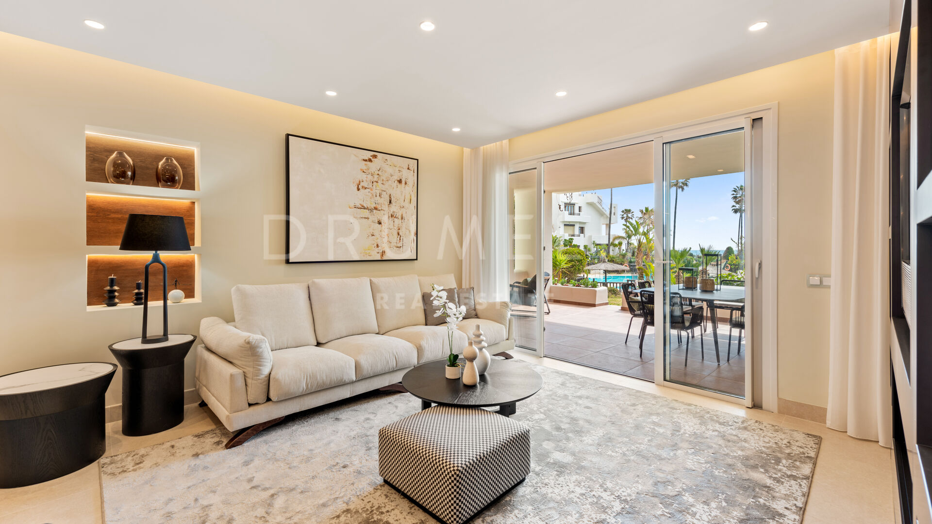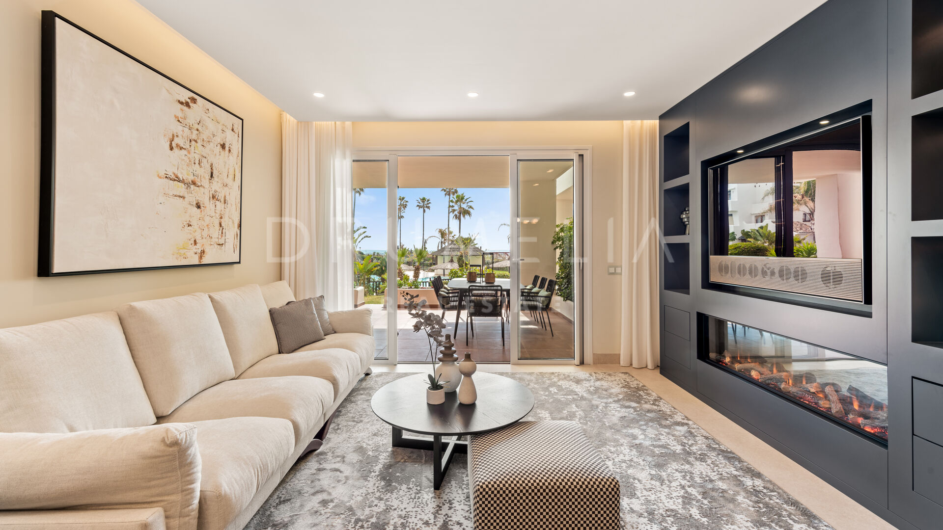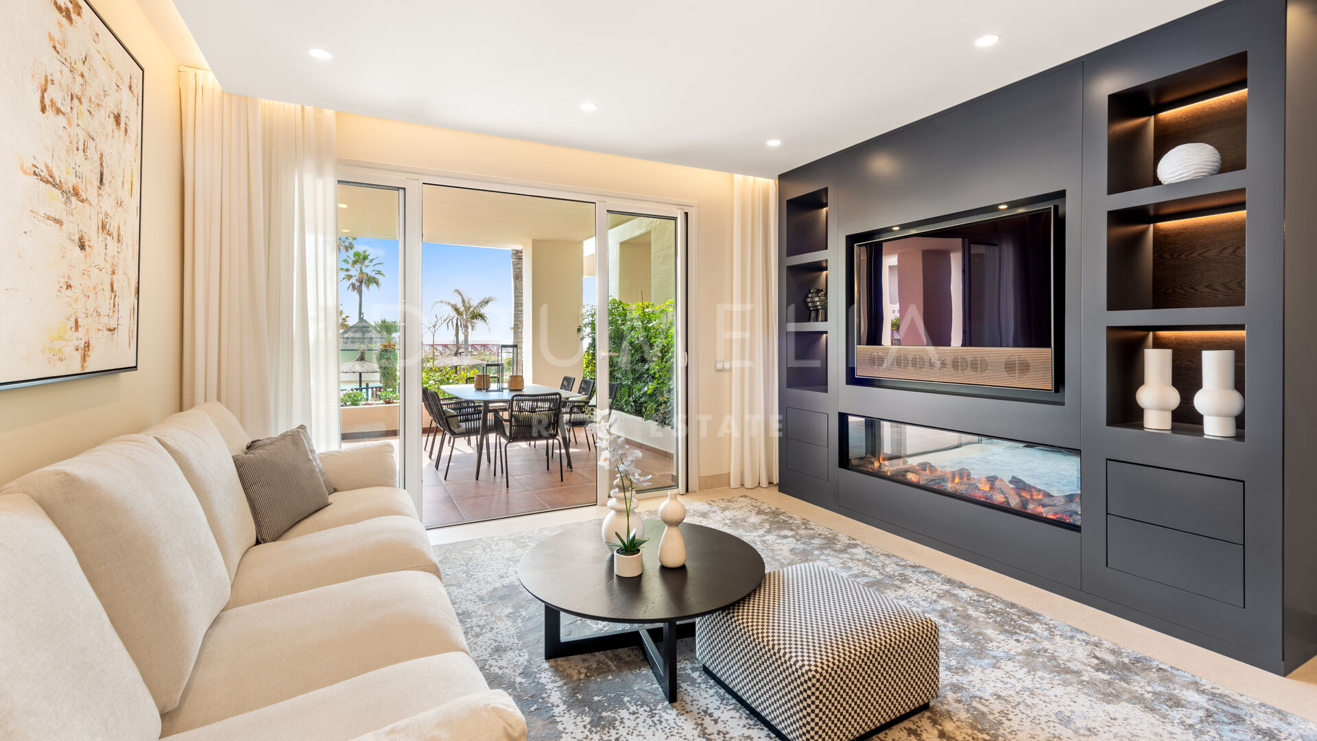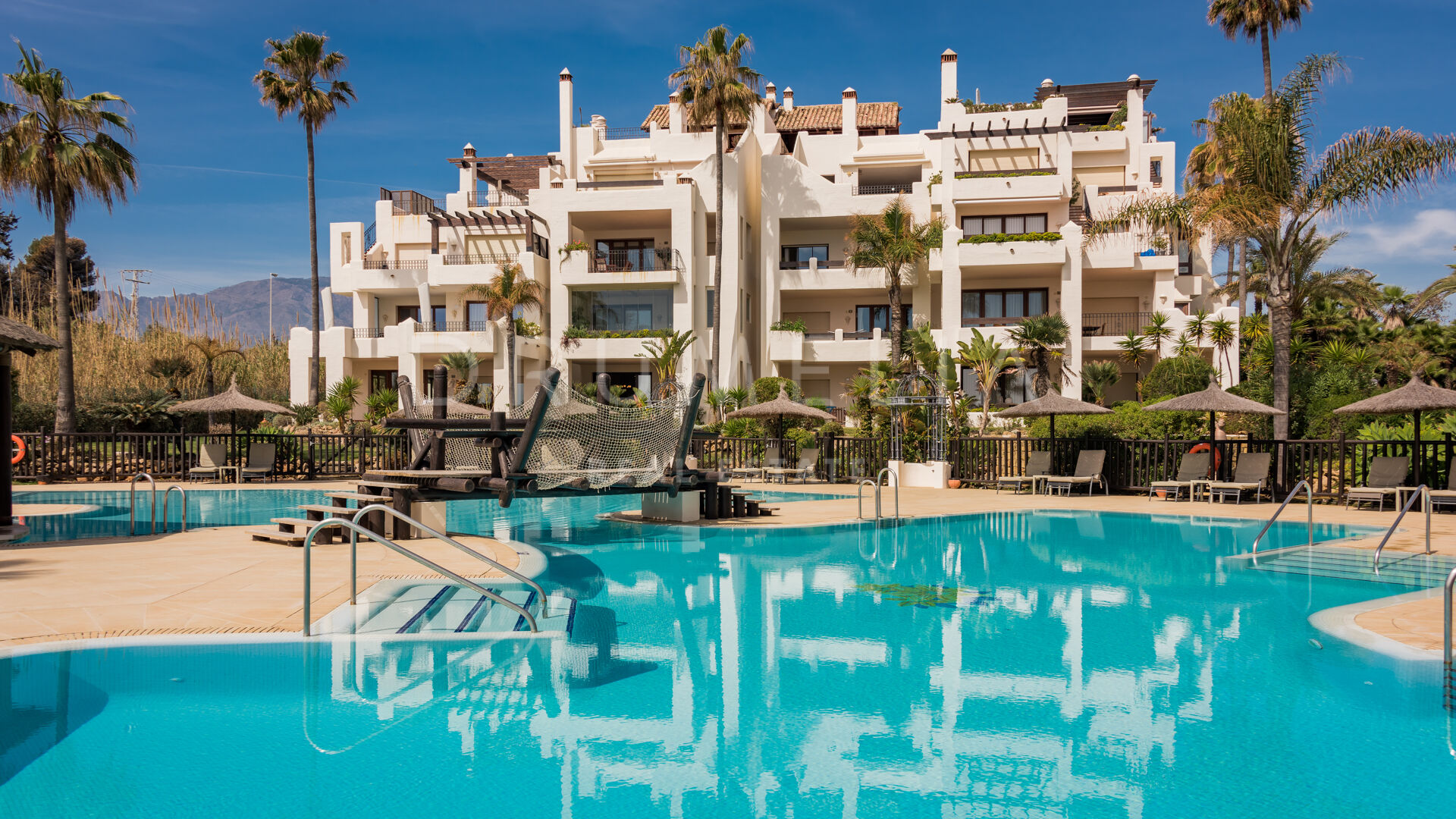 Dit gelijkvloerse appartement met 3 slaapkamers wordt te koop aangeboden in de prestigieuze en perfect onderhouden urbanisatie Bahía del Velerín, Estepona. De luxueuze eerstelijns strandgemeenschap ligt aan een van de mooiste stranden van de New Golden Mile, tussen Marbella en Estepona. Je woont in een veilig en rustig resortcomplex aan het strand met weelderig aangelegde tuinen met waterpartijen en geweldige faciliteiten, waaronder 2 buitenzwembaden, een fantastisch zwembadgedeelte met een snackbar. De afgesloten urbanisatie van hoge kwaliteit heeft een 24-uurs bewakingsdienst en toegangscontrole. Omringd door soortgelijke aantrekkelijke woningen en alle voorzieningen van de New Golden Mile, ligt het op loopafstand van diverse goede restaurants en heeft het directe toegang tot het nieuw aangelegde kustpad en de zee. Binnen enkele minuten kun je genieten van de golfbanen, tennisclubs, manege, safaripark en andere recreatiemogelijkheden, evenals van de voorzieningen van verschillende 5-sterrenhotels aan de New Golden Mile. Het centrum van Estepona, Puerto Banús en Marbella liggen ook op korte rijafstand.