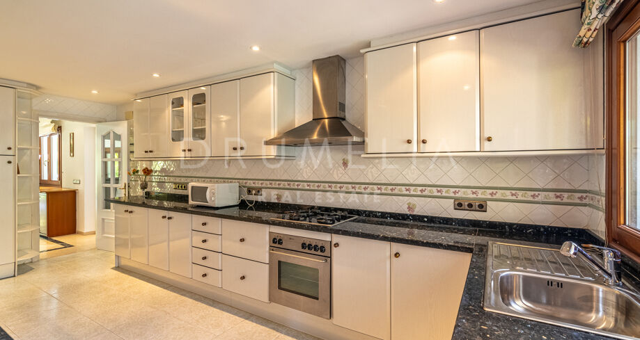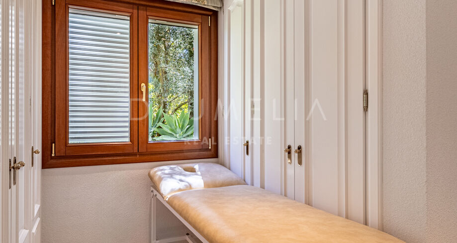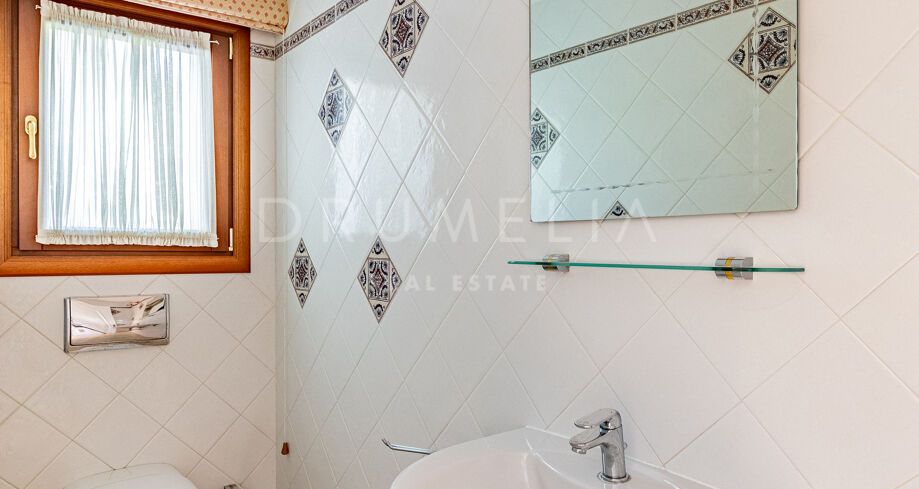 De tuin vormt een heerlijk toevluchtsoord met volgroeide beplanting, brede terrassen en een privézwembad dat het middelpunt van het buitenleven vormt. Dit is een plek waar men in alle privacy kan ontspannen, genieten van zonnige dagen of gezellige momenten kan delen met familie en vrienden. Hoewel de villa direct bewoonbaar is, biedt zij ook uitstekende mogelijkheden om te moderniseren en verder te personaliseren.