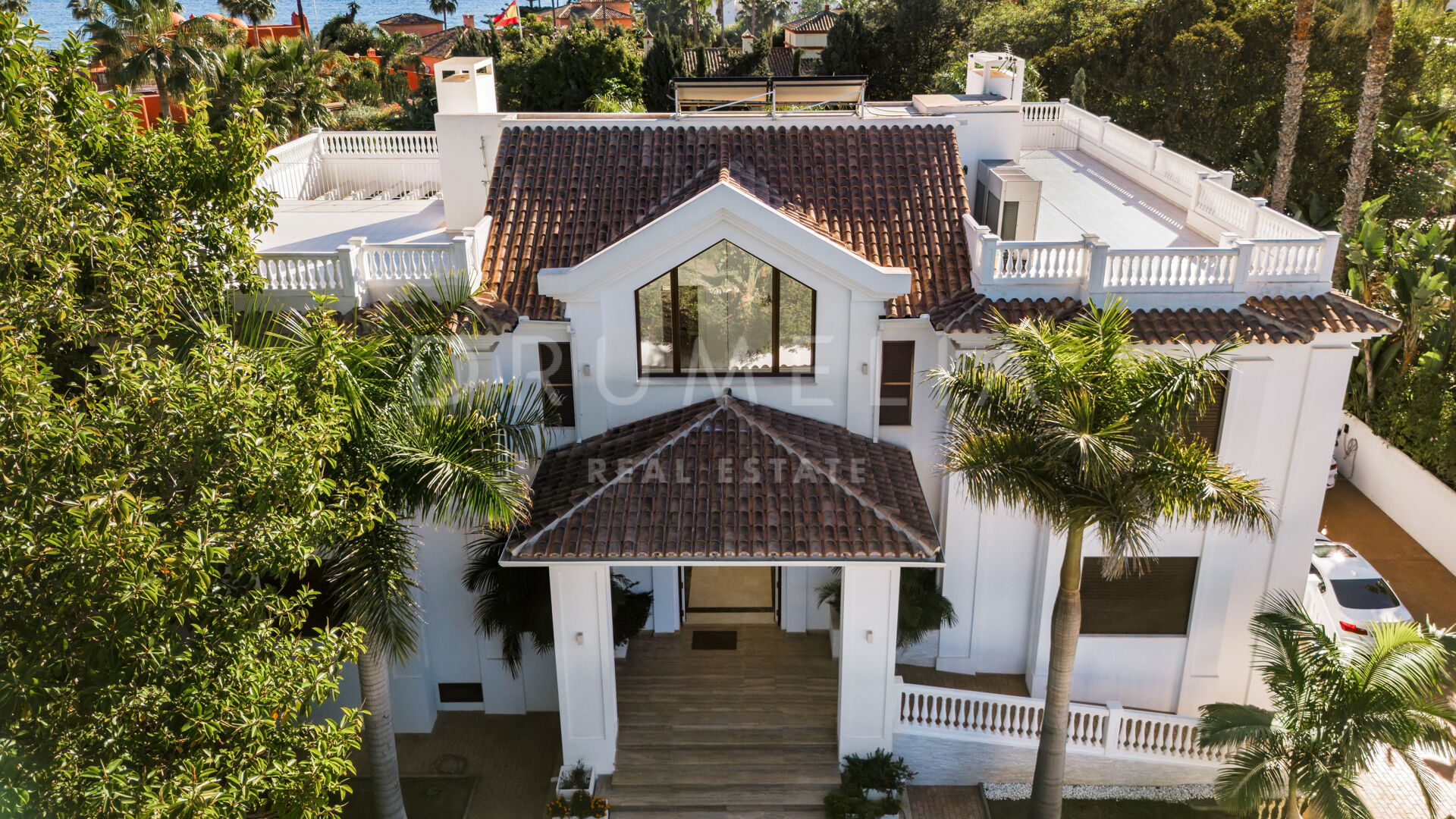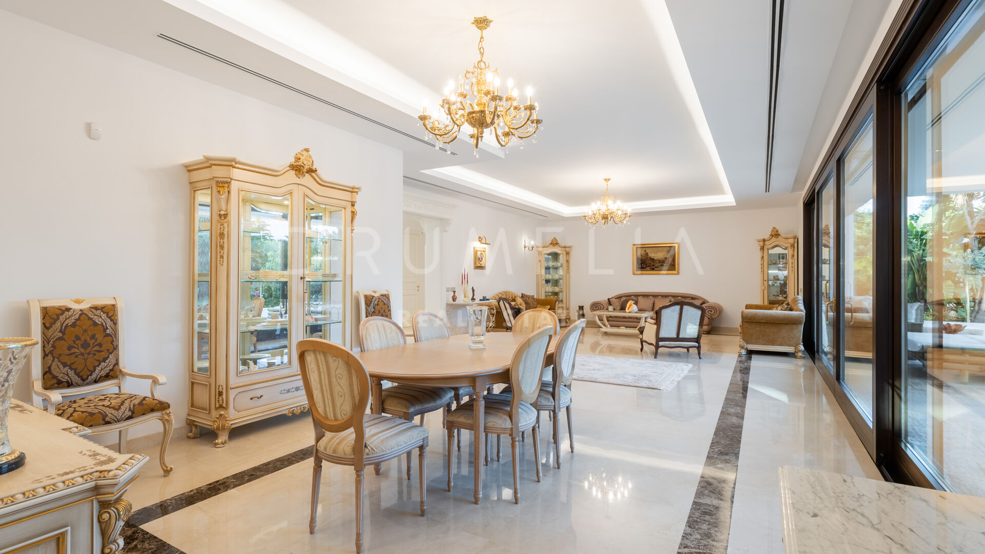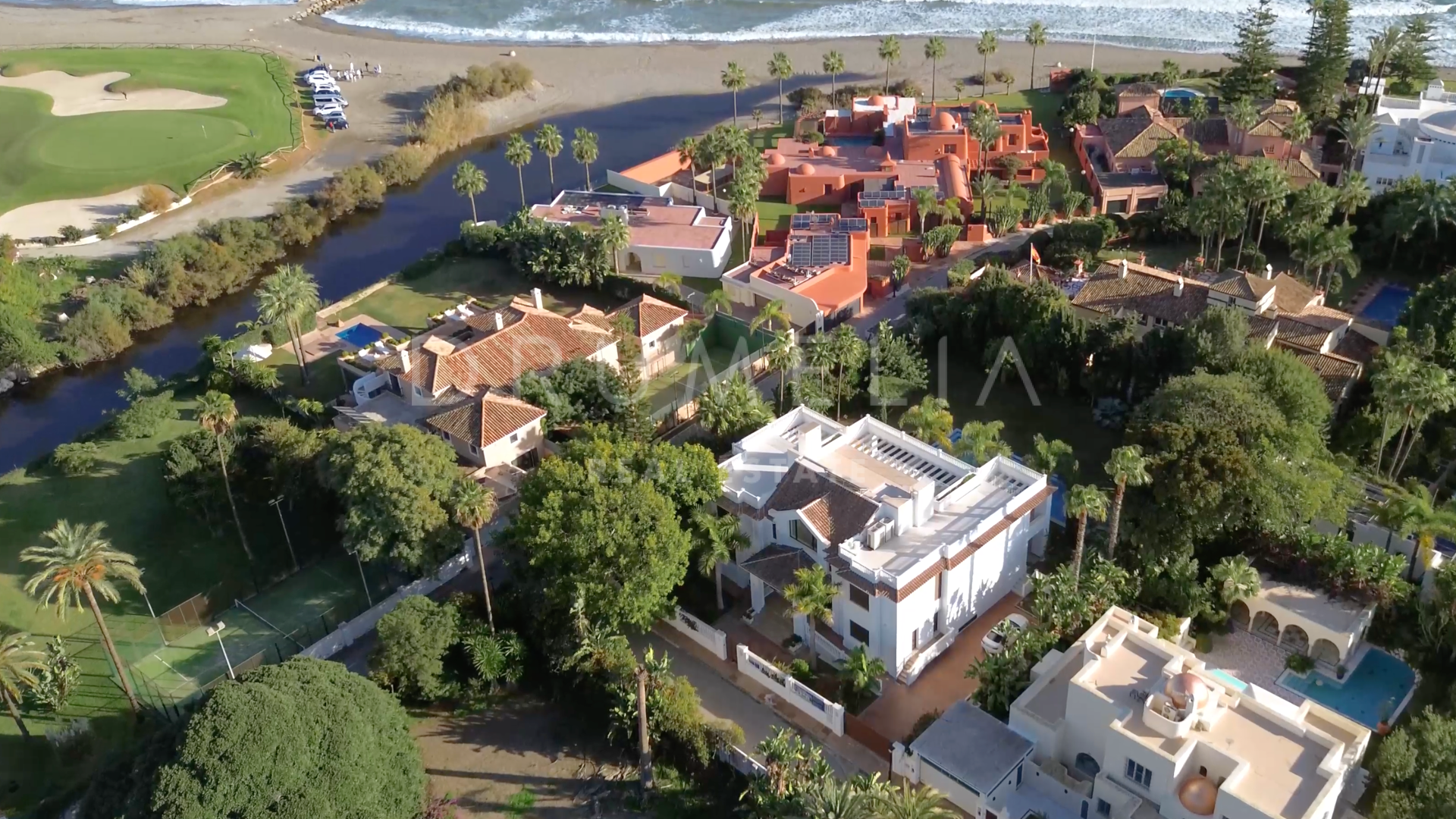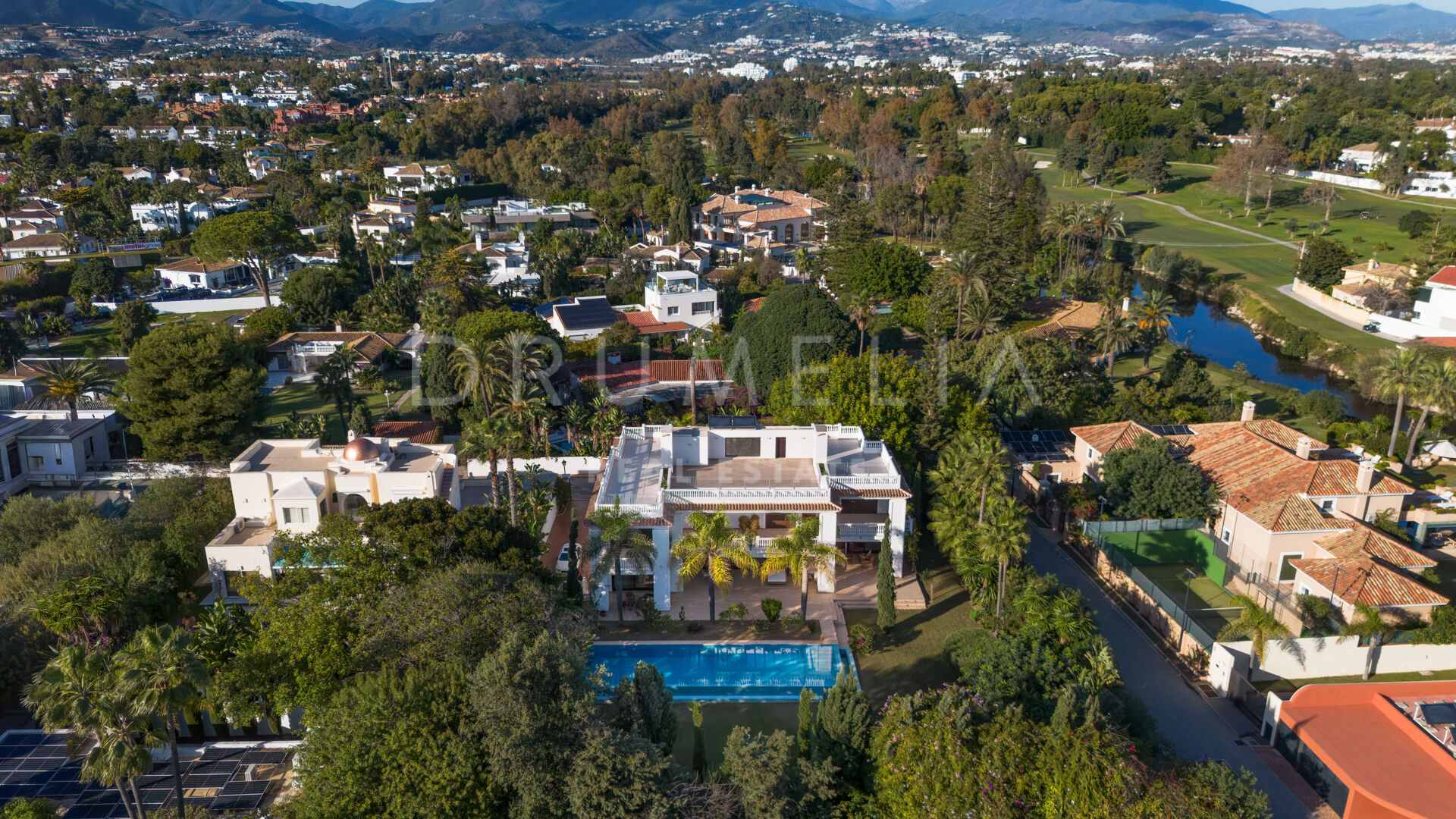 Binnen beschikt de villa over zeven ruime slaapkamers en tien badkamers, aangevuld met stijlvolle woon- en eetkamers, een kantoor en flexibele ruimtes voor modern gebruik. De nabijheid van golfbanen, internationale scholen, winkels en Marbella maakt dit een tijdloze luxe woning aan de Costa del Sol.