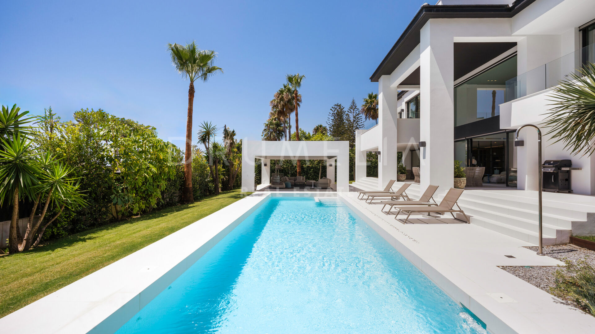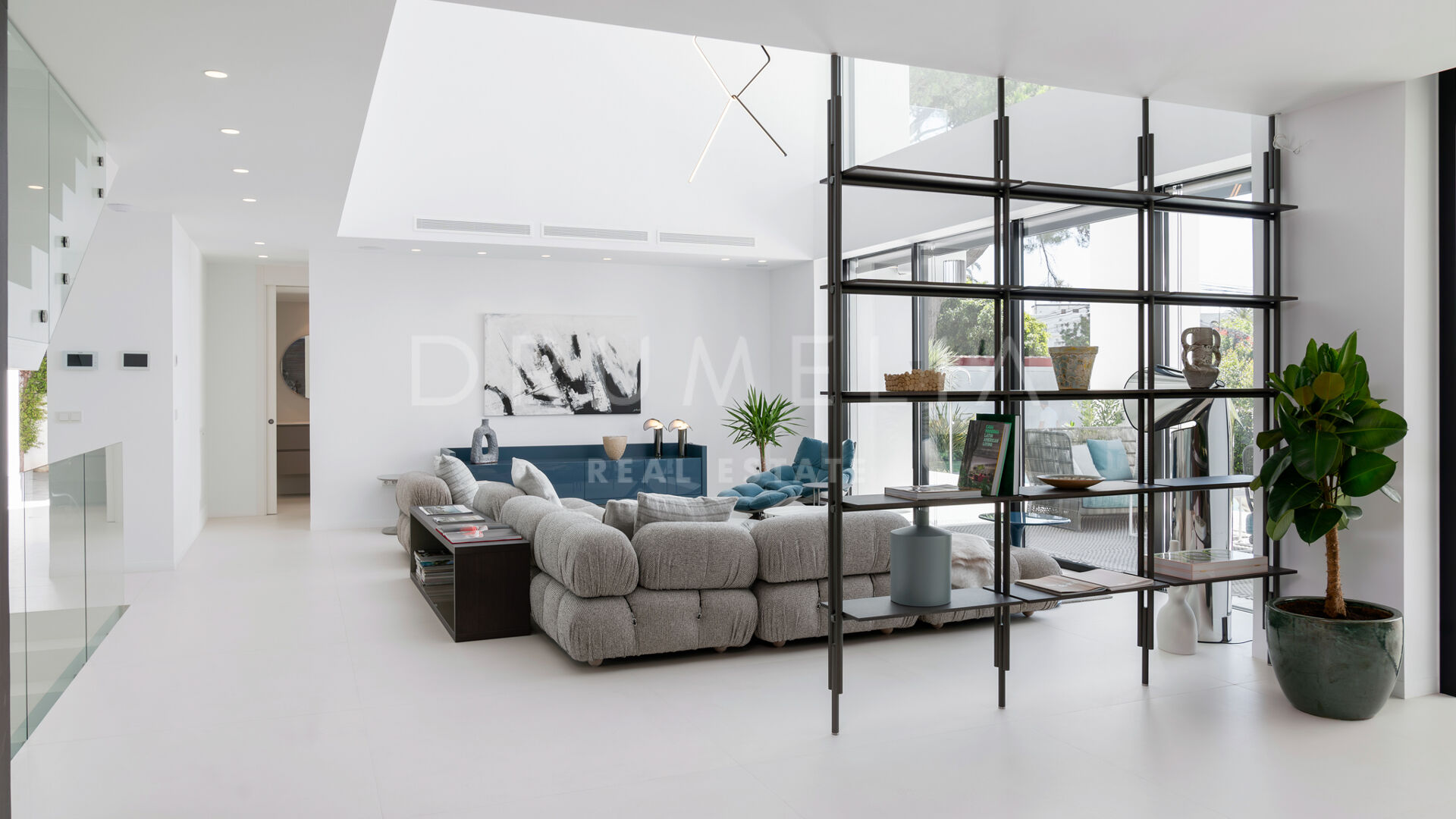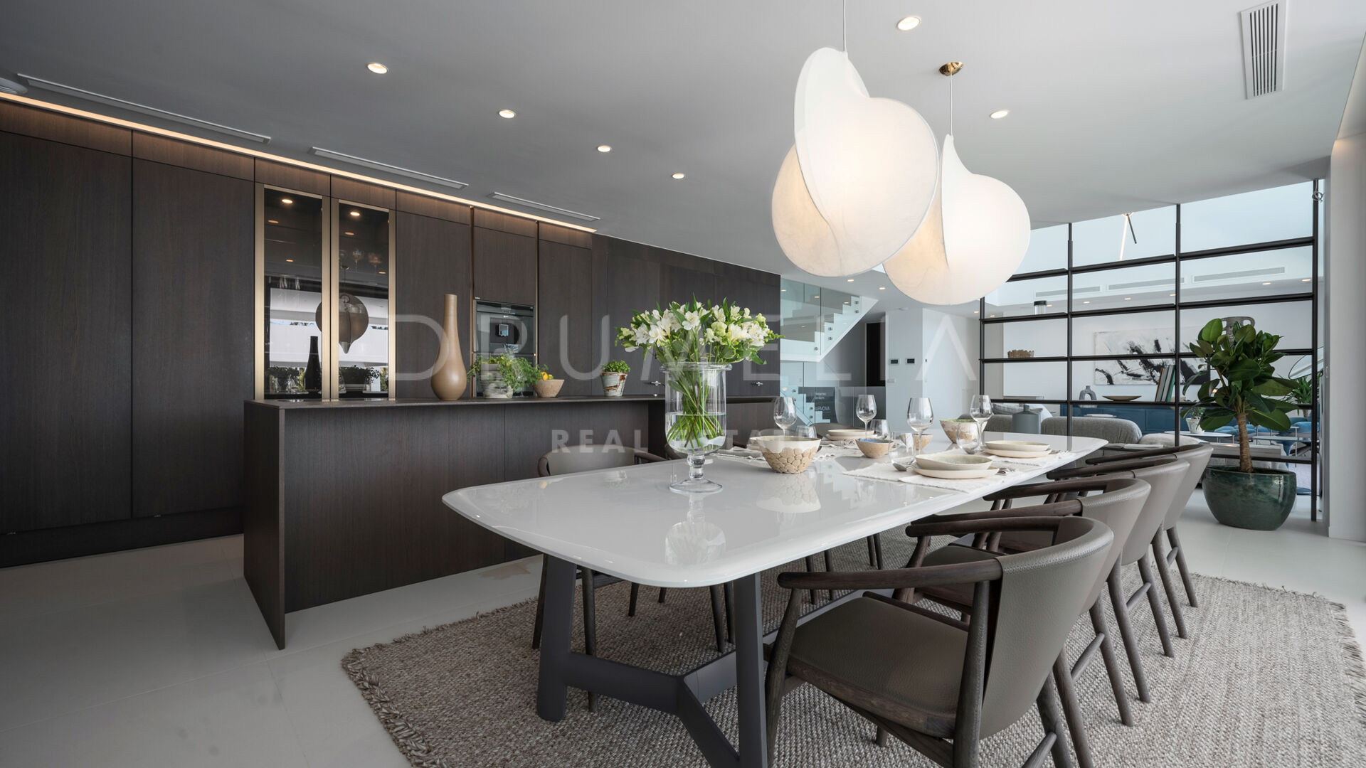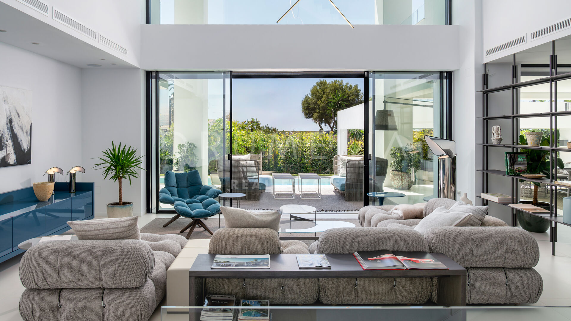 Dit huis van 445 m² met een terras van 283 m² ligt op een privéterrein van 1.000 m² en wordt omringd door prachtige landschappen en soortgelijke huizen in San Pedro. De oase aan het strand biedt een werkelijk betoverende omgeving en biedt adembenemende uitzichten op de zee en de bergen, evenals een sereen uitzicht over de groene tuin. Het pand is gemaakt voor het meest luxueuze leven en biedt een harmonieuze mix van eigentijds design en voortreffelijk vakmanschap. Het is verdeeld over 4 verdiepingen en heeft een onberispelijke verdeling, met een terras op de begane grond en een dakterras boven, beide perfect om te genieten van panoramische vergezichten en het beste klimaat van Europa. De woning beschikt over 6 slaapkamers en 6 badkamers, een open keuken met een eiland, woon- en eetgedeeltes, die naadloos toegang bieden tot de terrassen om te genieten van de fantastische binnen-buiten mediterrane levensstijl. De spectaculaire dubbelhoge woonkamer is een pronkstuk van elegantie. Het meubilair en de verlichting voegen een vleugje verfijning toe.