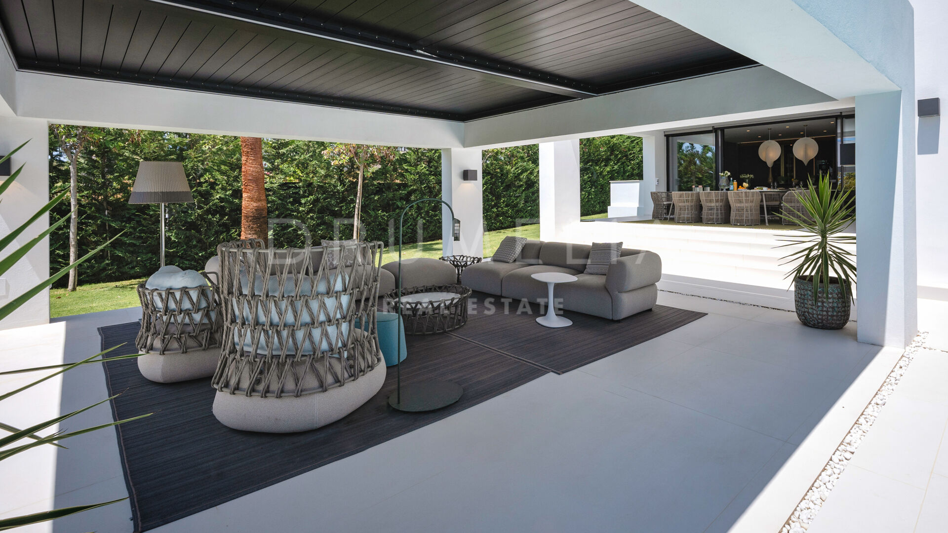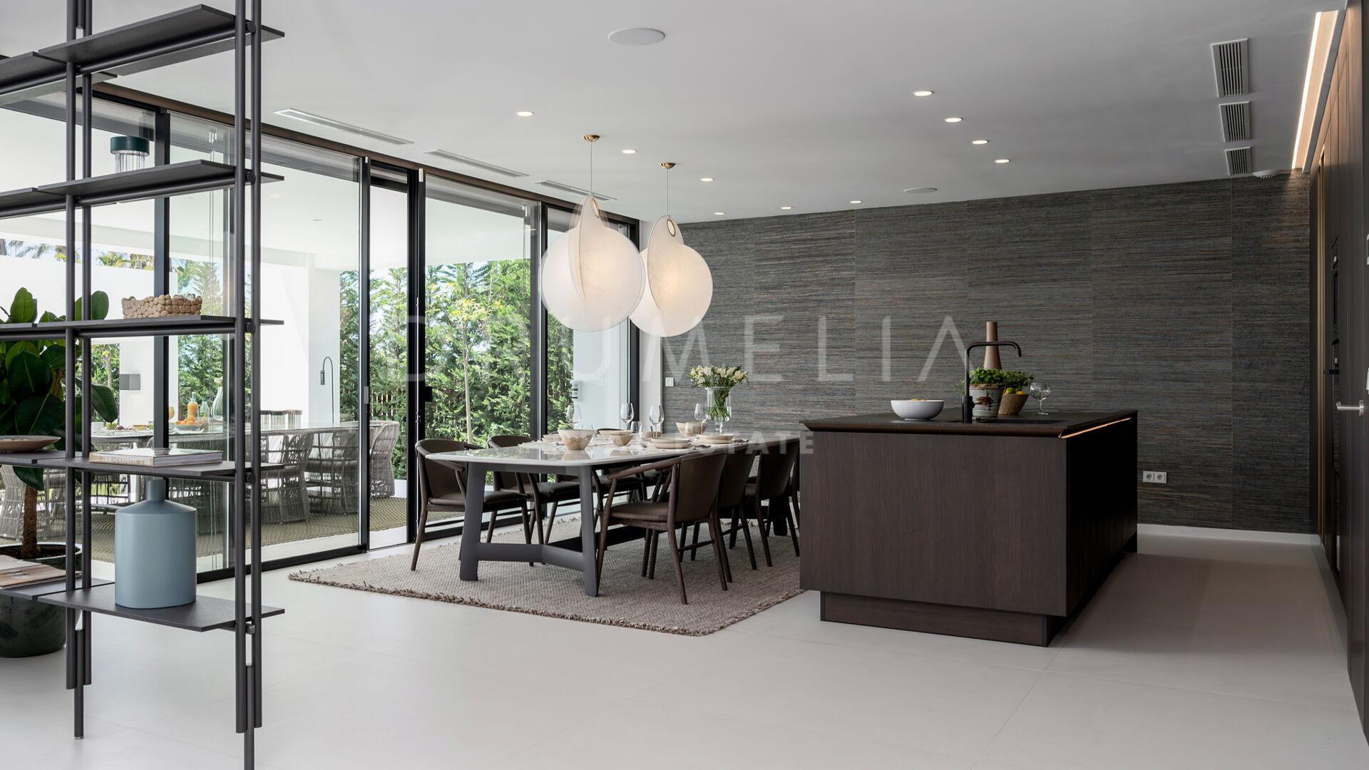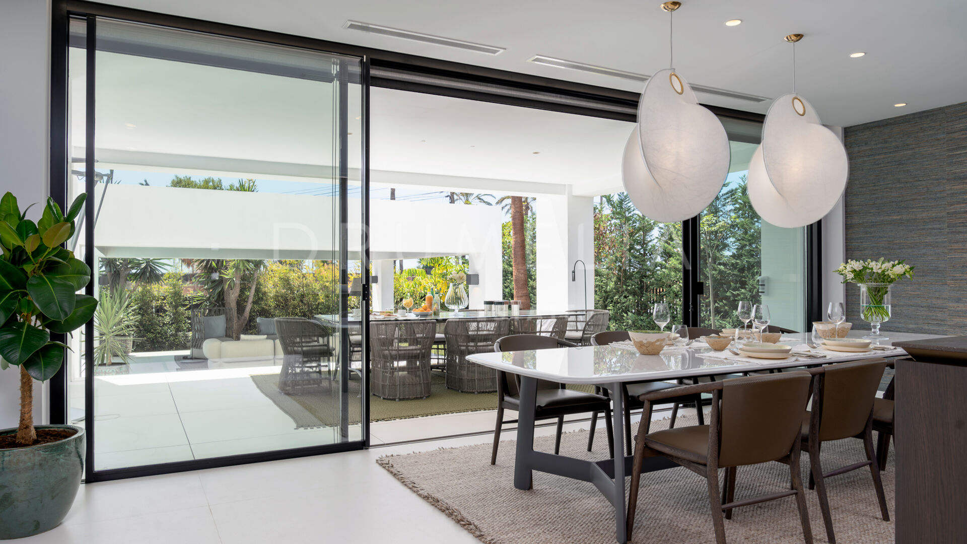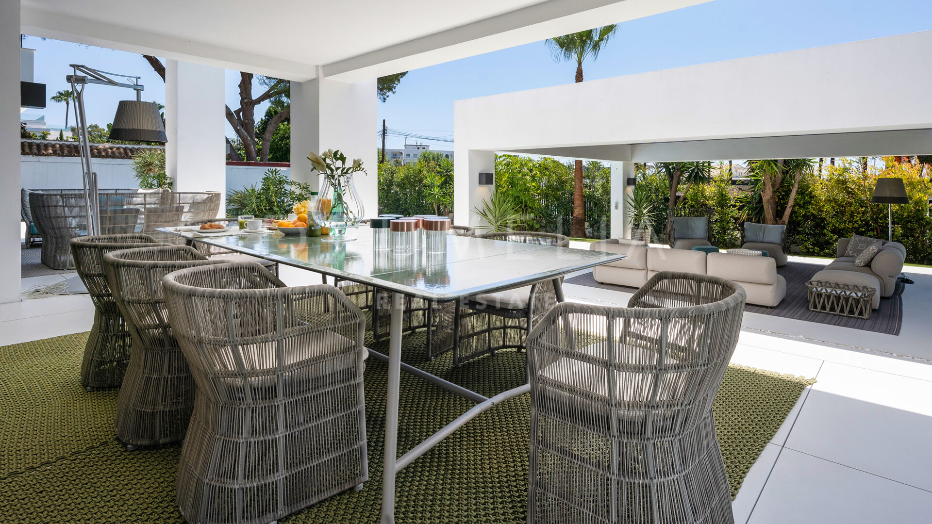 Dit huis van 445 m² met een terras van 283 m² ligt op een privéterrein van 1.000 m² en wordt omringd door prachtige landschappen en soortgelijke huizen in San Pedro. De oase aan het strand biedt een werkelijk betoverende omgeving en biedt adembenemende uitzichten op de zee en de bergen, evenals een sereen uitzicht over de groene tuin. Het pand is gemaakt voor het meest luxueuze leven en biedt een harmonieuze mix van eigentijds design en voortreffelijk vakmanschap. Het is verdeeld over 4 verdiepingen en heeft een onberispelijke verdeling, met een terras op de begane grond en een dakterras boven, beide perfect om te genieten van panoramische vergezichten en het beste klimaat van Europa. De woning beschikt over 6 slaapkamers en 6 badkamers, een open keuken met een eiland, woon- en eetgedeeltes, die naadloos toegang bieden tot de terrassen om te genieten van de fantastische binnen-buiten mediterrane levensstijl. De spectaculaire dubbelhoge woonkamer is een pronkstuk van elegantie. Het meubilair en de verlichting voegen een vleugje verfijning toe.