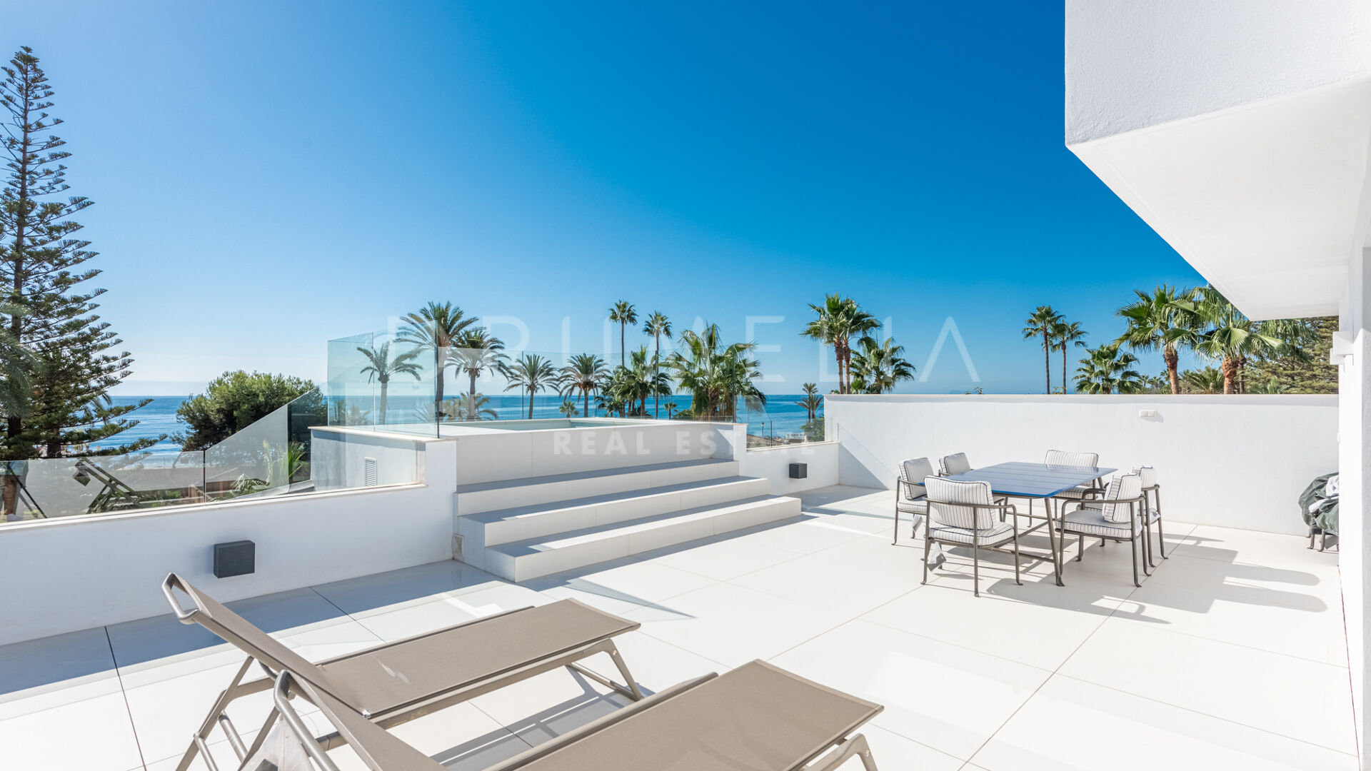 Mis deze opmerkelijke woning niet die moderne luxe, stijl en harmonie biedt op de prestigieuze locatie aan het strand, ideaal voor de wereldberoemde mediterrane levensstijl!