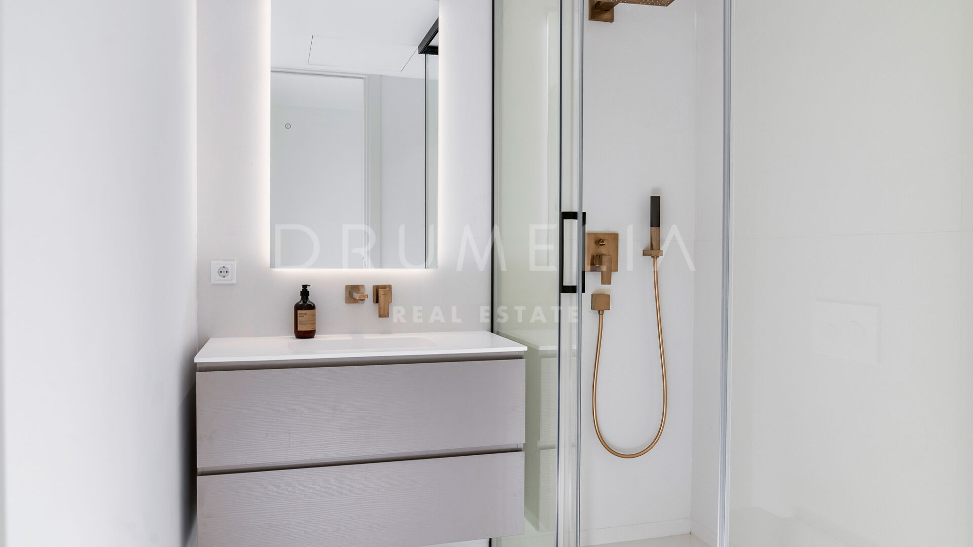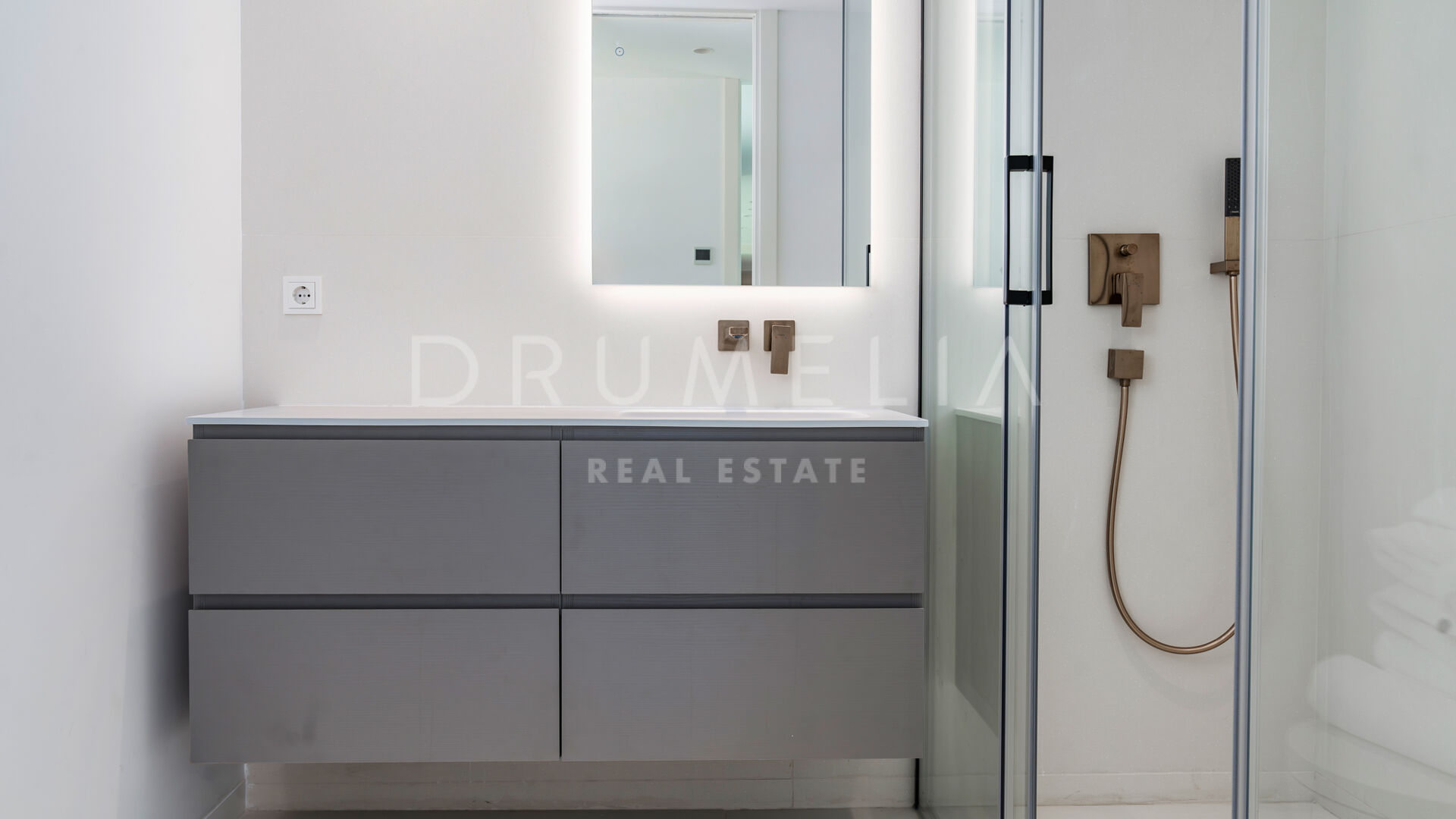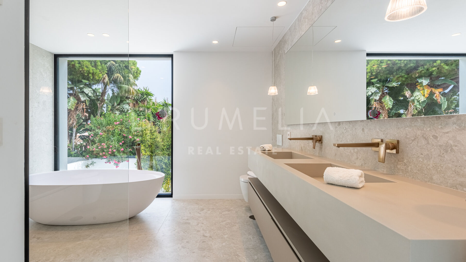 De prachtige privétuin, buitenlounges en een zwembad creëren een idyllische ruimte voor ontspanning en vermaak, met bijeenkomsten en familiegelegenheden. Het vat de essentie van het heerlijke Andalusische leven! Carport parking voor 2 auto’s en extra parkeerplaatsen binnen het omheinde terrein zorgen voor handige en ruime parkeergelegenheid voor bewoners en gasten. Bij de bouw en het ontwerp is geen detail over het hoofd gezien. De woning is uitgerust met een smart home Domotica-systeem, vloerverwarming, airconditioning, LED-verlichting en een lift voor ultiem gemak en comfort. Het heeft accentmuren en houten vloeren, een overvloed aan glas en een chique moderne inrichting. Een luxe ovaal vrijstaand bad tilt het uiterlijk van de masterbadkamer naar het hoogste niveau. Upgrades aan de keuken en badkamers tonen eersteklas materialen en Neff apparatuur van de bovenste plank.