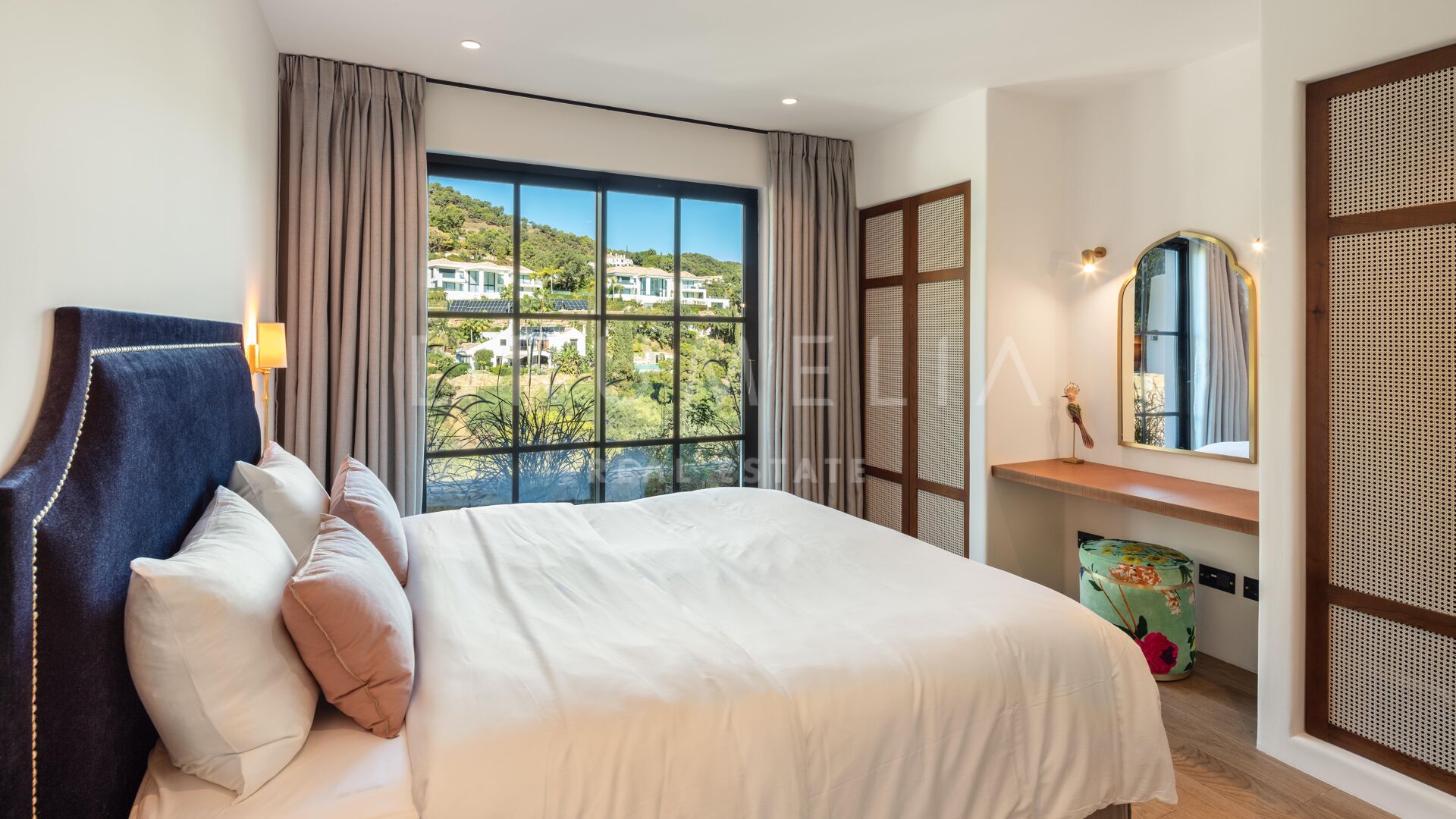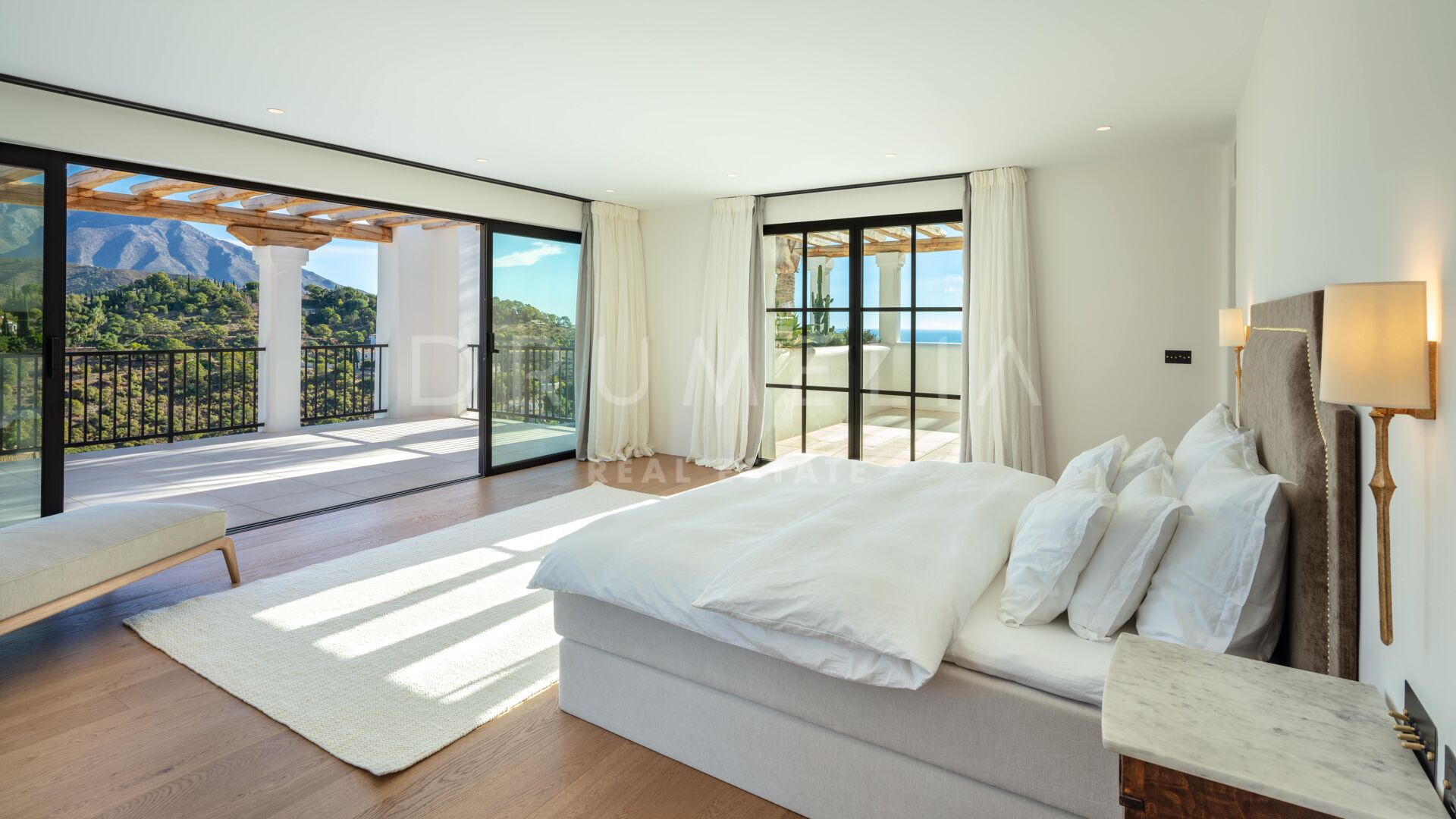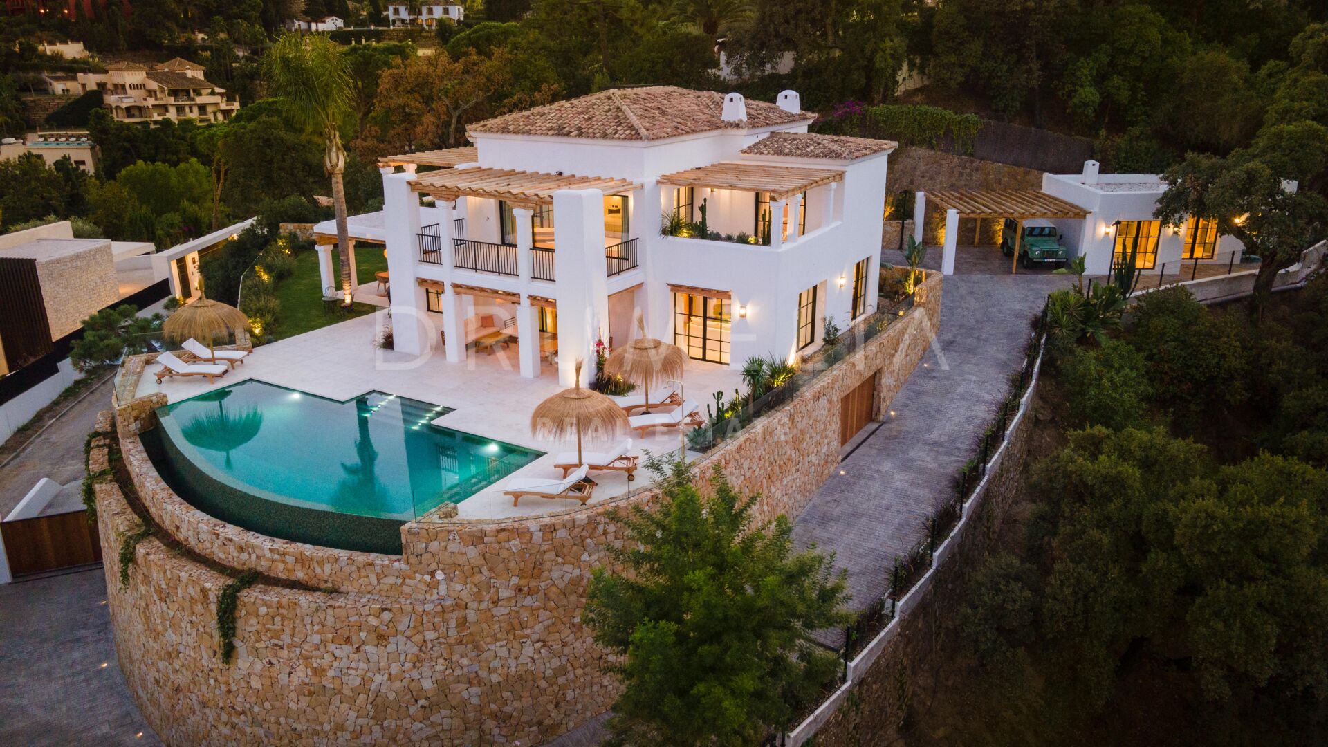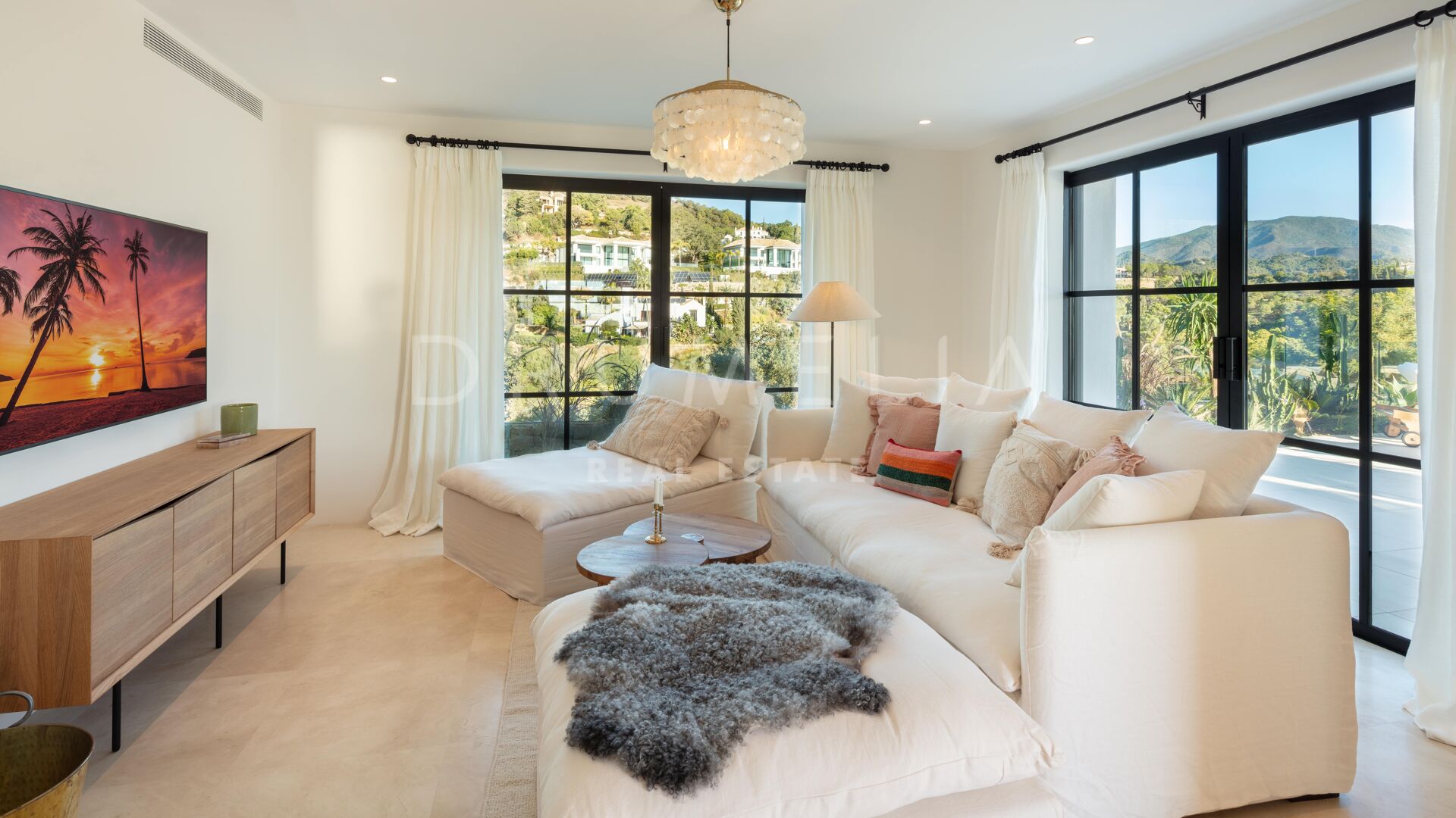 Deze prachtige, volledig gerenoveerde villa is gelegen in El Madroñal, een van Marbella’s meest prestigieuze gated communities. Grenzend aan het ultra-exclusieve landgoed La Zagaleta, wordt het omringd door de prachtige natuur en soortgelijke high-end eigendommen van de gemeente Benahavis. Gelegen aan de schilderachtige Ronda weg, 400 m boven de zeespiegel, biedt El Madroñal een indrukwekkend uitzicht op de onderliggende kust, Afrika en Gibraltar. Als je een huis koopt op deze exclusieve locatie kun je optimaal profiteren van het heerlijke weer en de verfijnde levensstijl van Marbella. Alle voorzieningen zijn binnen handbereik, de stranden met blauwe vlag, golfbanen, tennisbanen, een manege, internationale scholen, winkels en restaurants.