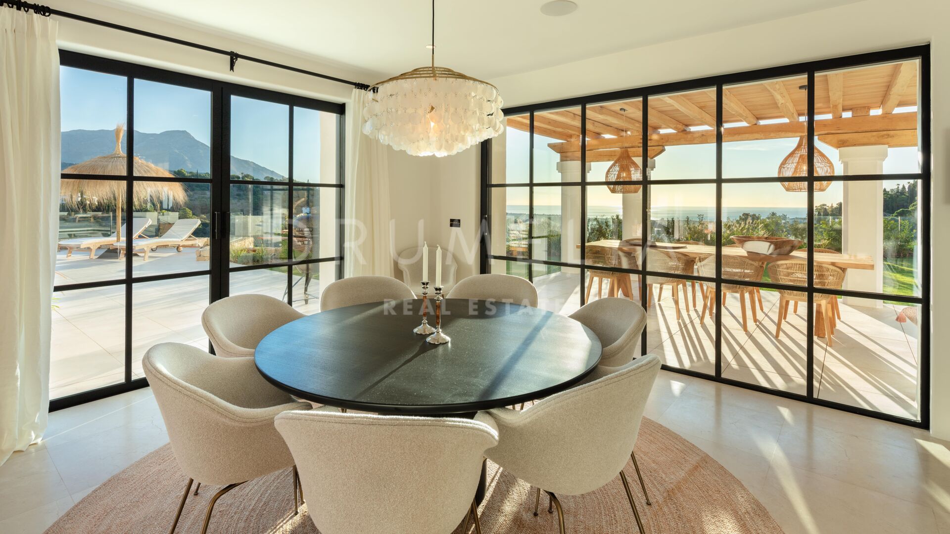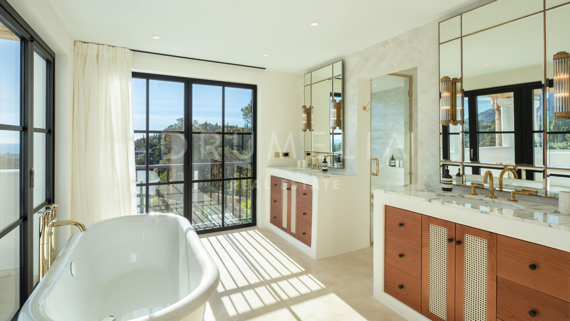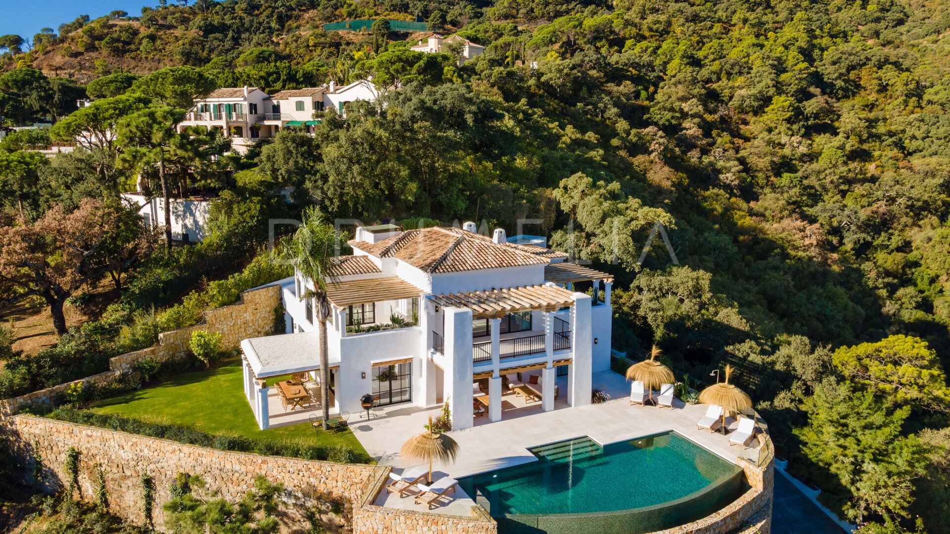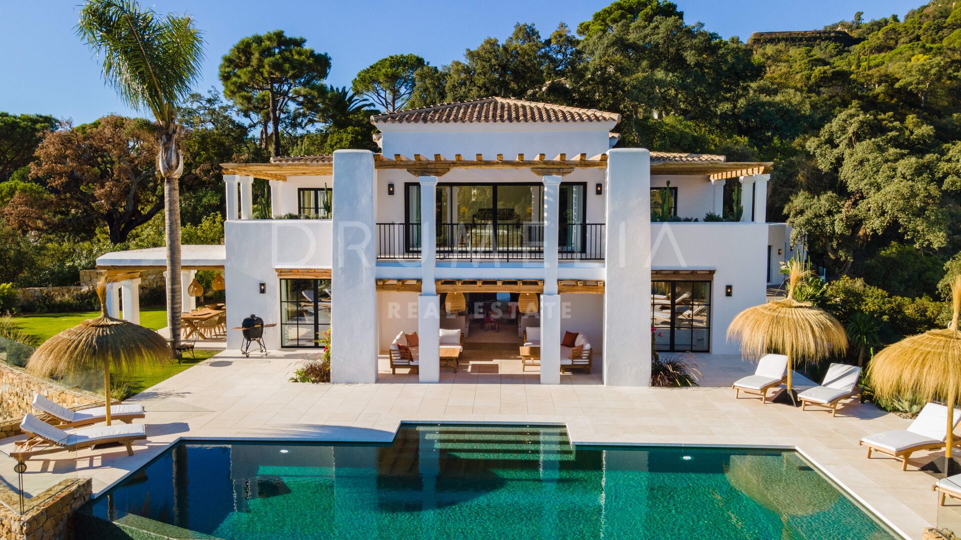 Deze prachtige, volledig gerenoveerde villa is gelegen in El Madroñal, een van Marbella’s meest prestigieuze gated communities. Grenzend aan het ultra-exclusieve landgoed La Zagaleta, wordt het omringd door de prachtige natuur en soortgelijke high-end eigendommen van de gemeente Benahavis. Gelegen aan de schilderachtige Ronda weg, 400 m boven de zeespiegel, biedt El Madroñal een indrukwekkend uitzicht op de onderliggende kust, Afrika en Gibraltar. Als je een huis koopt op deze exclusieve locatie kun je optimaal profiteren van het heerlijke weer en de verfijnde levensstijl van Marbella. Alle voorzieningen zijn binnen handbereik, de stranden met blauwe vlag, golfbanen, tennisbanen, een manege, internationale scholen, winkels en restaurants.