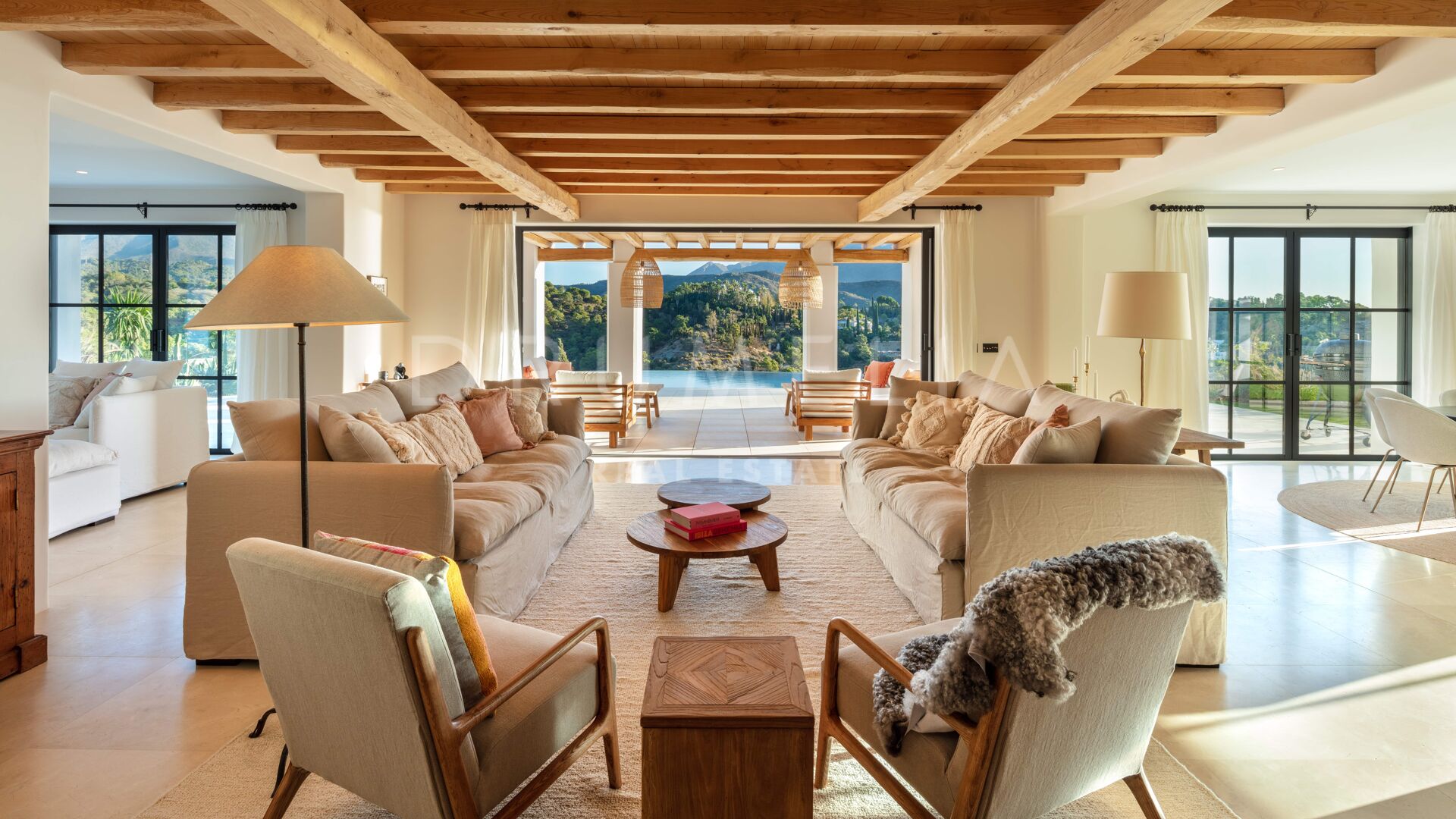 De spectaculaire villa van 462 m² met 256 m² terrassen staat op een schilderachtig perceel van 2.658 m². Gemaakt door een bekende architect van Ibiza, is het echt bijzonder. Dit designer-meesterwerk toont de moderne mediterrane architectuur met hedendaagse en Scandinavische interieurs met natuurlijke elementen verrijkt met boho chic elementen en unieke Ibiza charme. Het ligt op het zuiden/oosten en biedt een adembenemend panoramisch uitzicht op de zee en de berg La Concha.