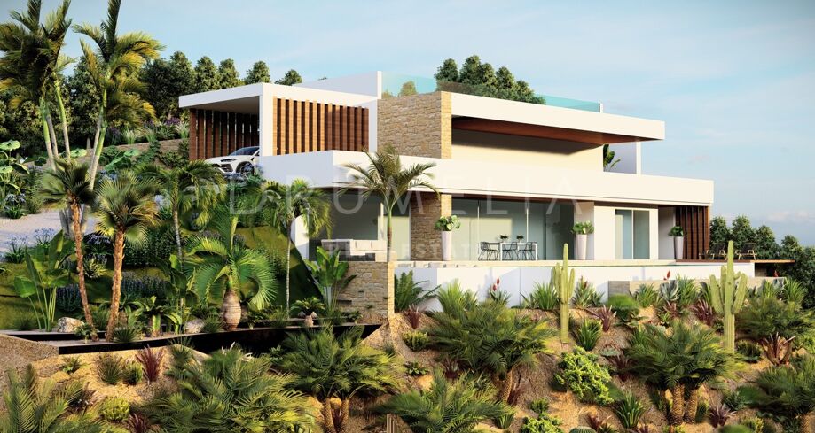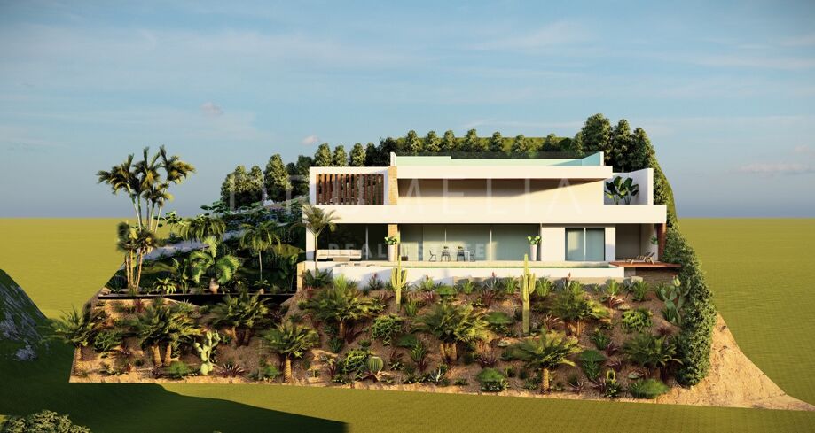 Perceel met Open Uitzicht en Project voor een Hedendaagse Villa in Elviria, Oost-Marbella