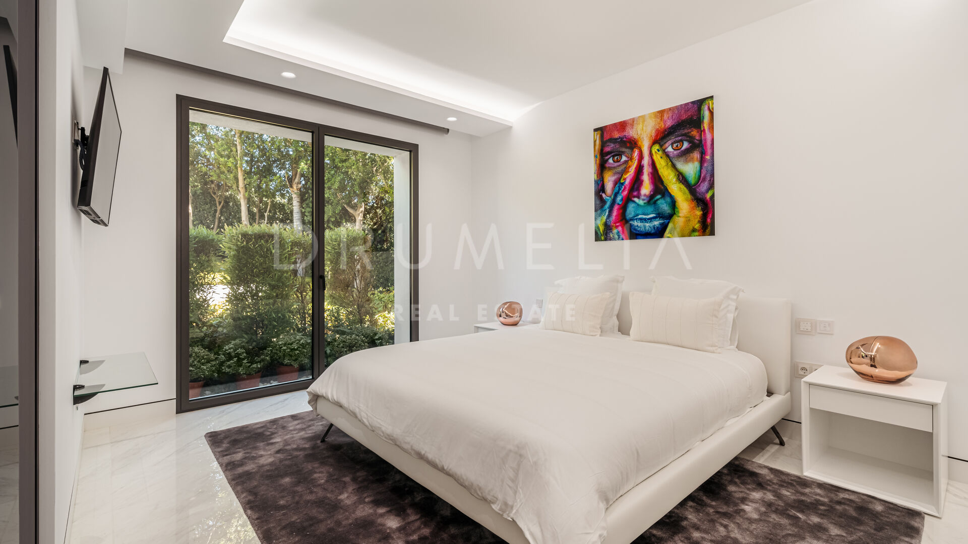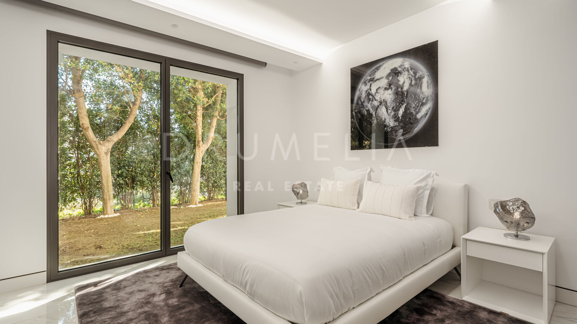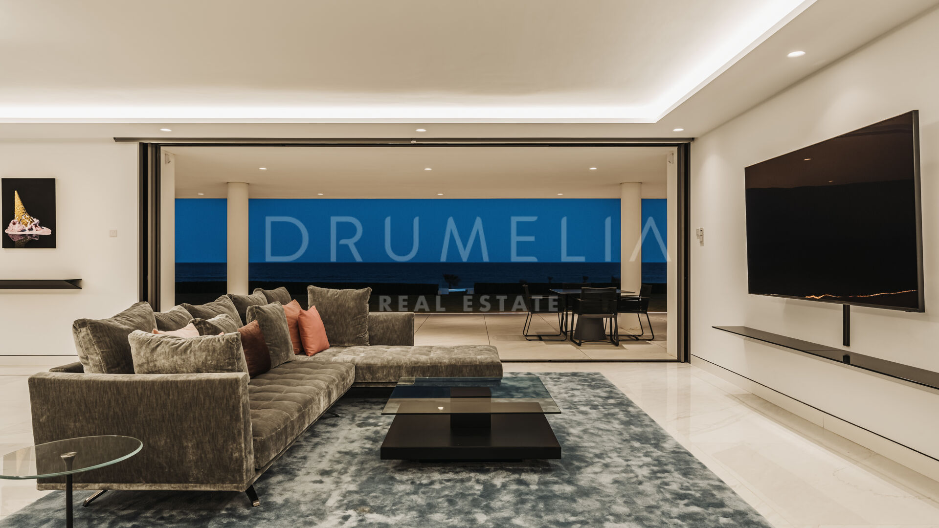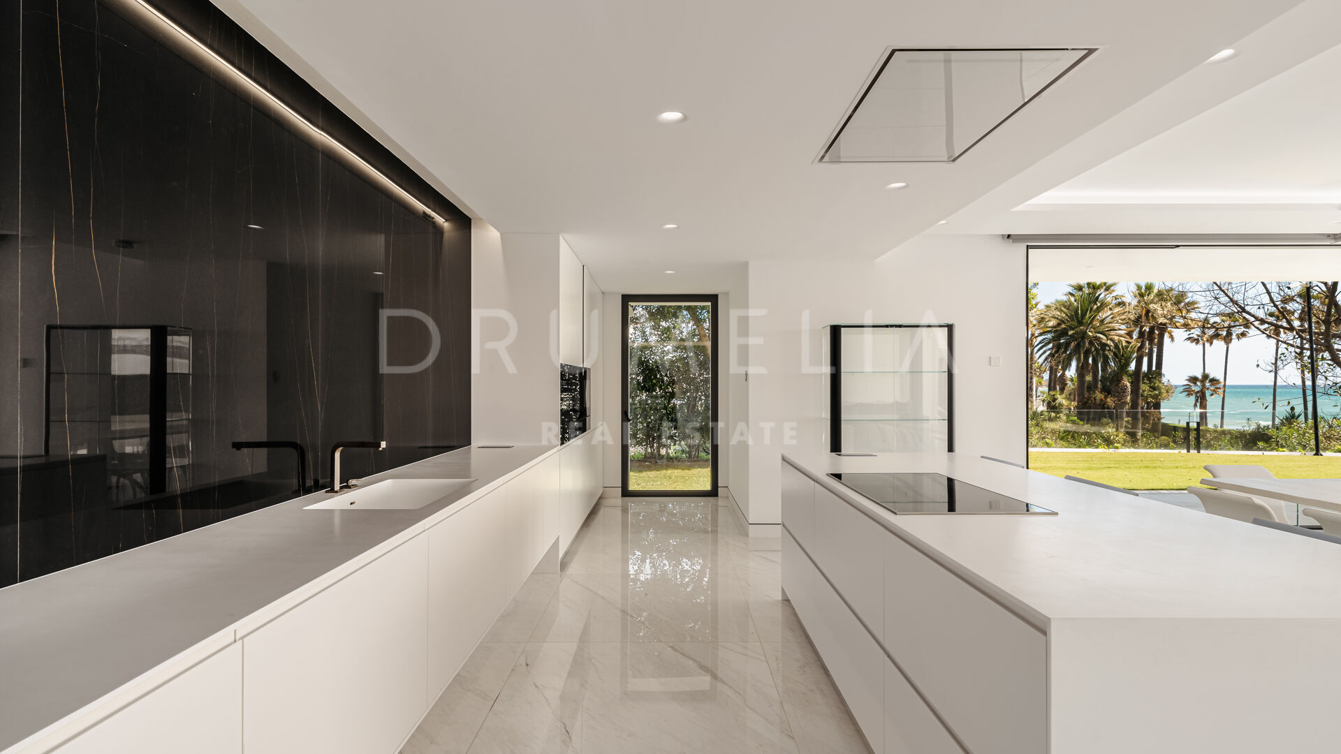 Met een tuin van 415 m² is deze ongelooflijke zuidgerichte woning van 453 m² perfect uitgerust en onberispelijk gepresenteerd, met een combinatie van open ruimte innovatief design met de hoogste kwaliteit materialen en de nieuwste technologieën. Het herbergt 4 stijlvolle slaapkamers met 4 en-suite luxe badkamers, een gastentoilet, een bioscoopzaal, een open woonkamer met een TV-salon, ontvangst- en eetruimtes en een strakke, volledig uitgeruste design keuken met een eiland / ontbijtruimte / bar. De leefruimtes leiden naar de prachtige overdekte terrassen van 146 m², ideaal voor de glorieuze mediterrane levensstijl. Het prachtige pand heeft een prachtig gazon en het strand direct voor de deur, waardoor u elke dag kunt genieten van een unieke, moeiteloos bevoorrechte woonervaring. Stelt u zich voor, u kunt het strand te voet bereiken in slechts één minuut!