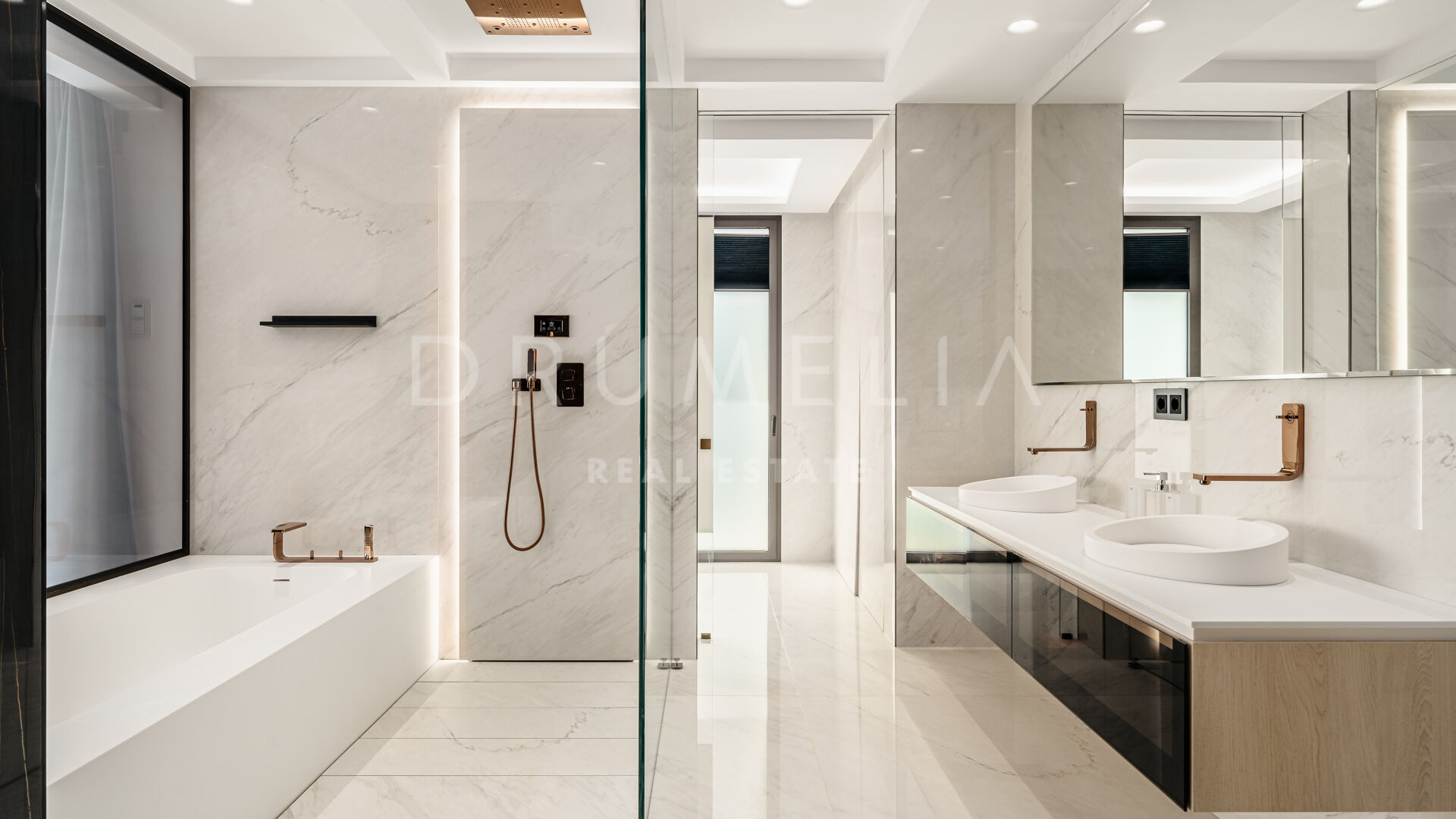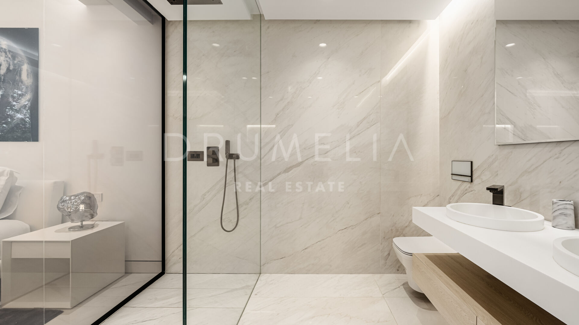 Gebouwd volgens de hoogste specificaties, heeft de spectaculaire ontwikkeling zijn eigen unieke stijl die de moderne architectuur weerspiegelt met aantrekkelijke elementen die het meest vooruitstrevende concept benadrukken. Het is gelegen op een perceel van ongeveer 20.000 m² in een van de beste woonwijken, de New Golden Mile, tussen het glamoureuze Puerto Banús en het mooie stadje Estepona. Het heeft 28 woningen die voldoen aan de hoogste eisen voor de meest exclusieve levensstijl, de mediterrane tuinen met een verwarmd zoutwaterzwembad en 24 uur bewakingsdienst. De bijzondere ligging wekt een buitengewoon gevoel van vrijheid en de vreugde van het leven direct aan de Middellandse Zee. Talrijke strandbars en restaurants, winkelcentra, golfbanen, internationale scholen, banken en ziekenhuizen bevinden zich in de directe omgeving.