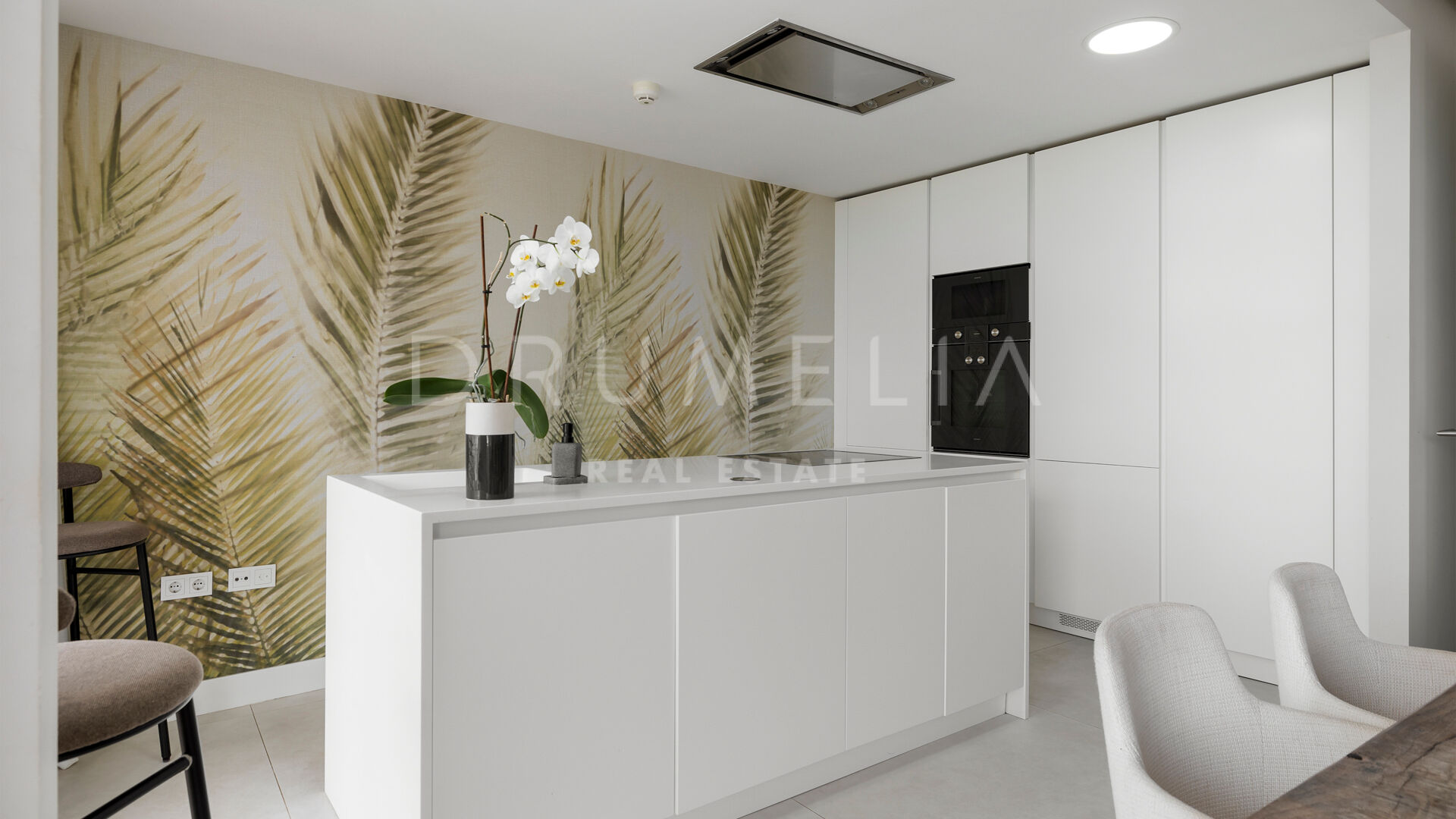 Binnen vindt u een lichte woon- en eetkamer die verbonden is met een volledig uitgeruste open keuken. De hoofdslaapkamer heeft een inloopkast en een eigen badkamer, terwijl de twee extra slaapkamers een moderne badkamer delen. Er is ook een gastentoilet. De voorste terrassen bieden uitzicht op de zee en de aangelegde tuinen met infinity pool, terwijl het zuidwestelijk georiënteerde achterterras perfect is om van de middagzon te genieten.