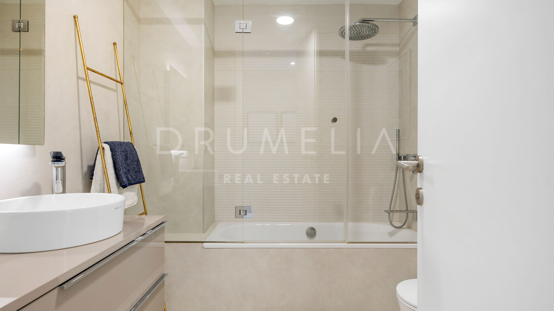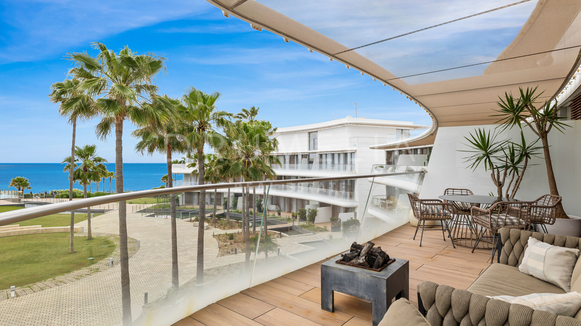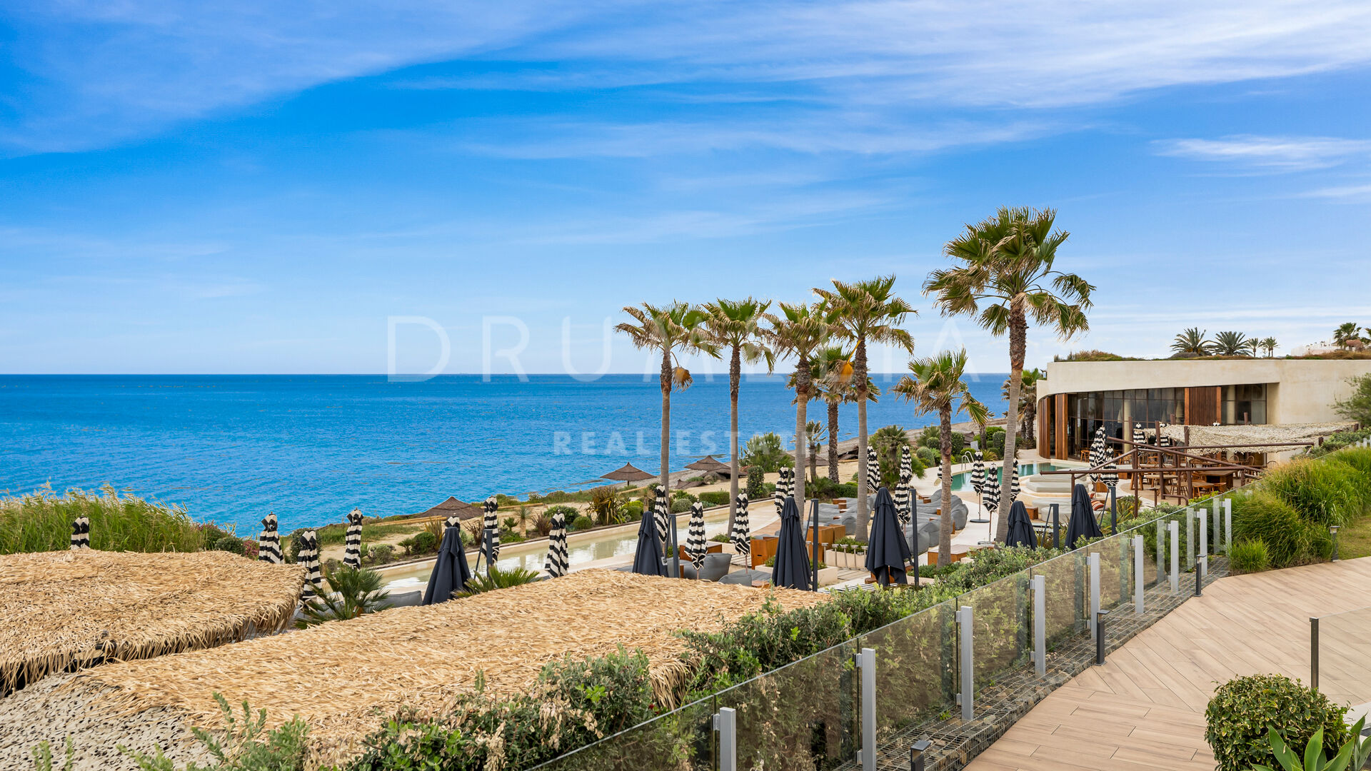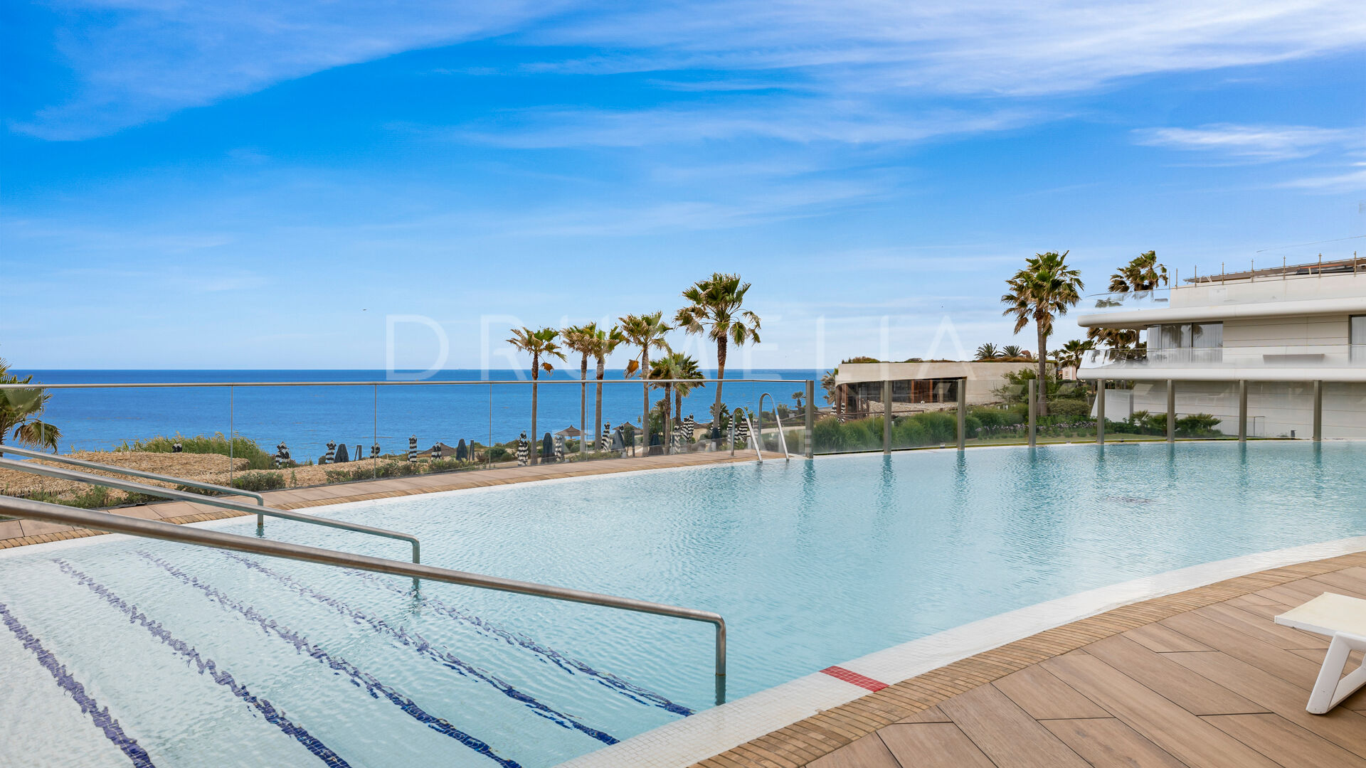 Dit uitzonderlijke appartement met 3 slaapkamers ligt direct aan het strand in de prestigieuze urbanisatie The Edge, aan de New Golden Mile van Estepona. De ligging op de tweede verdieping biedt panoramisch uitzicht op de Middellandse Zee en een eigentijds ontwerp dat elegantie en comfort combineert. Het strand ligt op slechts enkele stappen afstand en winkels en restaurants zijn op loopafstand.