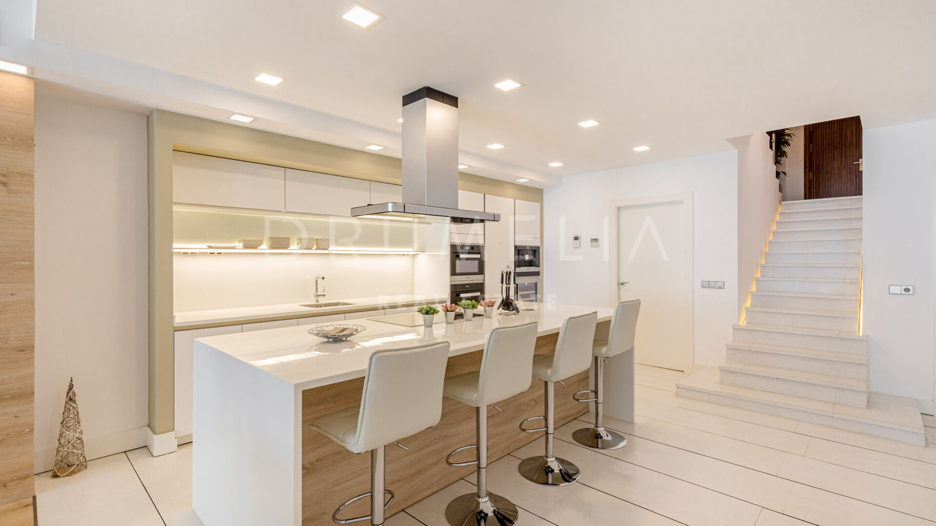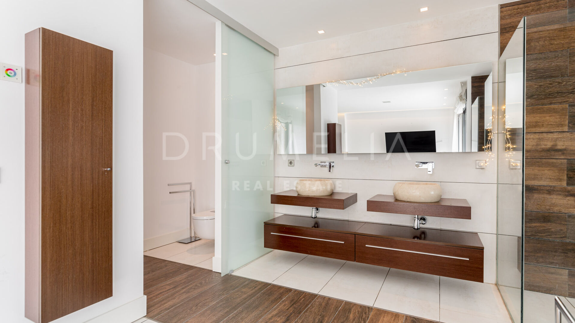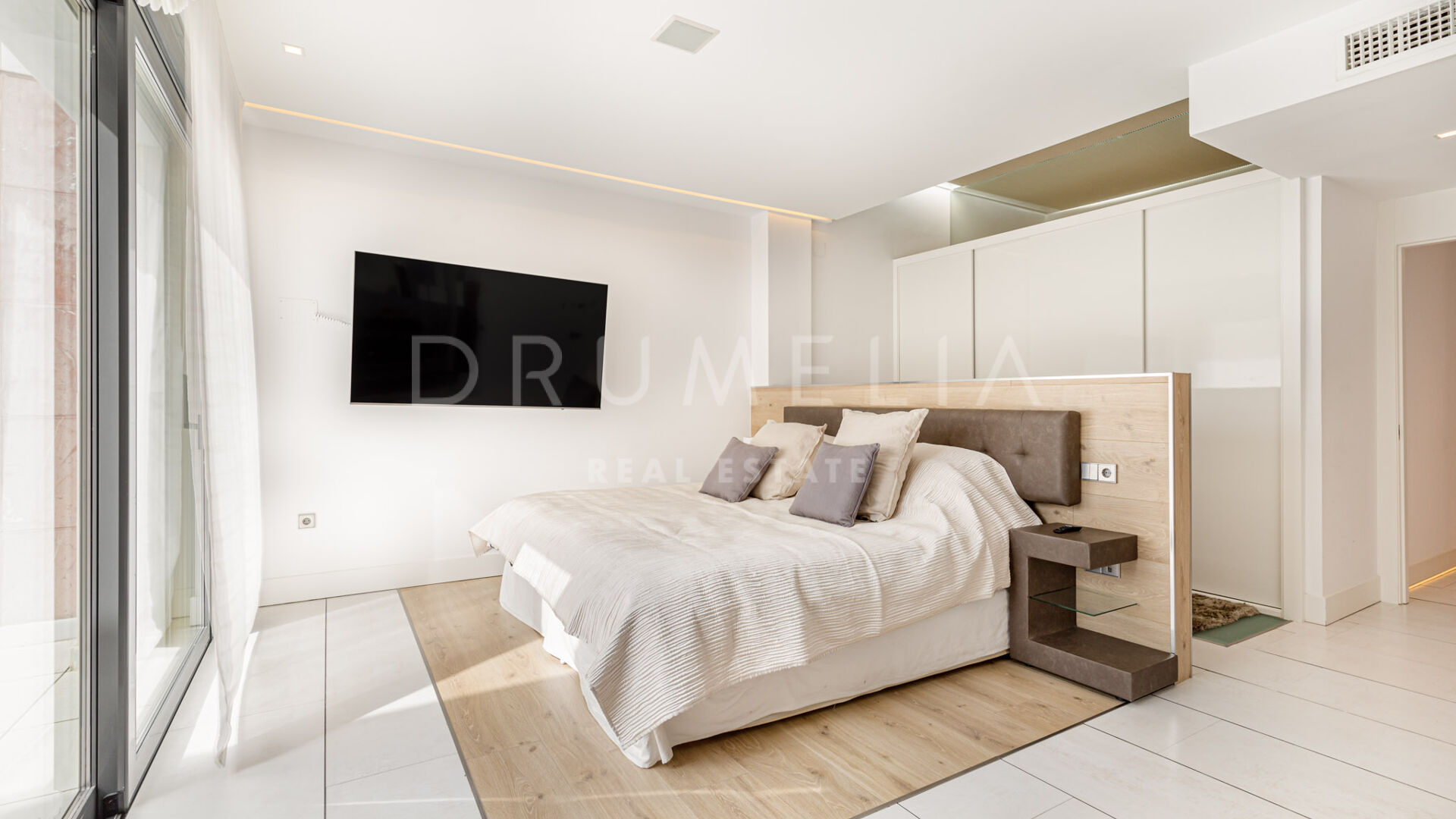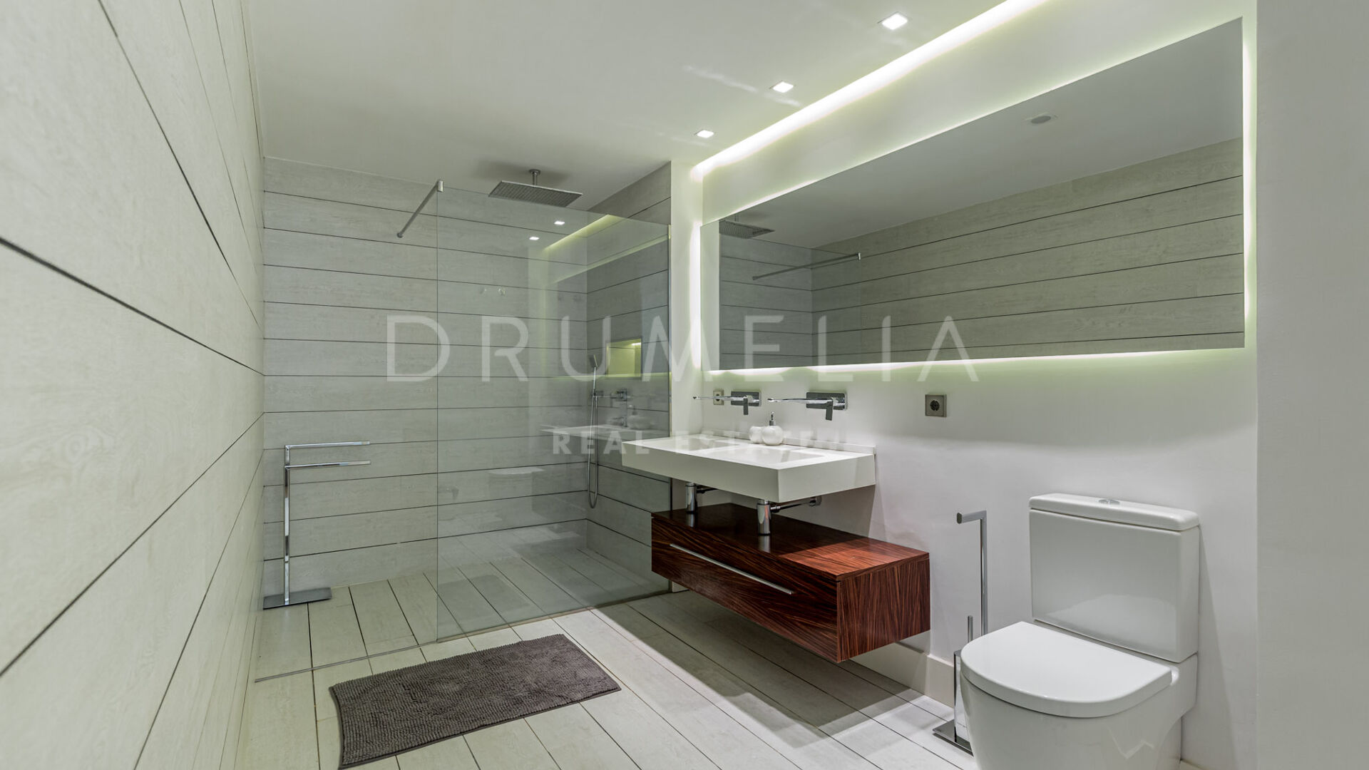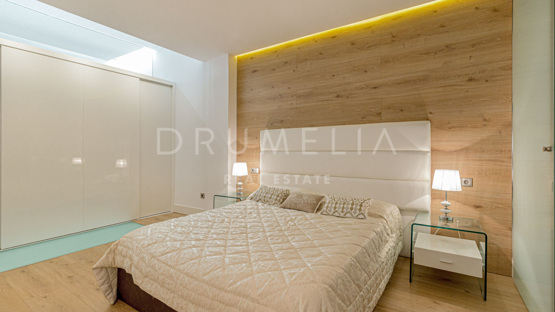 Volledig gerenoveerd in 2014 met modern design en hoogwaardige materialen, biedt deze woning tal van extra’s zoals een volledig domotica-systeem dat de elektrische rolluiken, het koude / warme airconditioningsysteem, de vloerverwarming en de vele LED-lampen in het hele appartement regelt; een muzieksysteem met geïntegreerde plafondluidsprekers in elke slaapkamer; Hansgrohe fittingen en Porcelanosa keramische tegels in de badkamers; een complete doucheruimte / toilet op het niveau van de woonkamer, evenals een berging / bijkeuken.