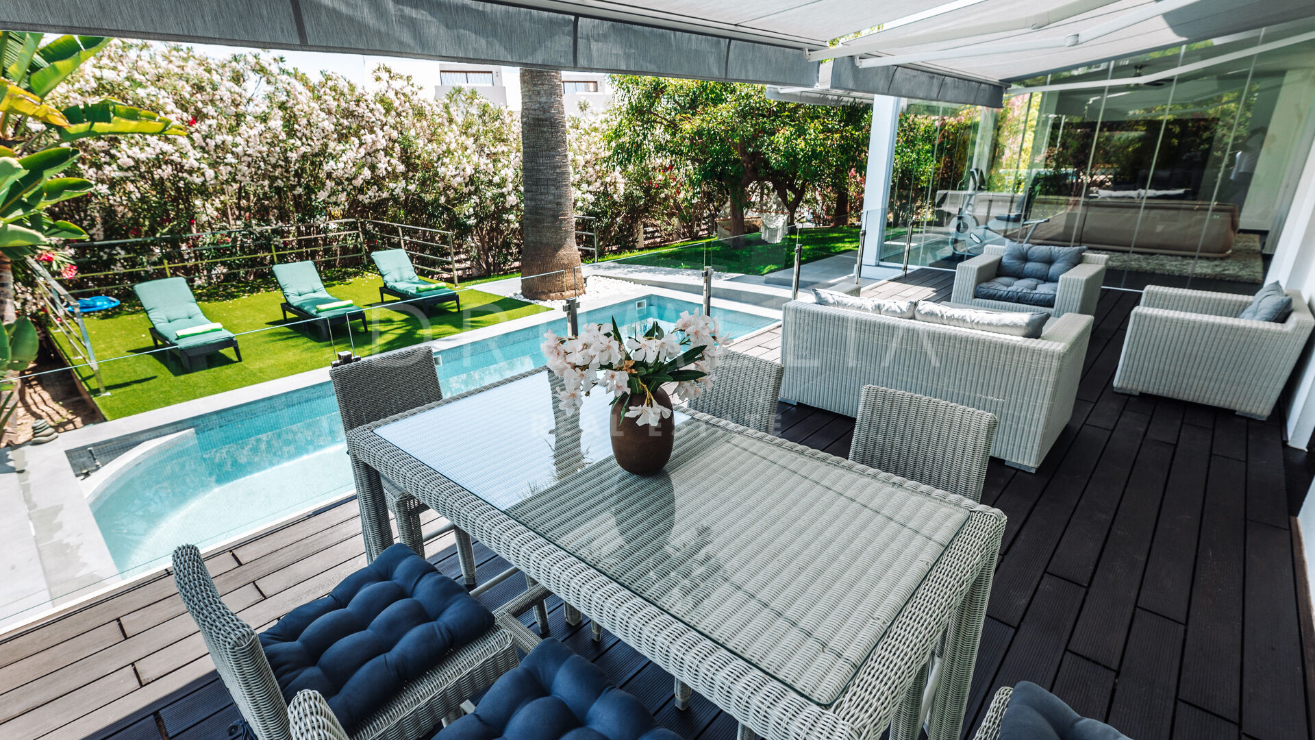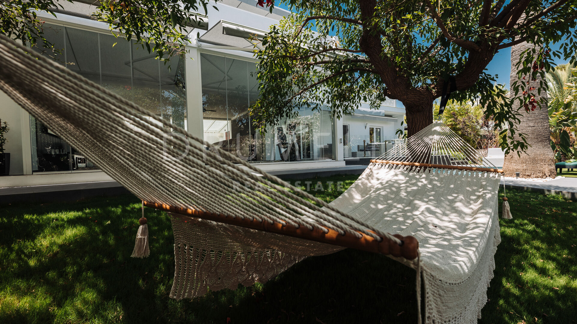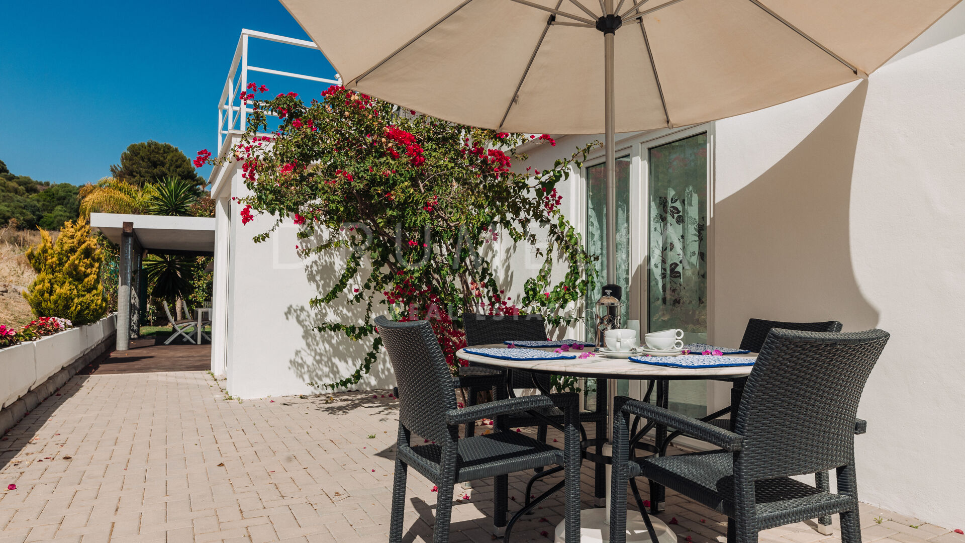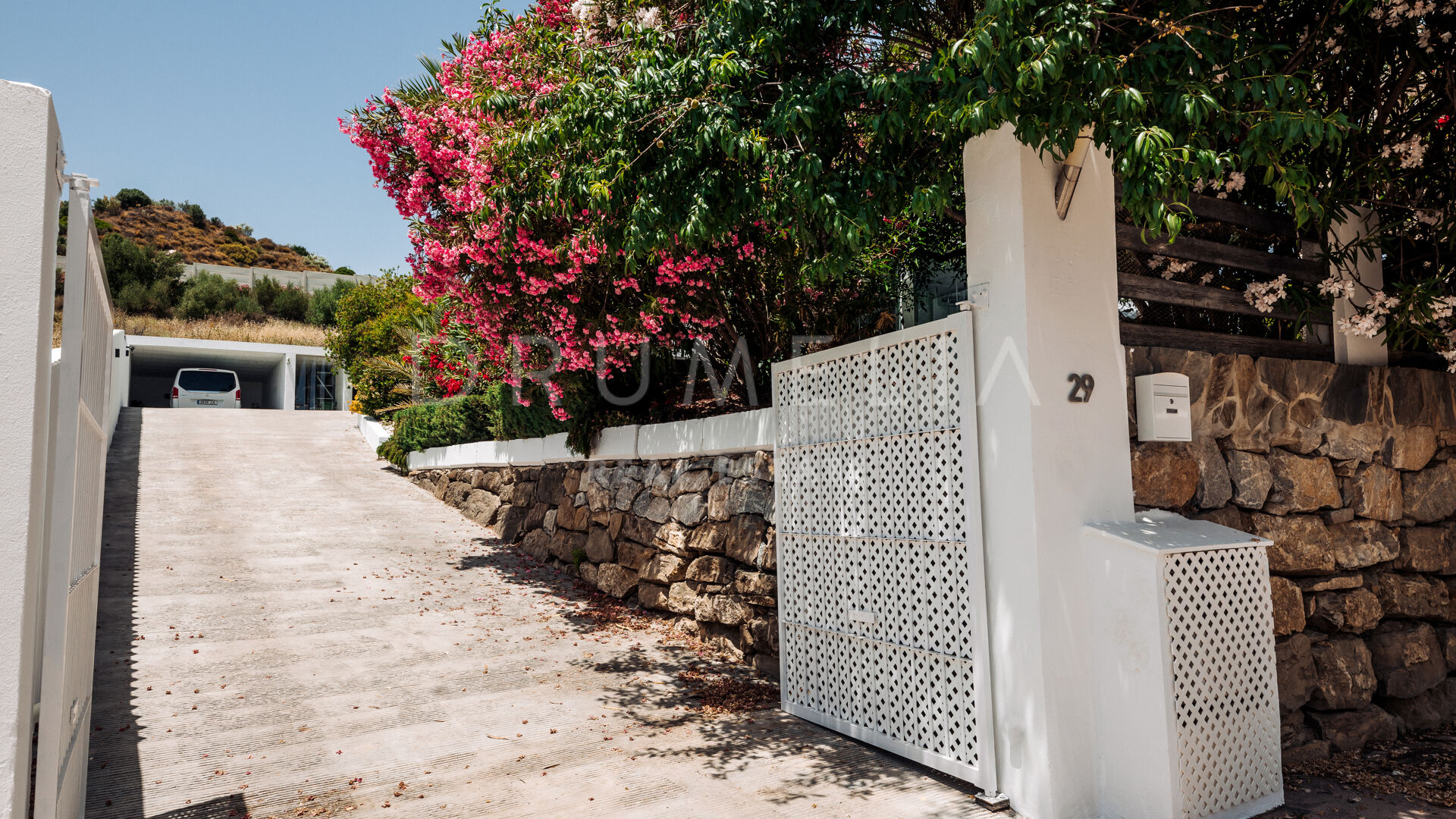 Het fabelachtige huis opent naar een grote en uitnodigende open woon-, eet- en keukenruimte die naar patio’s aan weerszijden van het terrein leidt. Het buitenleven is erg belangrijk voor de Mediterrane levensstijl en deze villa werd ontworpen met dat in gedachten. Je kunt er genieten van de stralende zonnige dagen aan de Costa del Sol bij het zwembad of ontspannen in de schaduw van de bomen, schommelend in een hangmat. De tuinen zijn schitterend en je wordt er omringd door bloeiende bloemen en volwassen bomen. Op de benedenverdieping heb je een complete professionele buitenkeuken die geschikt is voor grote evenementen. Op de bovenverdieping kun je op een enorm terras genieten van het serene uitzicht, de volle dagzon en het beste klimaat van het Europese vasteland. Het dakterras nodigt uit tot ontspannen met een cocktail in een jacuzzi terwijl je het indrukwekkende uitzicht op La Concha en de Middellandse Zee bewondert.