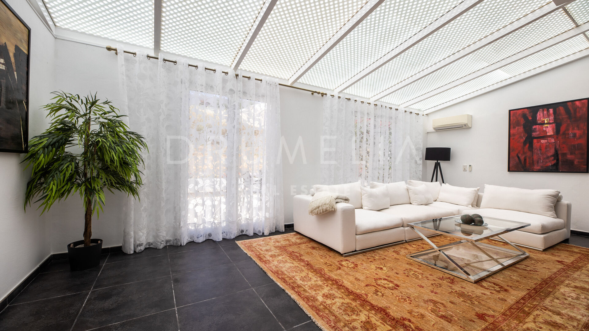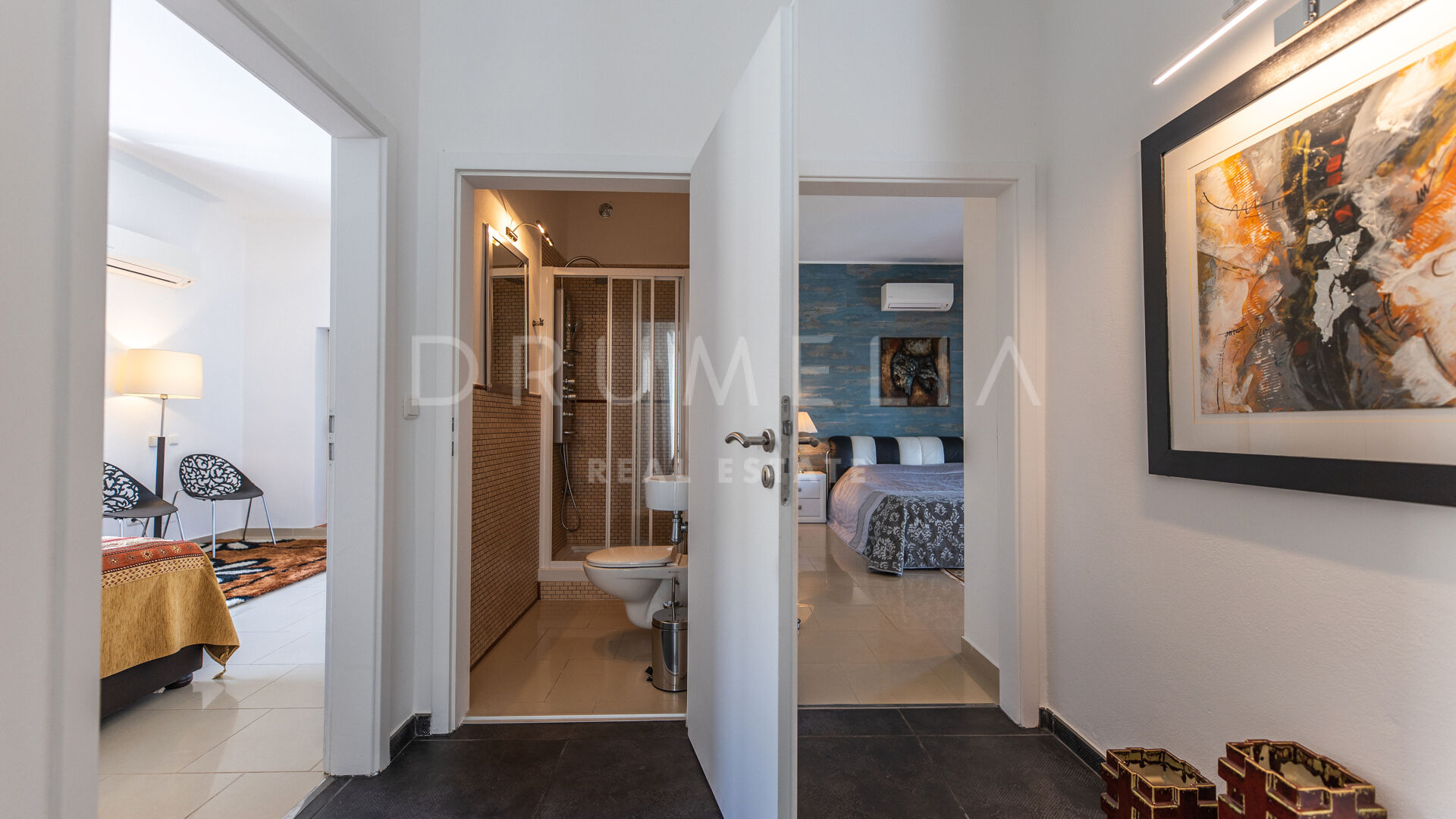 Dit charmante moderne huis te koop in de gevestigde urbanisatie Haza del Conde ligt in het hart van Nueva Andalucía, dicht bij alle voorzieningen en schitterende golfbanen, en ongeveer 4 km van het glorieuze Puerto Banus en het strand. De 2 verdiepingen tellende zuid/oost gerichte villa van 226 m² met lichte en open ruimtes en een perceel van 1.065 m² is een unieke kans om een exclusief stuk grond en een mooi high-end eigendom in de Golf Vallei te bezitten.