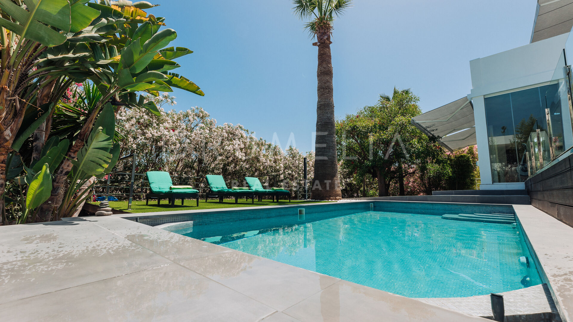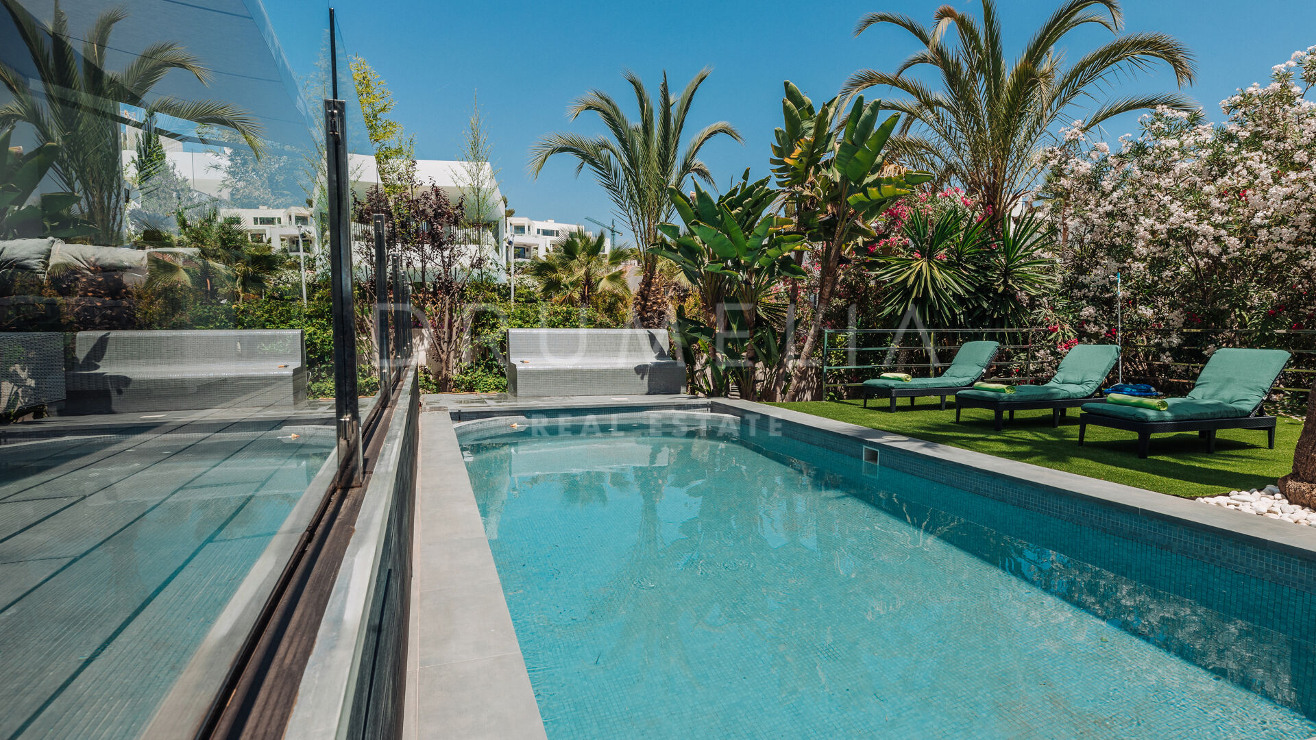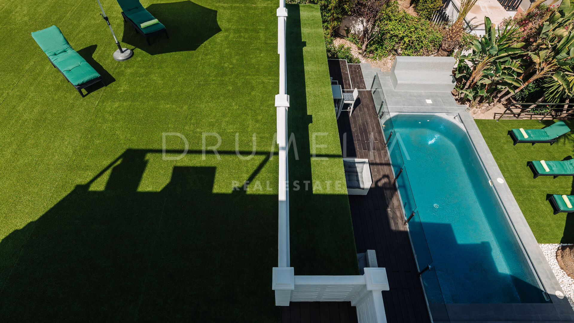 Omringd door weelderig groen, golfbanen en soortgelijke luxe eigendommen van het prestigieuze en populaire Nueva Andalucía, zal dit huis zeker golf-enthousiasten, gezinnen en liefhebbers van de moderne Mediterrane levensstijl aantrekken. Alles is binnen handbereik, de stranden met blauwe vlag, internationale scholen, restaurants, cafés, kinderspeelplaatsen, casino, enz. Charmes van San Pedro de Alcantara, glitter en glamour van Puerto Banus, alle voorzieningen van Nueva Andalucía, luxueuze Golden Mile, Marbella centrum, bruisende New Golden Mile en Estepona resort liggen op korte rijafstand (minuten). De internationale luchthavens van zowel Malaga als Gibraltar en het centraal station van Malaga liggen op minder dan een uur rijden.
