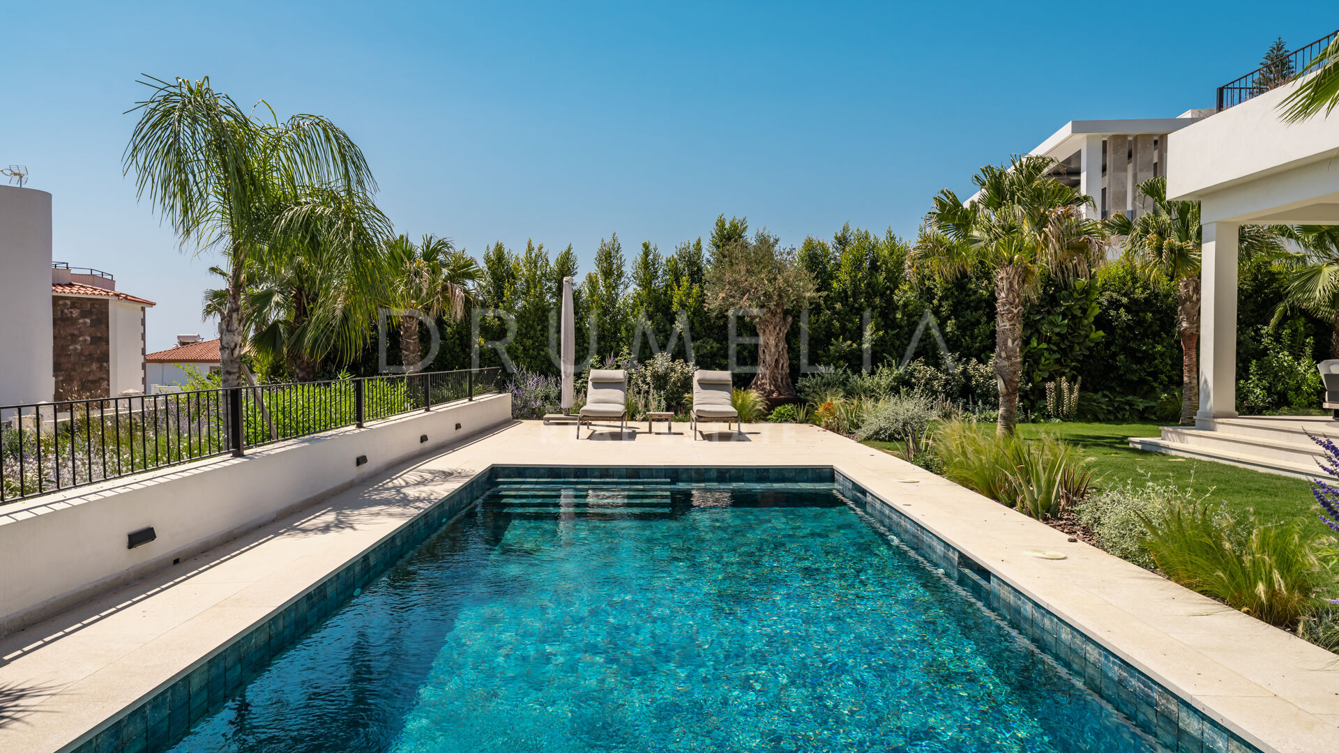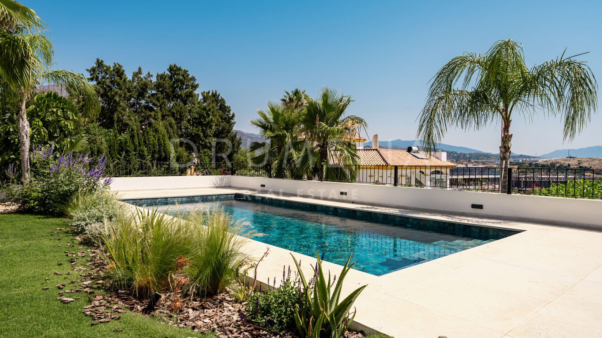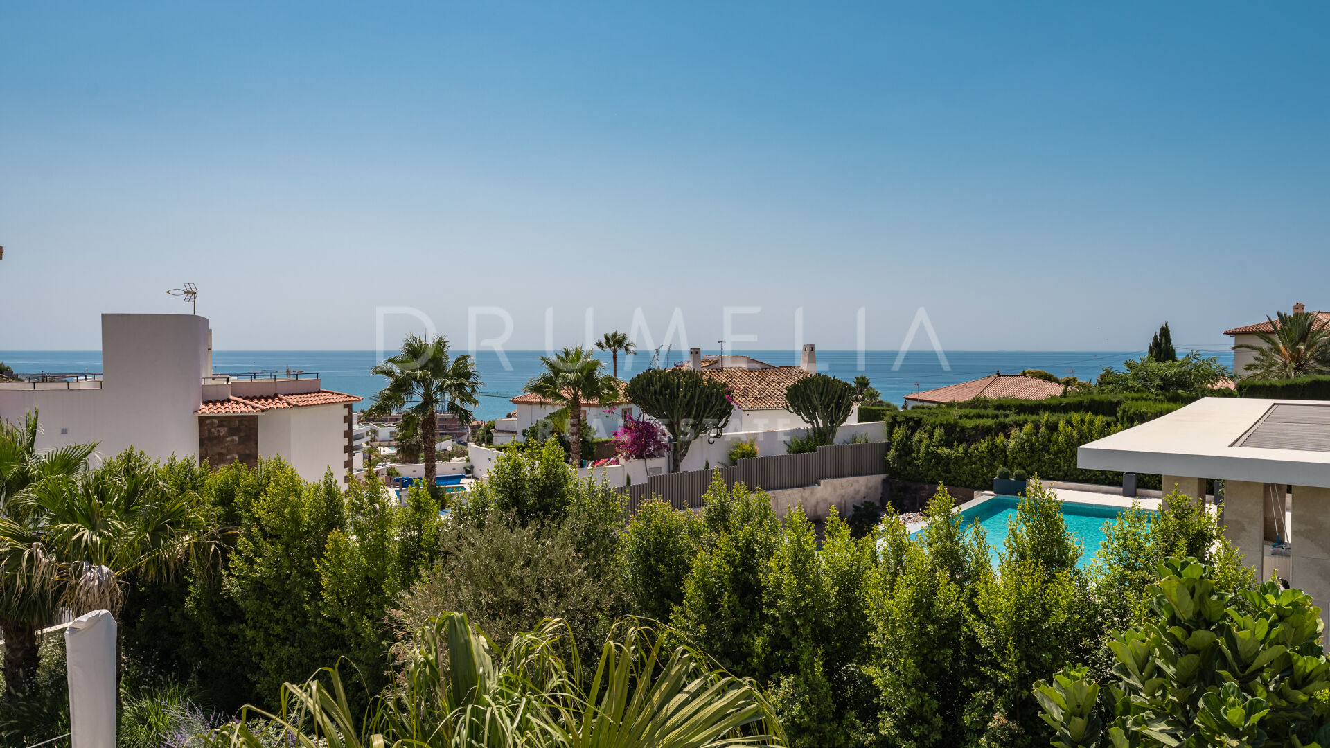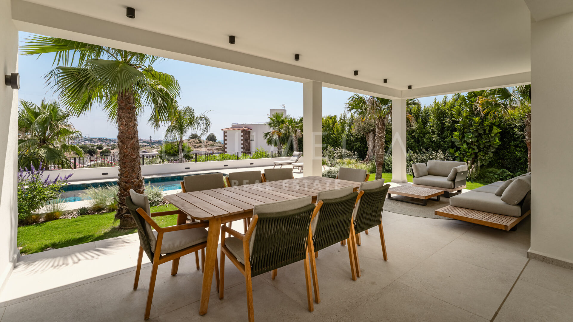 Buiten creëren de prachtig aangelegde tuinen een ware oase om in alle rust buiten te leven. Het uitnodigende zwembadgedeelte is perfect om te zonnen en te genieten van het indrukwekkende uitzicht op de Middellandse Zee en de omliggende bergen.