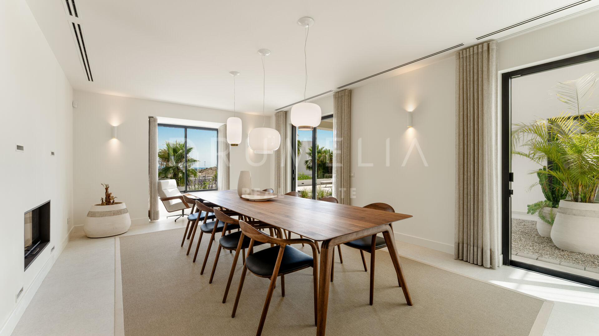 Vanaf het eerste moment ervaar je verfijnde elegantie en zorgvuldig design. De ruime eetkamer met een stijlvolle open haard vloeit moeiteloos over in een elegante tv-lounge — perfect om te ontspannen of gasten te ontvangen. De moderne keuken is volledig uitgerust met topapparatuur van Miele en Bora (inclusief stoomoven, combimagnetron, wijnkoelkast en Quooker-kraan), ideaal voor elke culinaire liefhebber.